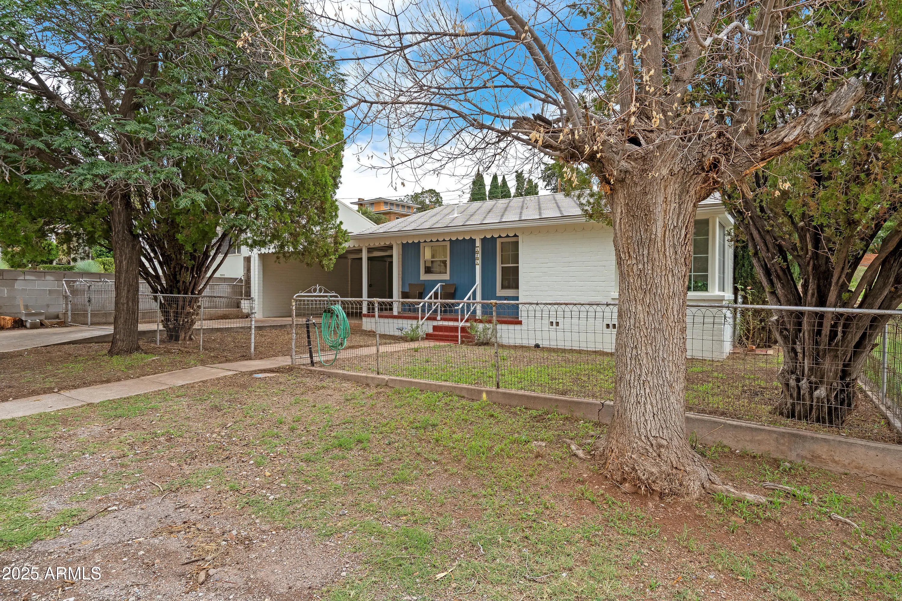 Come enjoy this sweet 1946 home in the Historic Warren area of Bisbee. Situated on a quiet street and on a large lot, this charming residence features a masonry garage with sink and sewer plumbing that would make a fantastic workspace or art studio. Additional covered parking, cozy front porch, large laundry room, and numerous upgrades make this a perfect year round home or investment. Energy efficient details include central heating and air conditioning with an insulated attic, newer vinyl windows, and ceiling fans throughout. Recent improvements such as an upgraded electrical panel, electric hot water heater, restoration original oak floors, luxury vinyl, and a bright paint palette. Copious closets, 3 gracious bedrooms, 2 vintage inspired bathrooms, and a fantastic location make this single story house a dream.