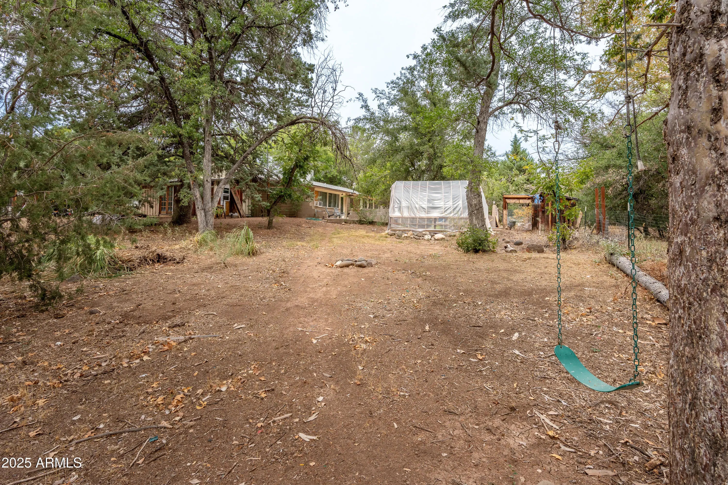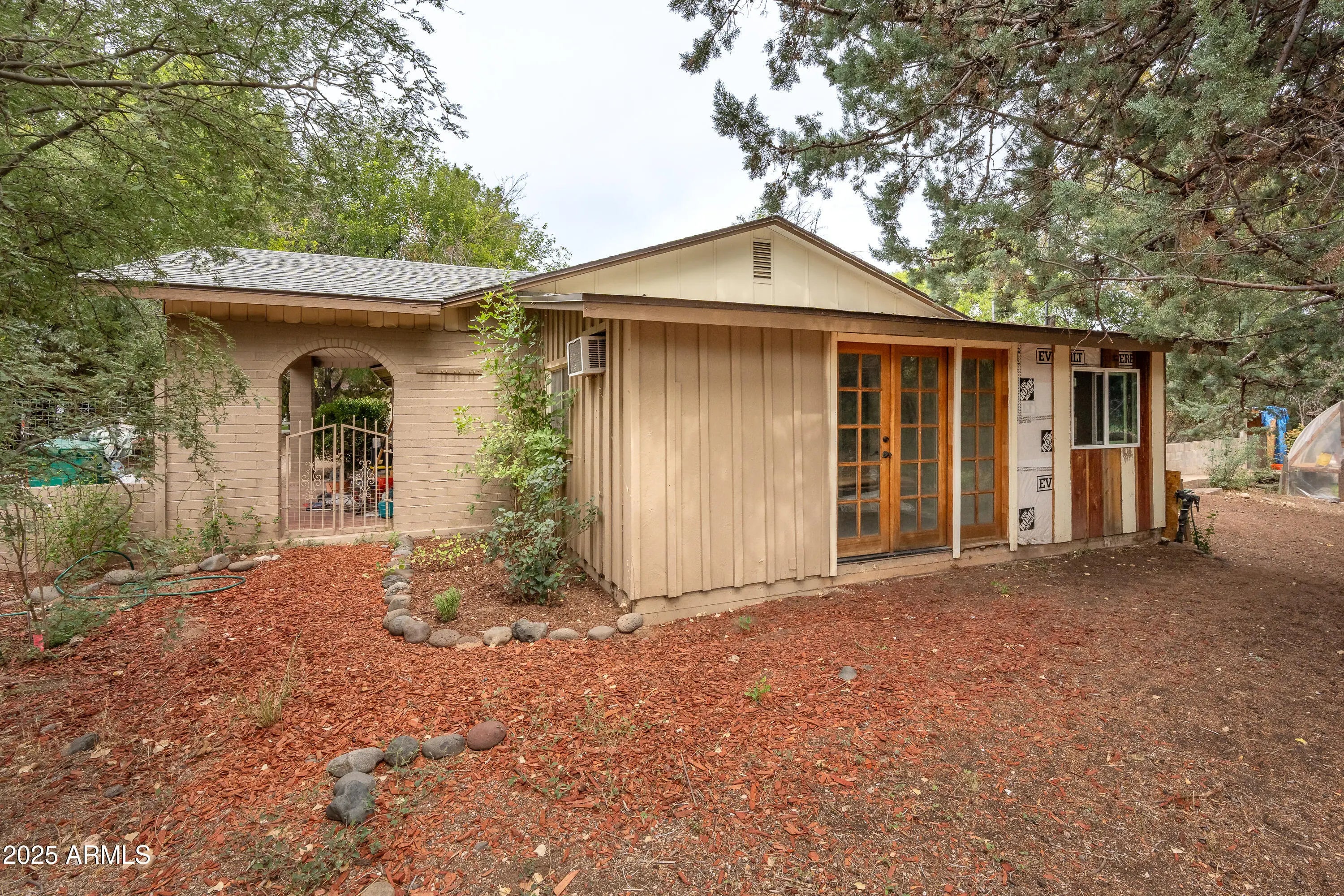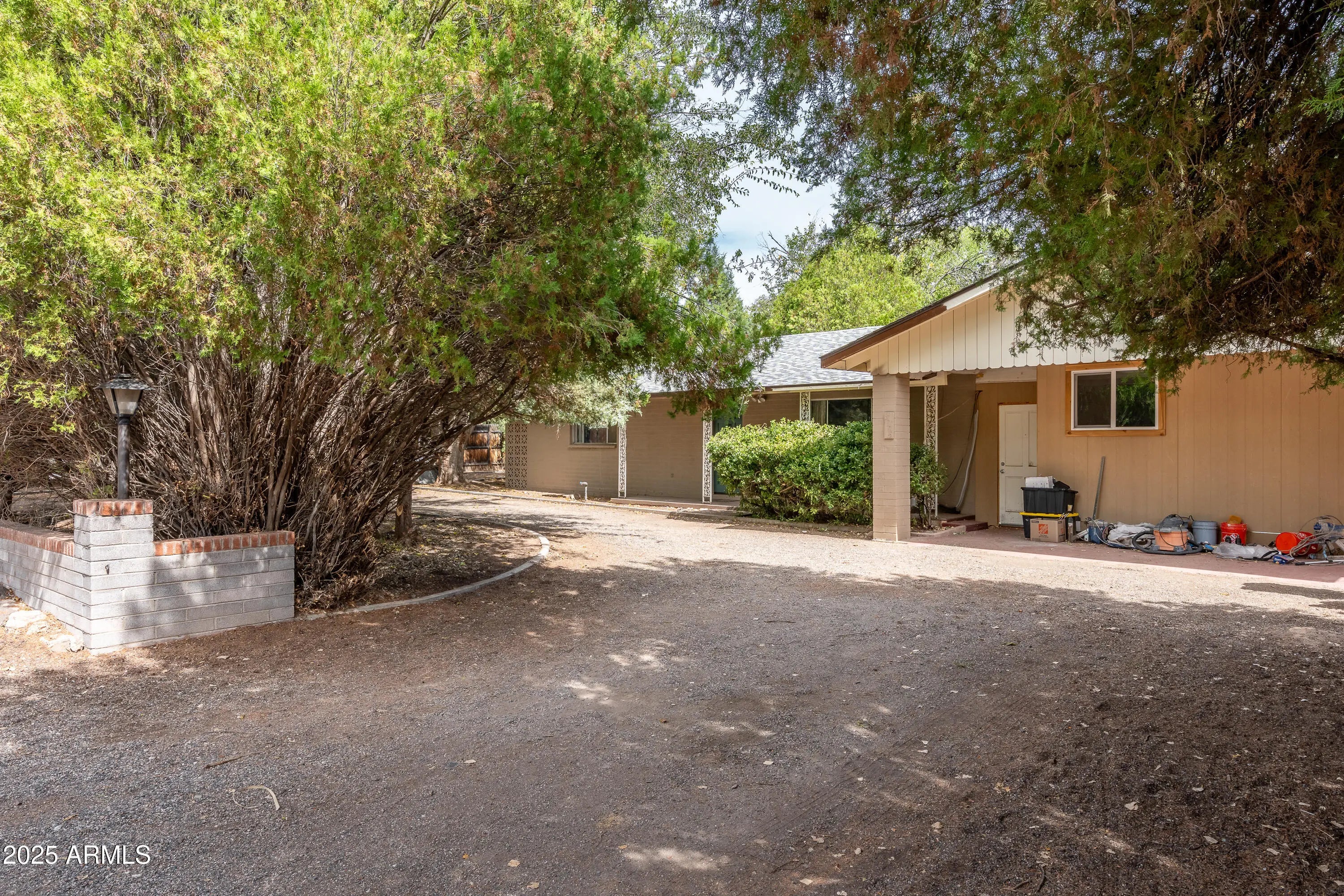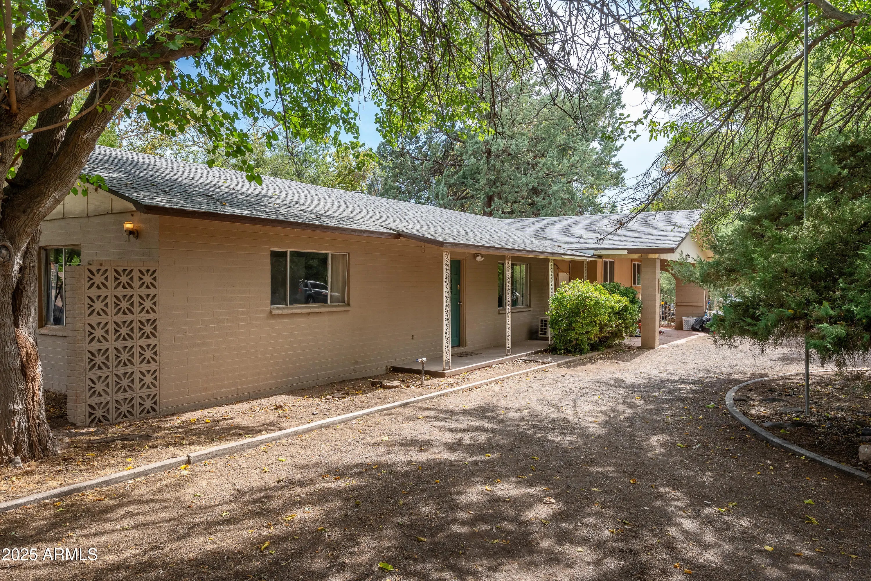 Bring your imagination and realize your opportunity for some sweat equity!! Set on a generous half-acre lot. Mature juniper, pine, and mulberry trees, with fruiting pomegranates and a beautiful Arizona cypress, the property provides a lush backdrop for your dream home. An on-site well ensures a thriving garden and trees. A long driveway on the left side of the house provides additional parking for an RV, desert toys, or multiple cars. Inside, an open living room flows into a bright kitchen, while a separate therapy room offers flexible space for a home office or studio. With some time you can create the space you have always dreamed of. Price reflects an As Is Sale. Outdoor living is paramount for Arizona homeowners, and this generous lot provides room to relax and play. Enjoy dinners under the canopy of trees, garden in the rich soil, or explore the possibility of adding a pool to beat the summer heat. Wildlife enthusiasts will love watching owls perch in the branches and deer and squirrels wander through the shaded yard, a magical reminder that you're living in harmony with nature. Set in a desirable Arizona community, enjoy your mornings at the local coffee shop or cafe. This oasis puts you close to hiking trails, golf courses and vibrant dining while offering easy access to the Verde Valley's booming economy. Whether you're seeking a vacation getaway, an investment with strong rental potential, or a forever home, this property combines space, shade and wildlife.