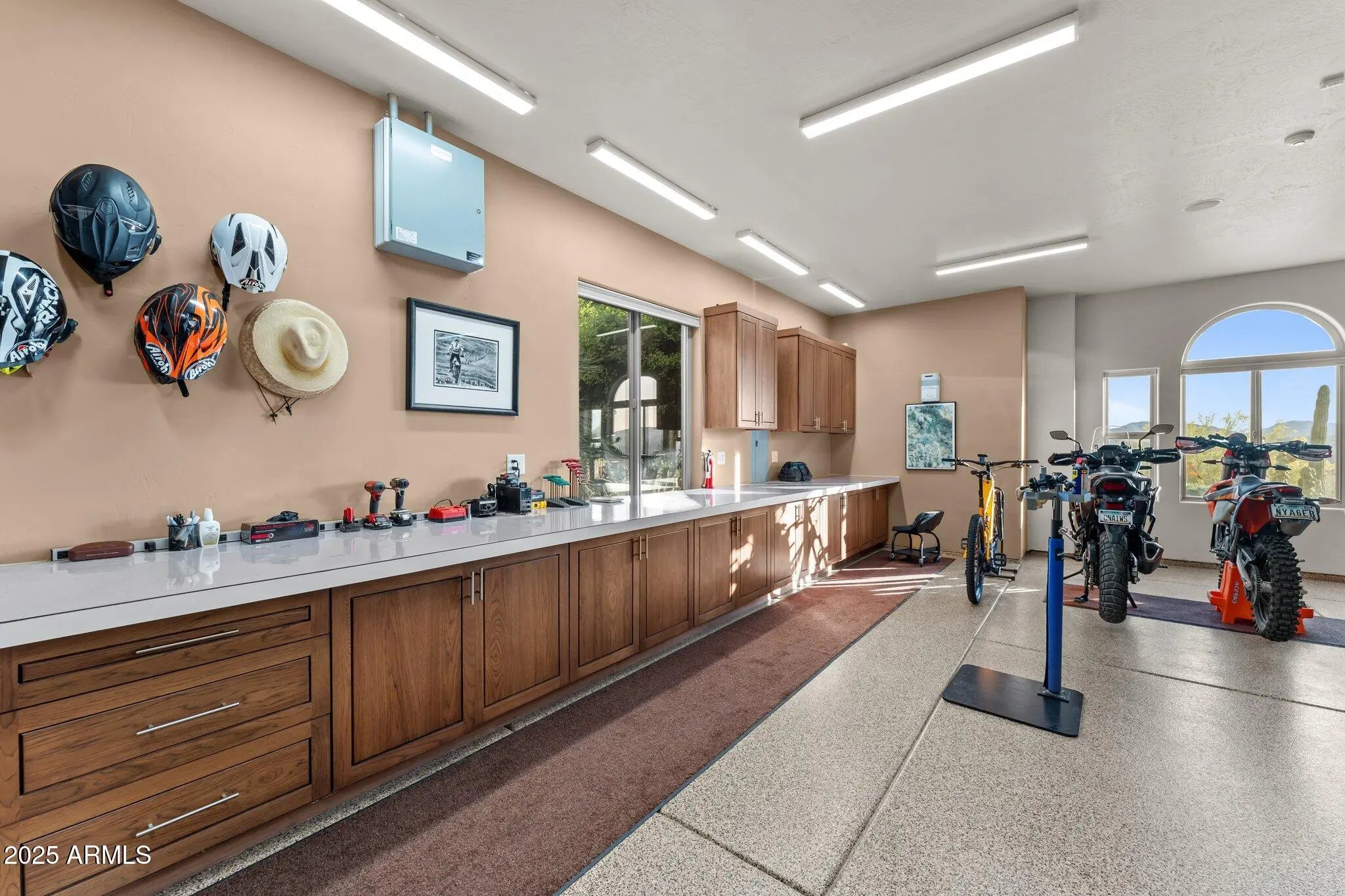 Calling all horse lovers, outdoor enthusiasts, and off-road adventurers. This private desert retreat offers nearly 25 acres of wide-open space with custom trails, sweeping mountain views, and endless possibilities for recreation or equestrian living. Perched on a private road overlooking historic Wickenburg, this property is a rare find for those who crave freedom, privacy, and room to roam. Bring your RV, UTV, ATV, motocross, mountain bikes—or your horses! There's ample space to create your dream horse setup with room for barns, arenas, and turnouts, all surrounded by Arizona's most beautiful desert landscape. The stunning drive-through RV garage features high-clearance doors and additional climate-controlled space for all your gear and vehicles. With direct access to BLM land and 25± acres of privately owned trails, you can ride, drive, or explore straight from your doorstep. Designed for both adventure and comfort, this home spares no expense, offering a true resort-style experience with commercial-grade amenities. Be sure to watch our video tour and experience this incredible desert property firsthand!