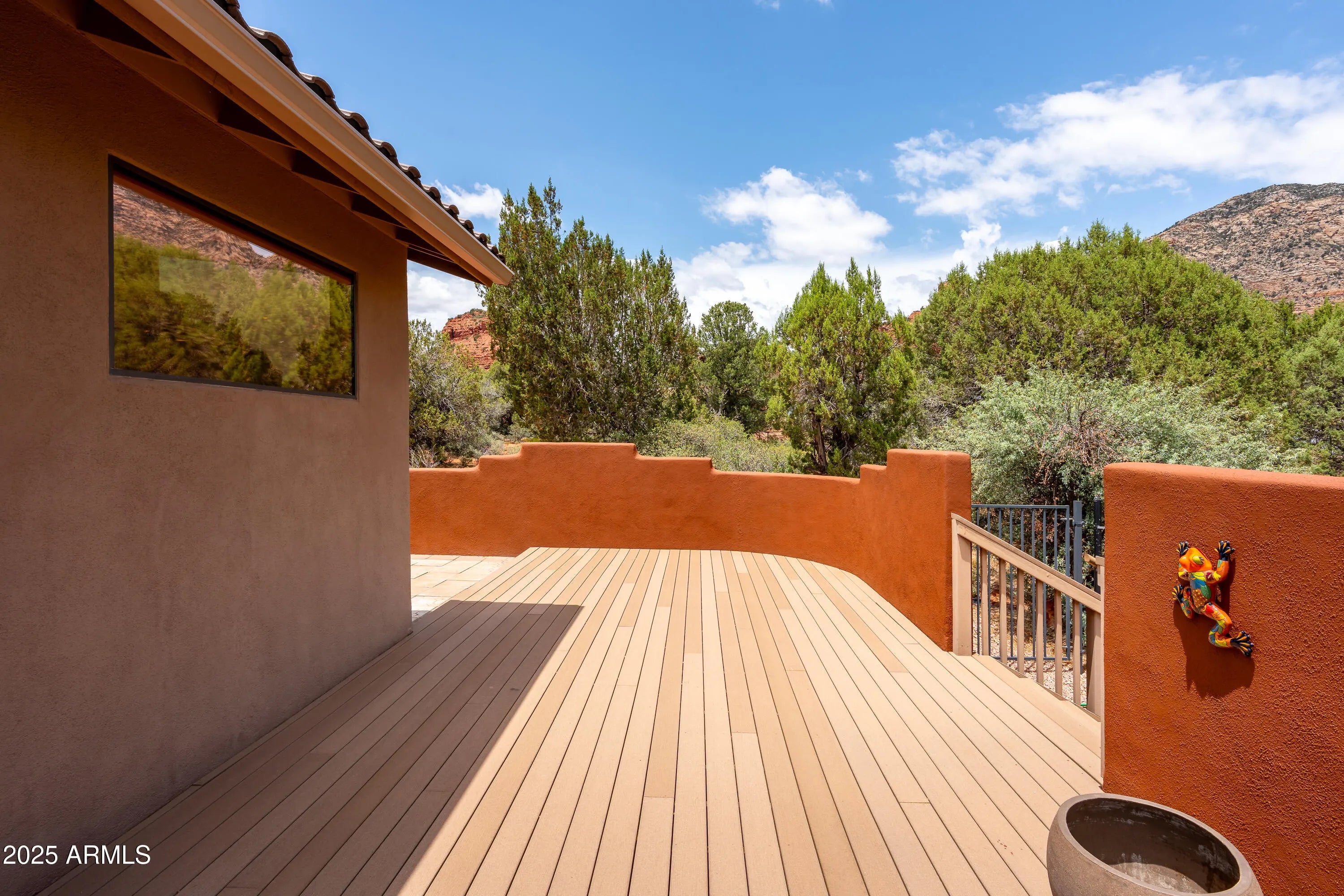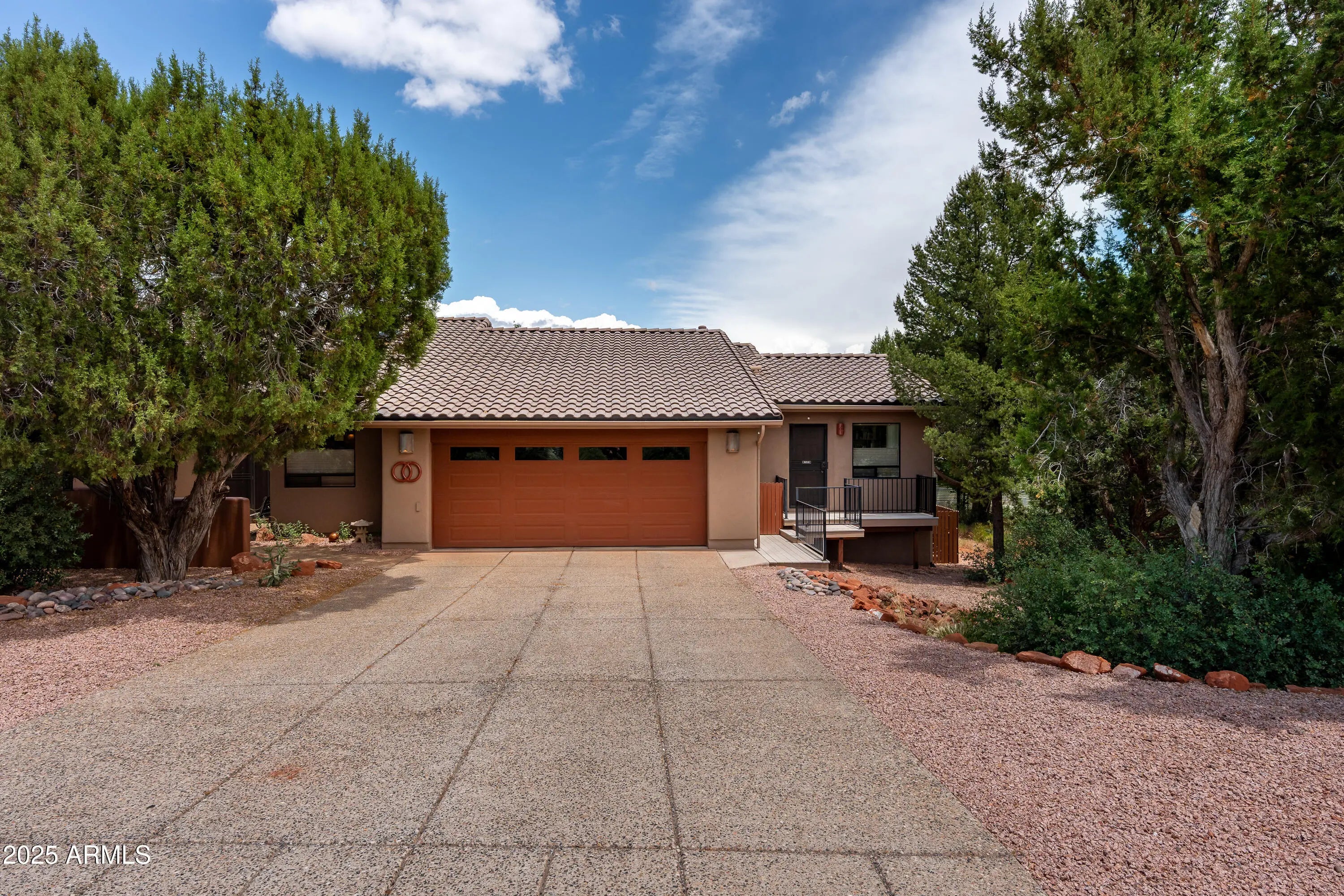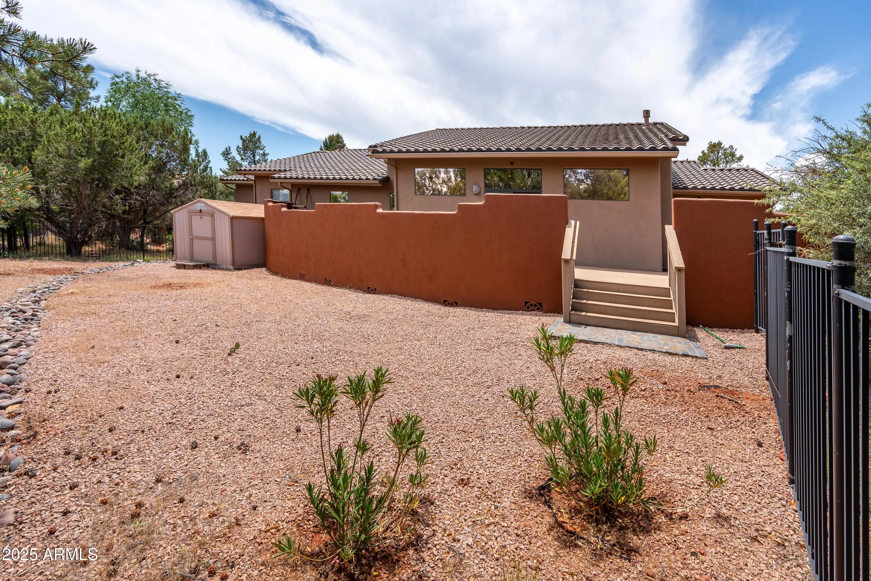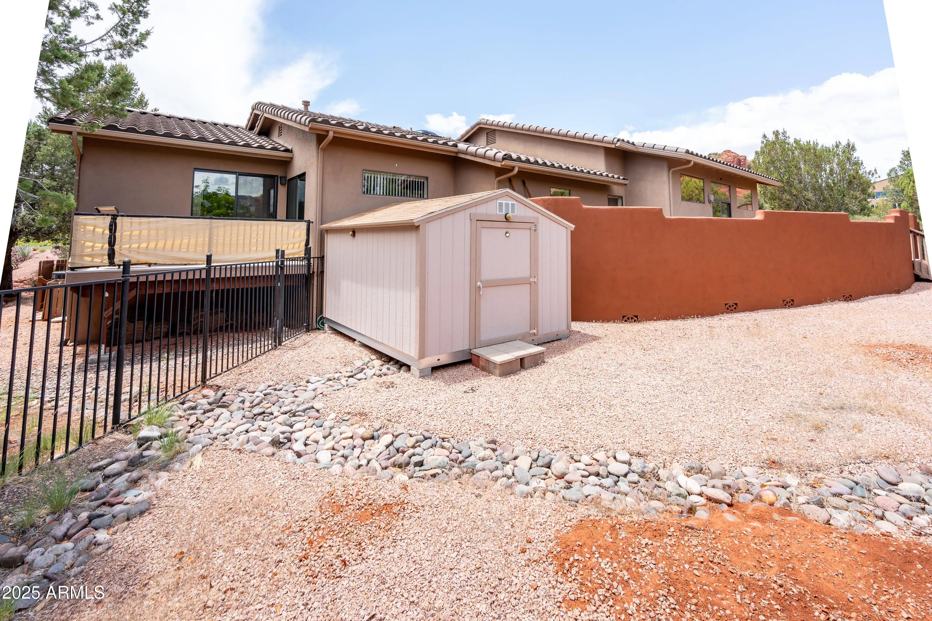 Dramatic Thunder Mountain red rock views from this single level modern home with inlaw/ studio space. Modern home with split bedroom plan and oversized living room opening onto rear patio with direct red rock views. Upscale neighborhood surrounded by more expensive homes is ideal for a full time residence or escape from big city life complete with trails nearby to explore the vast Sedona trail system with nearby access. Main home was remodeled to add an inlaw/guest suite that could also be an ideal home office/studio space with separate entrance. Main living space opens onto the elevated rear patio and encourages lounging and meals in the shade with massive red rock views! Backyard storage shed for your collectibles and storage needs!