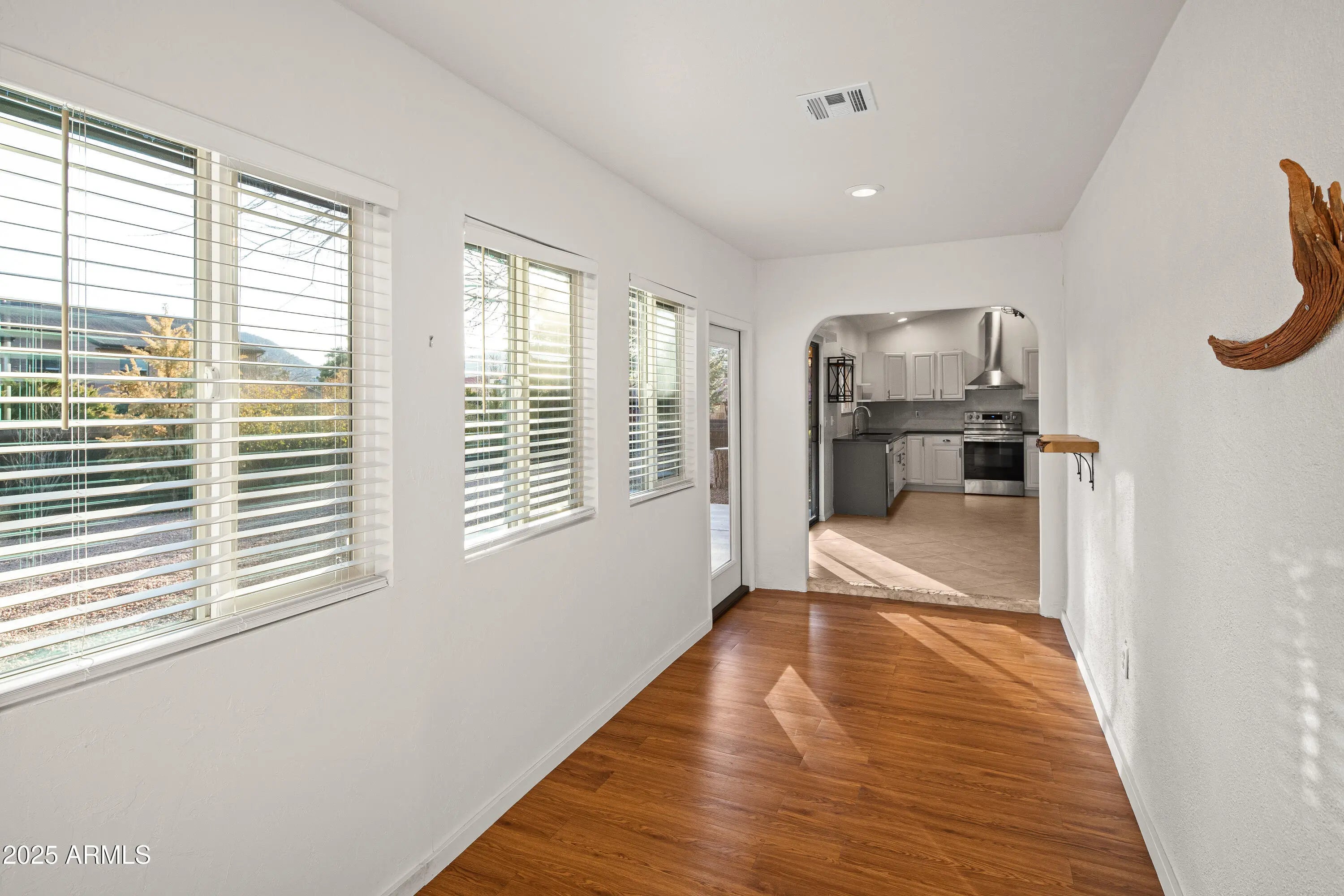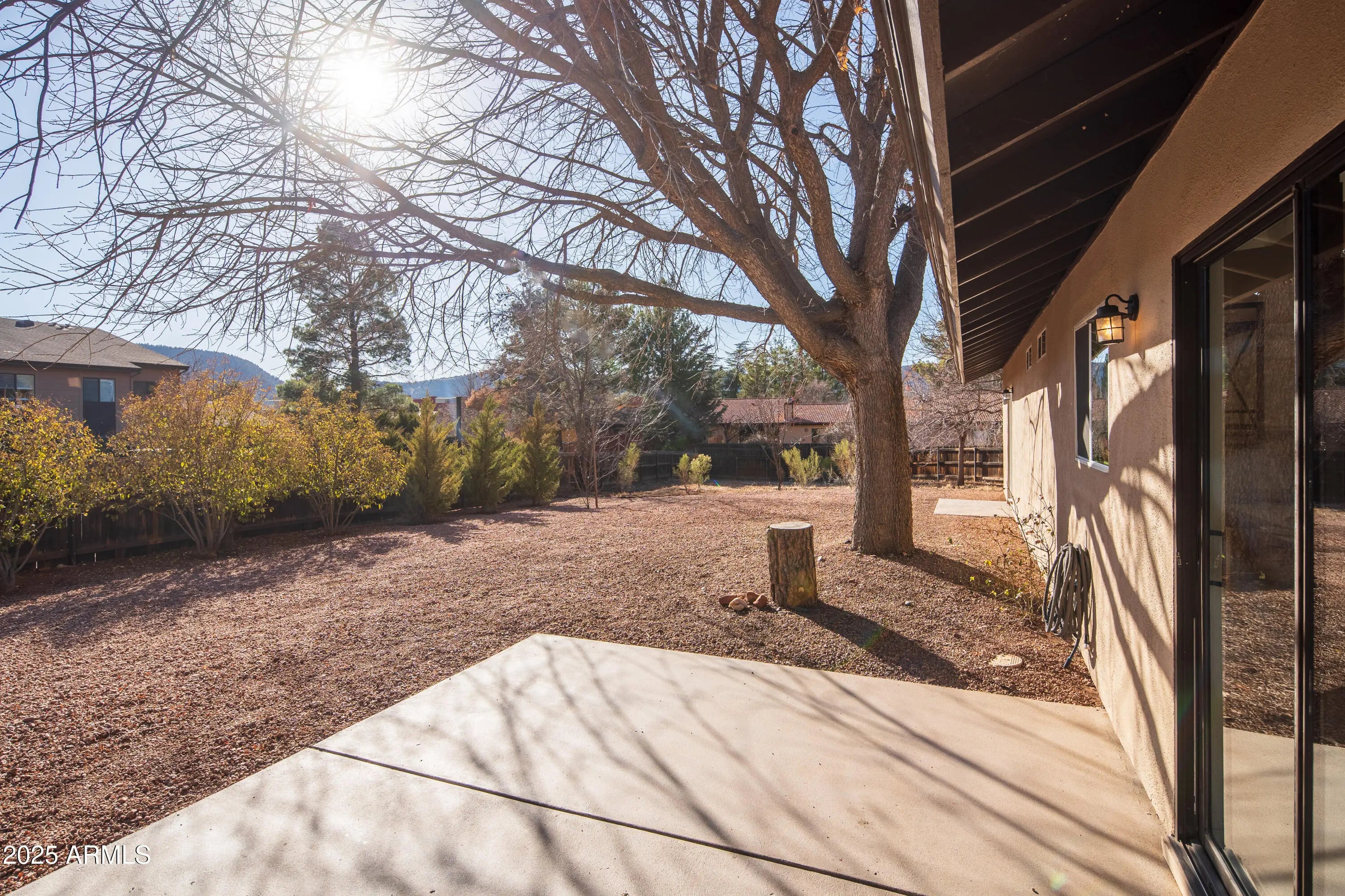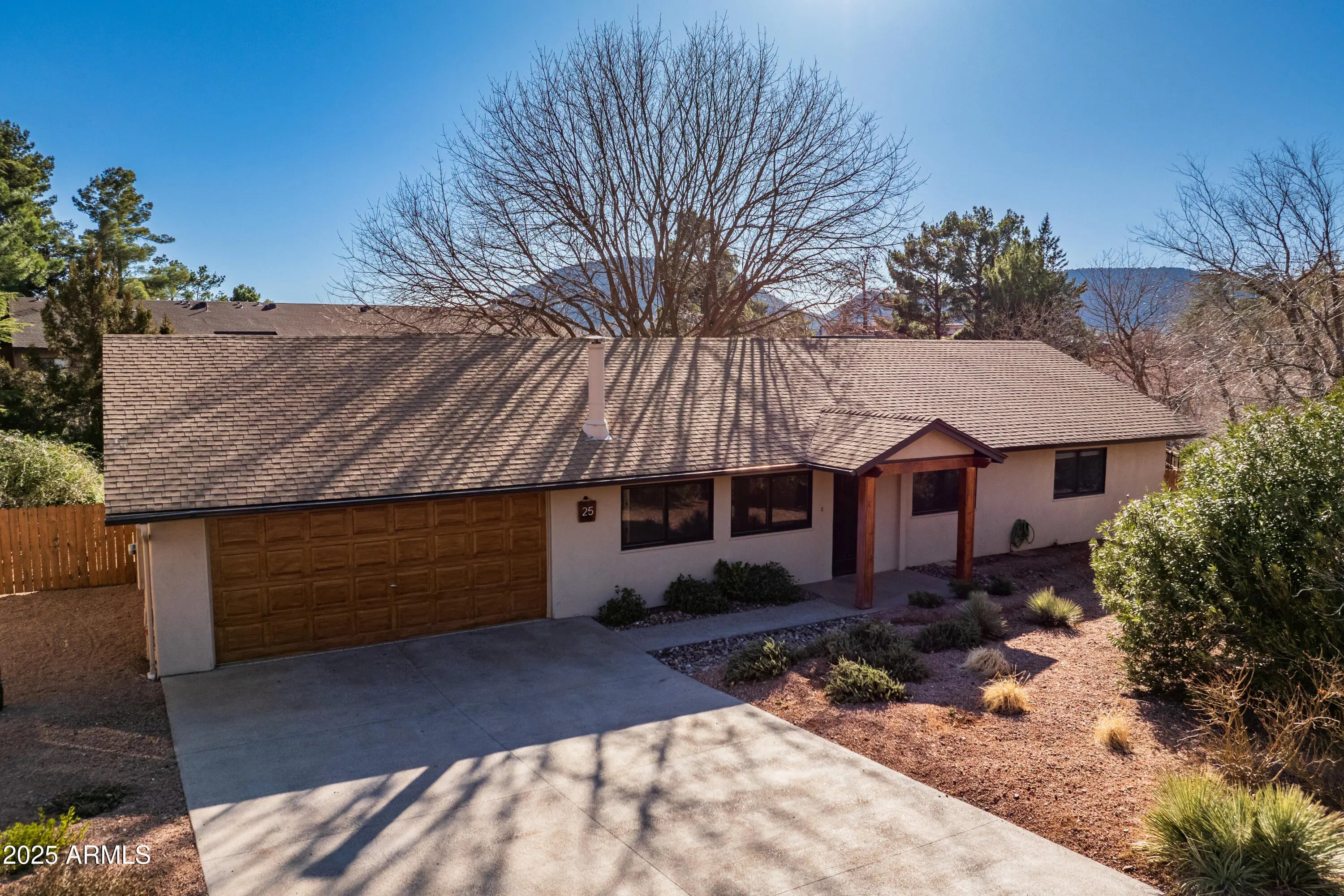 Charming & affordable ranch that is neat as a pin! 1560 sqft w/ 3BD & 2BA + a bonus flex room off the kitchen. This home gets wonderful natural light all day long, filling it with cheery vibrancy. Views to Courthouse Butte from the living room give it the ultimate pop! The curb appeal is an excellent introduction to so many lovely features found at this property. The front yard has landscaping improvements that further enhance the welcoming feeling. Around back, discover the sprawling fenced outdoor space, landscaped & dotted w/mature trees that provide shade in the warmer months. This exciting property has had myriad upgrades in the past few years, so just bring your furniture & personal style and it will feel like home in no time! MORE DETAILS + PHOTO NARRATIVE: ------------------------------- 25 SPUR COURT HIGHLIGHTS & DETAILS This ranch-style home is ready for you to move right in! Located in The Village of Oak Creek, and within walking distance of most of the town amenities. Be part of this vibrant enclave that features 3 golf courses, hiking trails, tennis & pickleball, restaurants, art shows & so many seasonal activities to enjoy year round. There is a 30-day rental minimum which keeps a strong sense of community & neighborhood pride. There have been significant improvements to the home since 2021 which means your To Do list is minimal! Improvements also include the conversion of a screen porch that was turned into a bonus room adding 160 sq. ft. to the home. This bonus room will work well as an office, yoga space, or an art/hobby studio. The myriad upgrades makes everything feel open, light, & fresh. The home has a classic ranch layout with the great room holding court with the kitchen & dining area & a hallway leading you to the bedrooms & bathrooms. This linear layout has lots of windows that bring in wonderful lighting all day long and nice red rock views from the front rooms. The outdoor space in the back cannot be beat if you're looking for a large yard to enjoy all four seasons. Oversized and completely fenced in! With two cement patio pads ready for furniture, the grill, & your al fresco dining set-up. The west end of the yard is without gravel & can have grass or turf added if you are looking to set up an easy dog-run area. Once you step through the front door, it won't take but a minute to imagine yourself arriving at home. The convenient location puts you only 10 minutes from the I-17, 20 minutes to Uptown Sedona, 50 minutes from Flagstaff. Make this great house yours! LIVING ROOM With two large windows that let in the light & the views, this cozy space is the heart of the home. -Entrance to the home via dark stained wood door -Engineered hardwood floors -Wood burning stove set on tile -Fresh paint w/accent wall -Contemporary ceiling fan -Elevated ceiling DINING ROOM/KITCHEN This integrated space adjoins with the living room providing wonderful space for dinner parties & entertainment -New larger format tile floor in Kitchen in 2025 -Remodeled in 2021 & 2022 with new stainless steel Samsung appliances + microwave -Grey Quartz countertops -Painted cabinets with fresh pulls & handles -Newer farm-style stainless steel sink & faucet -Water filter system -New lighting -Slider out to the backyard -Entry point to the Bonus Room BONUS ROOM Once an outdoor screen patio, this space is now part of the interior of the home adding an extra 160 sq. ft. of living space. Will this be your office, hobby studio or exercise room? -Laminate flooring w/baseboards -All new vinyl windows -New exterior door to the backyard -Fully framed in and drywalled -Recessed lighting -Climate controlled w/HVAC system PRIMARY BEDROOM EN SUITE Located at the far back corner of the home, this is where you will quietly retreat at the end of the day. It also has a French door to the backyard where you can create your own personal patio space. -Low pile waffle pattern carpet -Fresh paint with accent wall -Large step-in closet w/mirrored doors -New lighting -New French door to exterior backyard -En suite 3/4 bathroom w/tile flooring on the diagonal -New shower with floor-to-ceiling large-format tile walls & new faucet & shower head hardware -Skylight -New vinyl window -Newer single sink vanity with large mirror and bright lighting -Linen closet SECOND & THIRD BEDROOMS These two bedrooms are opposite on the hallway from the primary suite and face the front yard of the home, each with a peek-a-boo view to the red rocks. -Fresh paint w/ accent walls -Plush pile carpet floors -New lighting -Each with a large double-sized closet with mirrored doors GUEST BATH + HALLWAY ZONE A large guest bathroom is found on the hallway corridor along with a linen closet and the laundry/utilities closet. -Full sized bathroom with a shower/tub combo -Skylight -Tile floor on the diagonal -Newer single sink vanity -New lighting -New vinyl window -Washer & electric dryer w/storage cabinets -Electric water heater + electrical panel access GARAGE/MECHANICALS/OUTDOORS The property is in great shape and provides an opportunity to move into a home that has been well taken care of inside-out & upside-down. Most improvements were done starting in 2021 & onward ::: enjoyment abounds! -2 Car garage with new epoxy flooring + extra space for storage, tools & gardening supplies -Newer garage door & opener w/gel stained finish -New cement driveway that can accommodate up to 4 parked cars -Extensive landscaping & drainage -On septic -New gutters off front of home & garage -New post & beam front entry -Stucco home painted w/in the past 4 years -Comp shingle roof -Electric HVAC system -.29 acre lot with a huge wood fenced in backyard -On irrigation system w/landscaping in back & mature trees/shrubs -HOA is $330 for the YEAR - 30-day minimum rental -Location is walkable to most of the amenities in town Come take a tour today, this home is an excellent value!