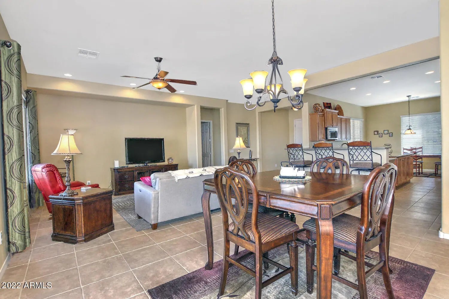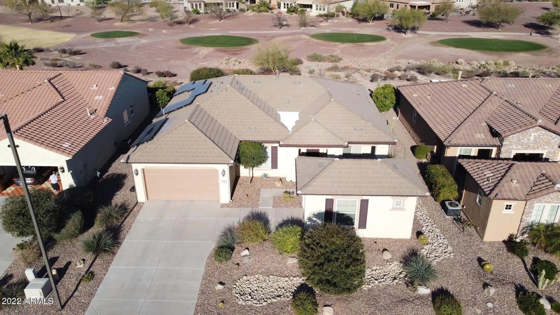 INCREDIBLE VALUE! This meticulously maintained home is perfectly appointed on a PREMIUM GOLF COURSE LOT overlooking our beautiful Poston Butte golf course and gorgeous Arizona sunsets off the back patio. As you enter the open floor plan of your new ''Paramount'' model take a moment to appreciate the options, upgrades and breathtaking views! Just a few of the benefits include a chefs kitchen w/staggered maple cabinetry and stainless steel pulls/knobs, Corian counters, breakfast nook, stainless steel appliances w/double ovens, new microwave, RO system and hot water heater, whole house water filtration system, ceiling fans, upgraded tile flooring throughout, window treatments, 3rd car garage, PVC irrigation and a solar savings. Must see home before it's SOLD!!