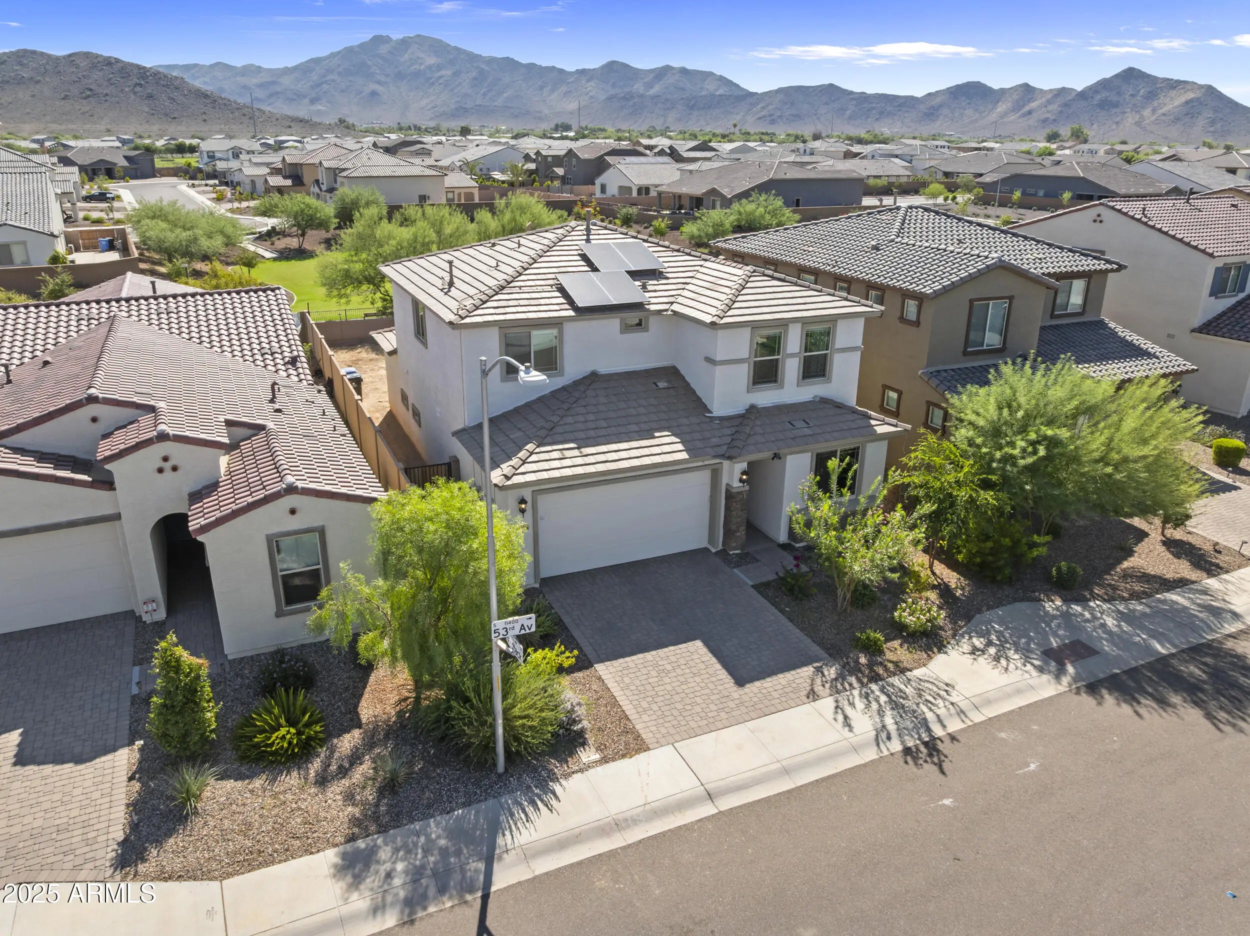 Welcome to this stunning 4-bedroom, 3-bath home in the heart of Laveen, built in 2022 and lovingly maintained. Inside, a full bathroom downstairs makes it ideal for guests, in-laws, or a private office. Upstairs, a spacious loft provides flexibility as a living room, game room, or media space alongside three bedrooms. The extended garage, a valuable upgrade, offers plenty of room to fit a truck, SUV, or recreational gear. The backyard is a blank canvas, ready for your dream design, with South Mountain hiking trails and walking paths just steps away. Pride of ownership shows with updated lighting fixtures and exceptional care. This home combines modern comfort, versatile spaces, and unbeatable access to nature—all in a well-established neighborhood.