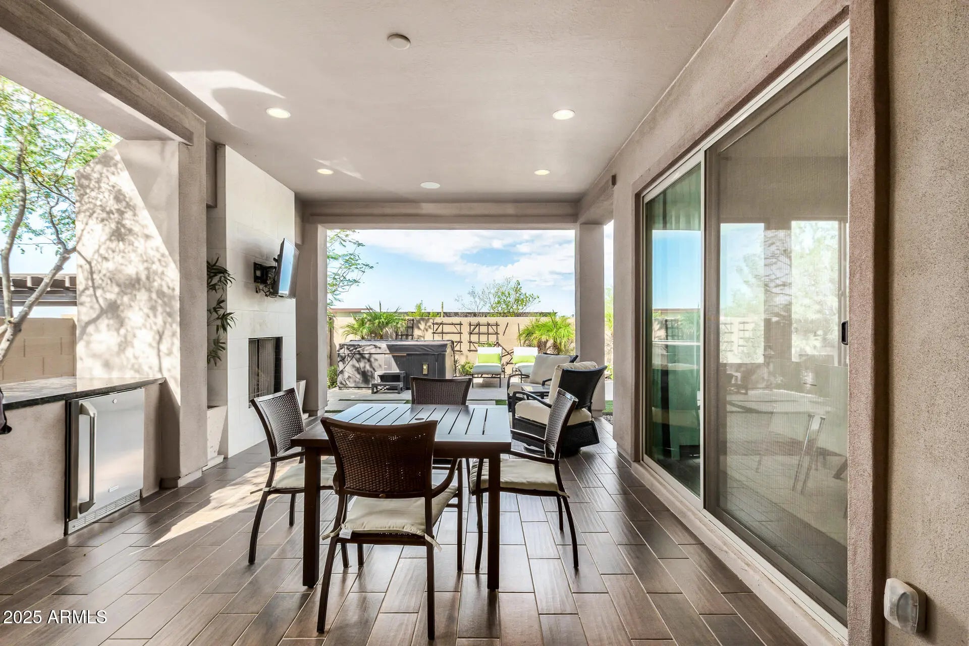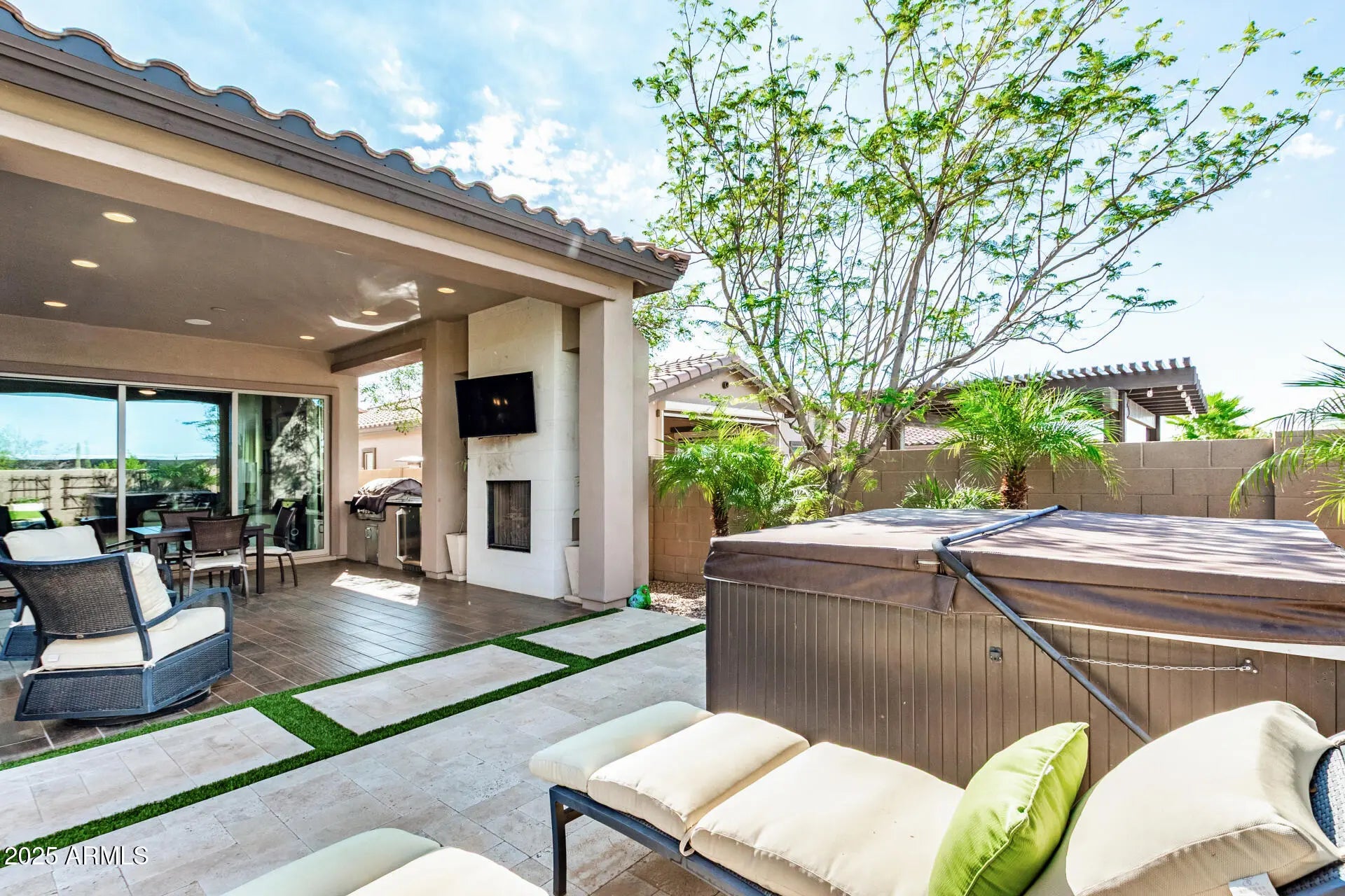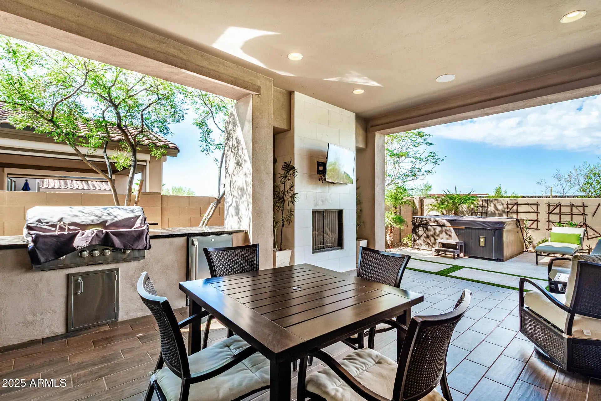 3 Bedrooms , 2 Bathrooms, 2-Car Garage Welcome to this stunning open-concept home in the heart of Scottsdale. The spacious kitchen and family room are designed for both style & comfort, featuring granite countertops, a stylish tile backsplash, and included appliances, refrigerator, washer, & dryer. The primary suite offers a generous walk-in closet and a spa-inspired bathroom with a large tiled walk-in shower. Step outside & experience Arizona living at its finest in the professionally landscaped backyard. Entertain with ease on the outdoor patio, complete with a fireplace, mounted TV, outdoor refrigerator, and relaxing hot tub perfect for year-round gatherings. This home combines modern finishes & luxury amenities, creating the perfect balance of indoor comfort & outdoor lifestyle.