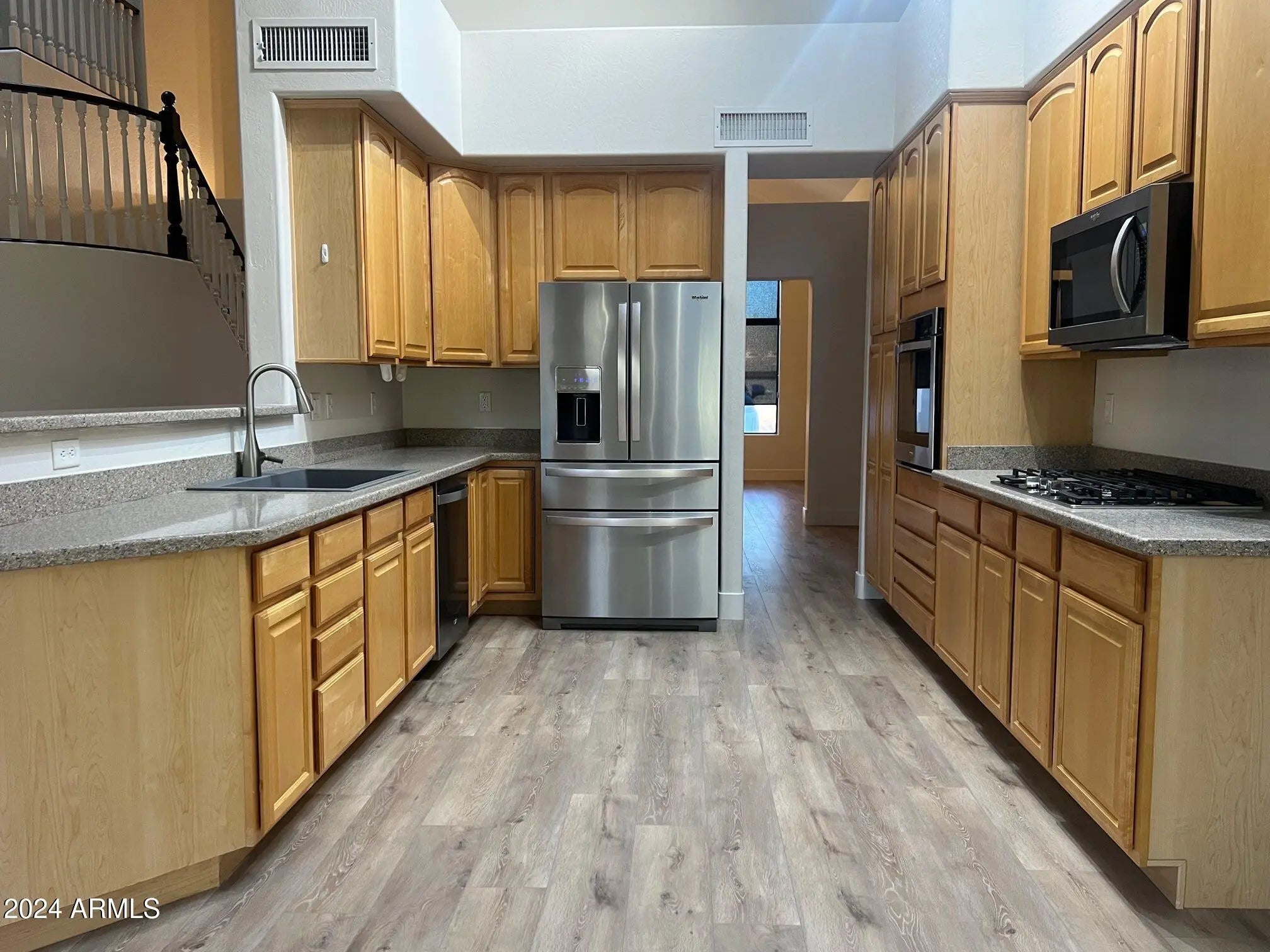 REMODELED EXECUTIVE Rental in a GATED COMMUNITY with 3 CAR WIDE GARAGE and HILLSIDE DESERT DIRECTLY BEHIND! You will love the new flooring throughout, the fresh paint, and designer lighting and fans! New stone accent wall at gas fireplace in Family Room and sleek roller shades throughout. The Primary Suite features an oversized room with walk-in closet plus a spa like bath featuring gorgeous vanity with framed mirrors, tile surround shower with frameless glass, and standing tub! All 3 Guest Bedrooms (one downstairs) have walk-in closets! New toilets throughout. Spacious Loft upstairs with two tone painted railings! Step out back to an oasis featuring paver patio, built-in BBQ island, gas firepit with built-in seating, and raised spa area! 5 mins to 67th & HV, 83rd Marketplace, & Trailhead