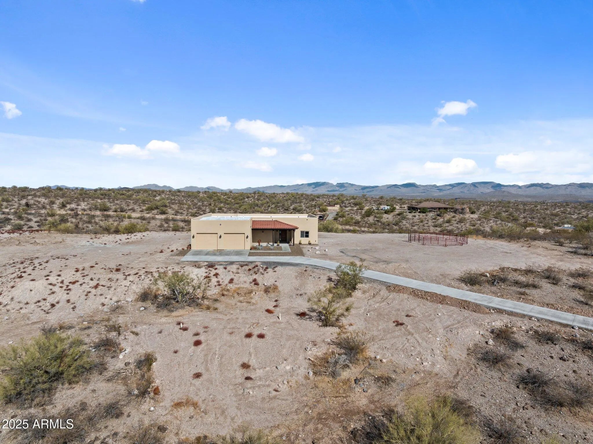 Welcome to Your Dream Santa Fe Style Home in Wickenburg, Arizona's Black Mountain Ranches! Enjoy the luxury of space on your vast 4.7-acre lot! With unobstructed views of the open desert and majestic mountains, this residence is a true oasis of tranquility and beauty. Step into luxury as you enter this custom Rubash home, where every detail has been meticulously crafted to perfection. The spacious and open floor plan boasts a plethora of upgrades, promising a lifestyle of utmost comfort and elegance. Throughout the home, you'll find wood-style tile floors that exude warmth and character. These floors not only add to the aesthetic appeal but also ensure easy maintenance, combining style with practicality. Concrete driveway was installed 2025.