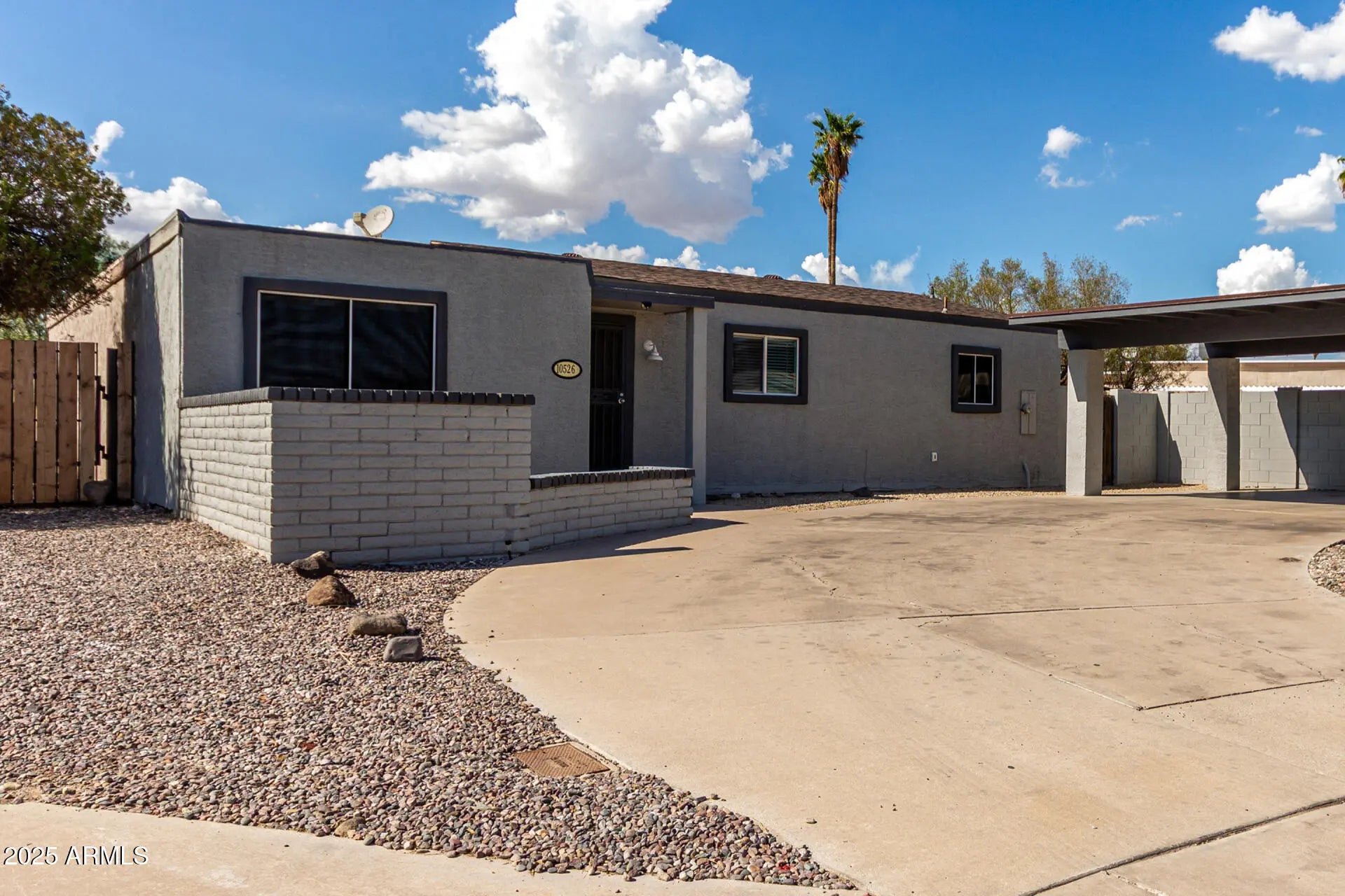 Welcome to this beautifully updated 3-bed, 2-bath home, offering 1,492 sq.ft. of stylish living, a large corner lot and NO HOA! Step inside to soaring vaulted ceilings and an open floor plan highlighted by modern plank tile flooring throughout. The kitchen boasts granite countertops, a custom backsplash, stainless steel appliances, and a convenient mobile island--perfect for everyday living and entertaining. The spacious primary bedroom includes a closet and private en suite bath. The included refrigerator w/6 month warranty, dryer and newer washer make this home truly move-in ready. Step out back to a spacious backyard, ready for your personal touch. Enjoy the 2-car carport, and a long driveway with room for six cars total! With easy access to the 101 and I-10 freeways, and ideally located near shopping, dining, schools, and recreation, this home has it all!