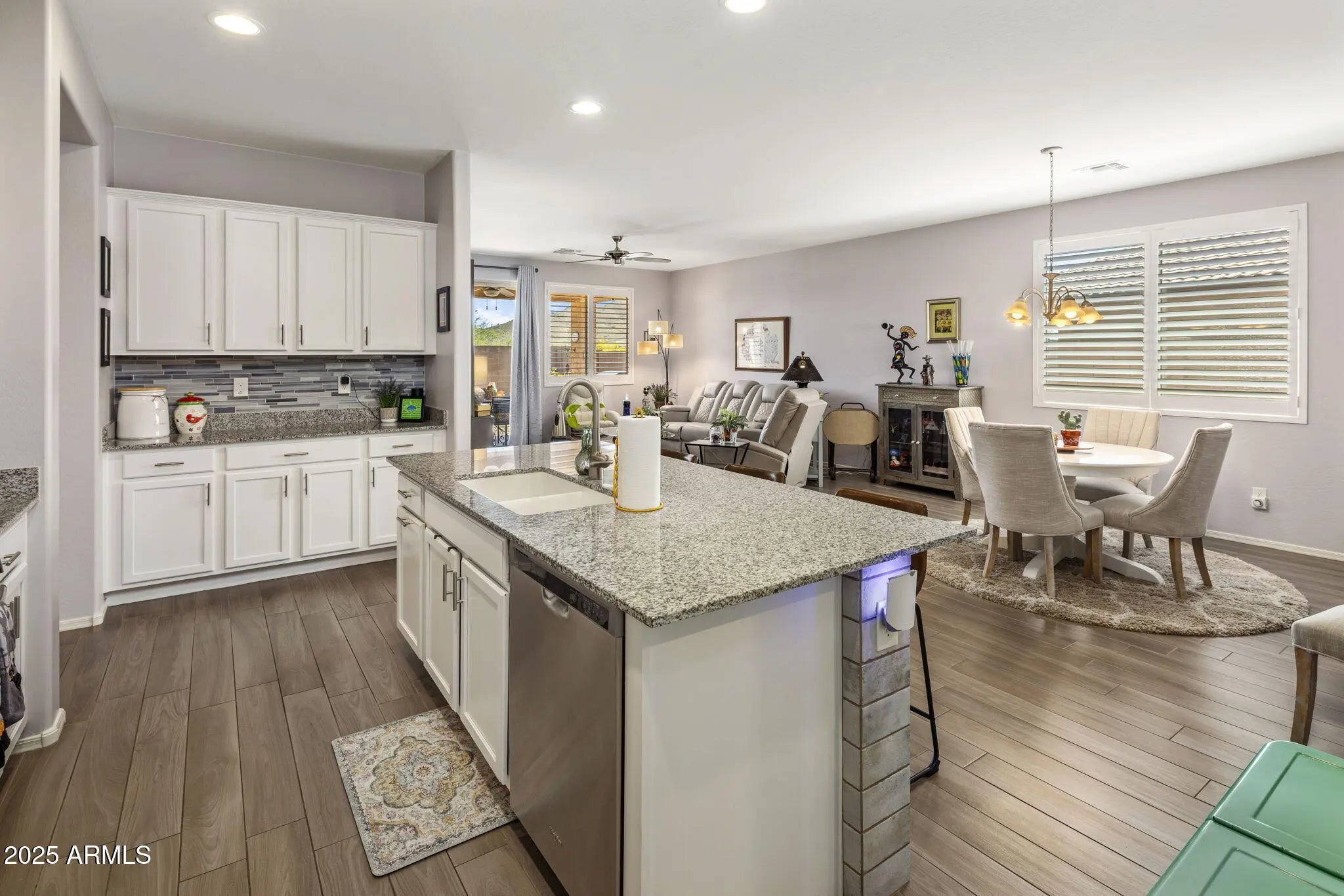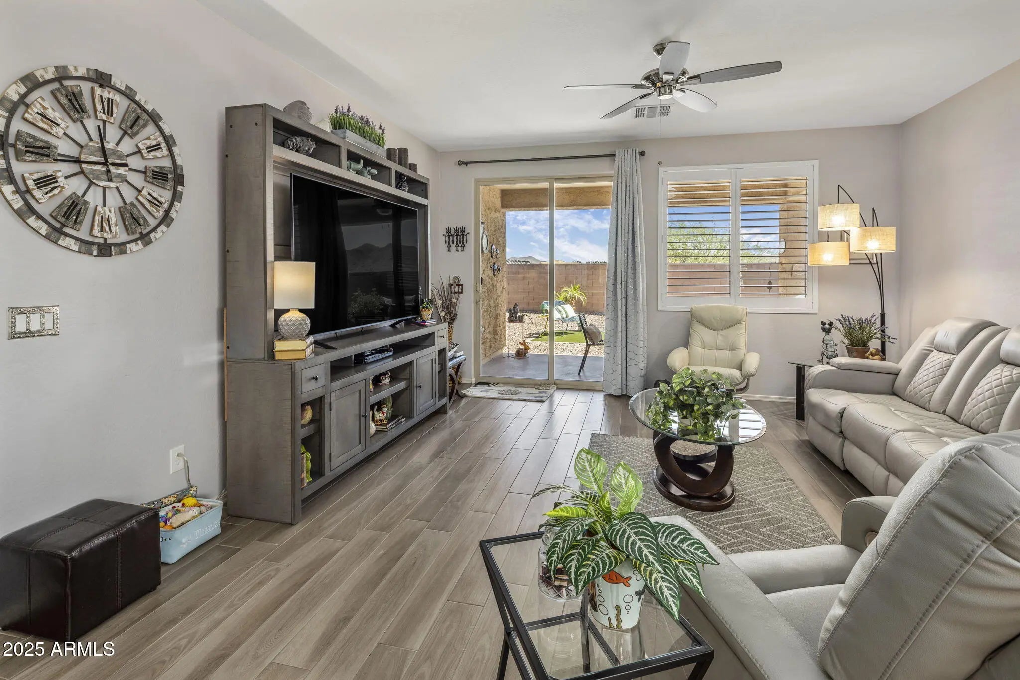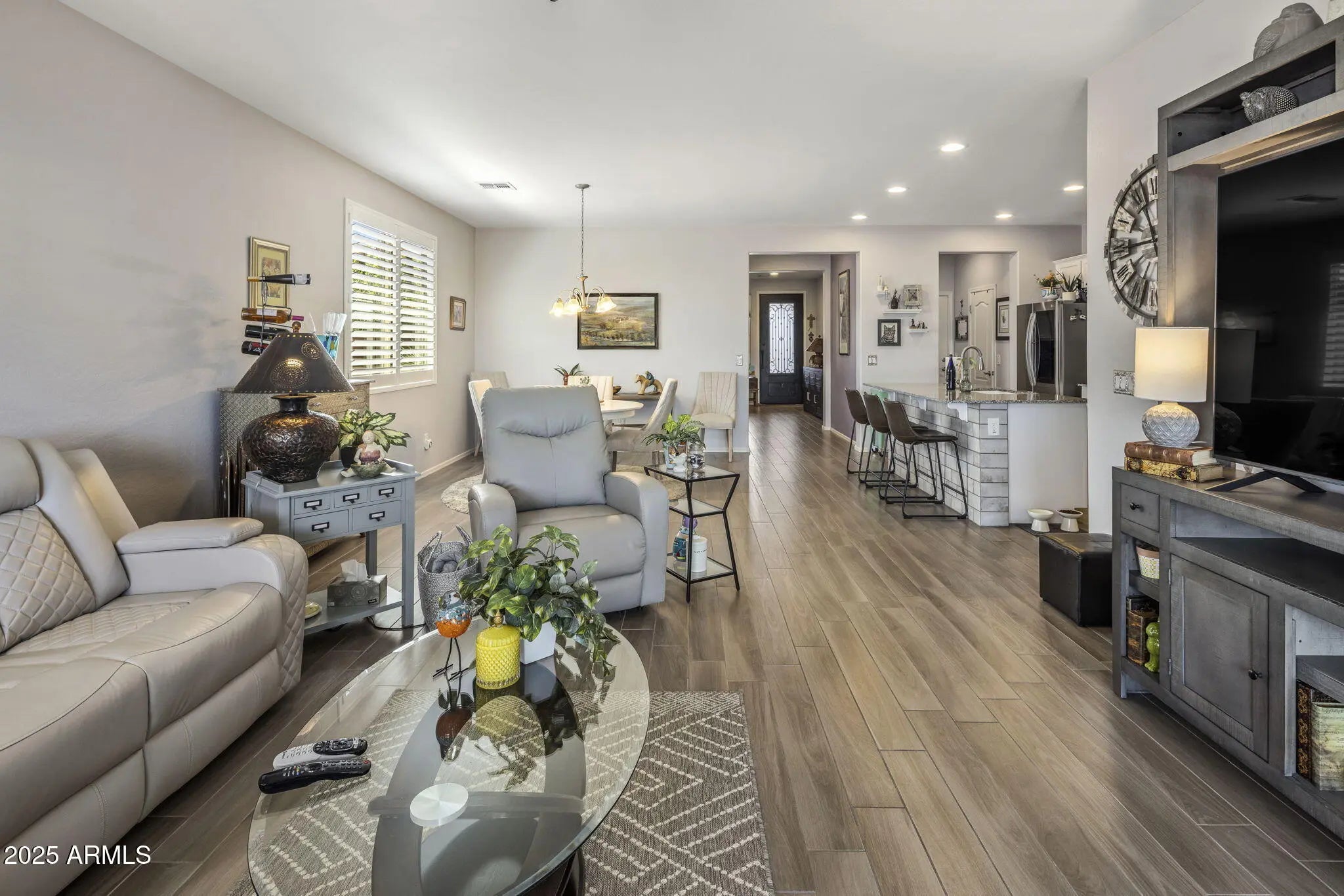 Well-maintained Taylor Morrison home with a functional layout that feels much larger than the square footage suggests! An impressive iron front door welcomes your guests into the foyer. The open kitchen has granite countertops, tons of cabinetry, butler pantry & walk-in pantry. Enjoy Italian porcelain tile with a wood-grain look throughout! A flex room offers a home office or dining space. One bed + bath are privately split, ideal for guests or multi-gen living. The spacious primary suite features a walk-in closet & upgraded walk-in shower. Outside, enjoy low-maintenance landscaping, complete with a covered patio, drip system, artificial turf & mountain views! Convenient location near Norterra, TSCM semiconductor plant, new state-of-the-art hospital and lots of shopping & dining options!