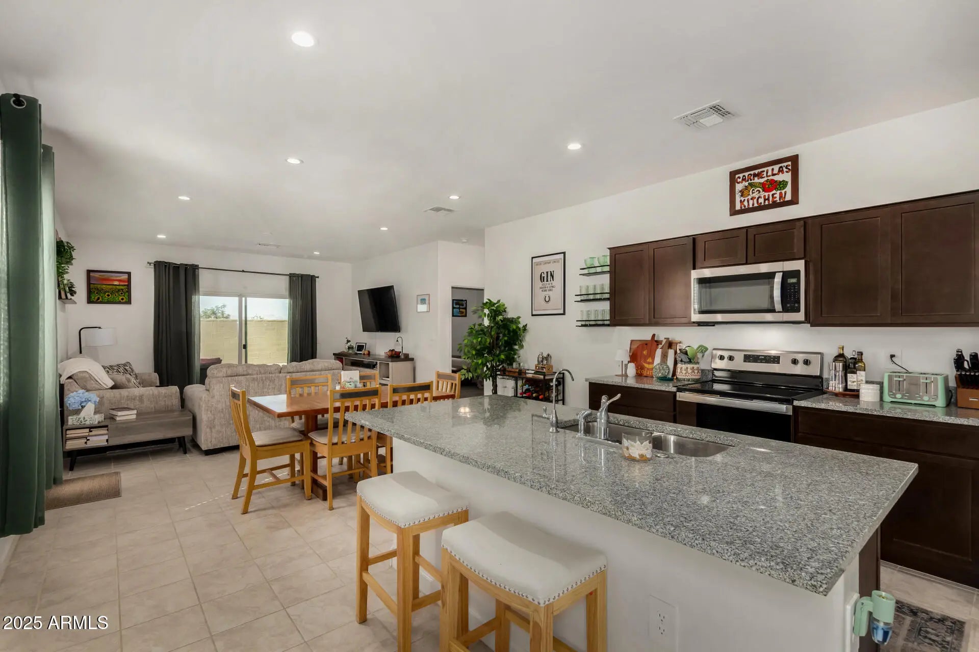 Home, sweet home! Experience comfort and functionality in this thoughtfully designed 3-bedroom gem, complete with a 2-car garage! Come inside to discover a perfectly flowing open floor plan, graced with tons of natural light, tile flooring, and neutral paint throughout. Recessed lighting, stainless steel appliances, ample cabinets, granite counters, a prep island with a breakfast bar make this kitchen a cook's delight. Continue onto the impeccable primary bedroom, offering plush carpet, a private bathroom with dual sinks, and a walk-in closet. Enjoy tranquil mornings or quiet evenings on the relaxing covered patio, excellent for unwinding in your private outdoor space. Seize this rare opportunity while it's available!