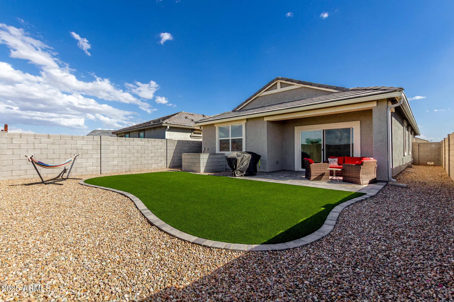 North/South Exposure, Gravel/Stone Front, Gravel/Stone Back, Synthetic Grass Back
