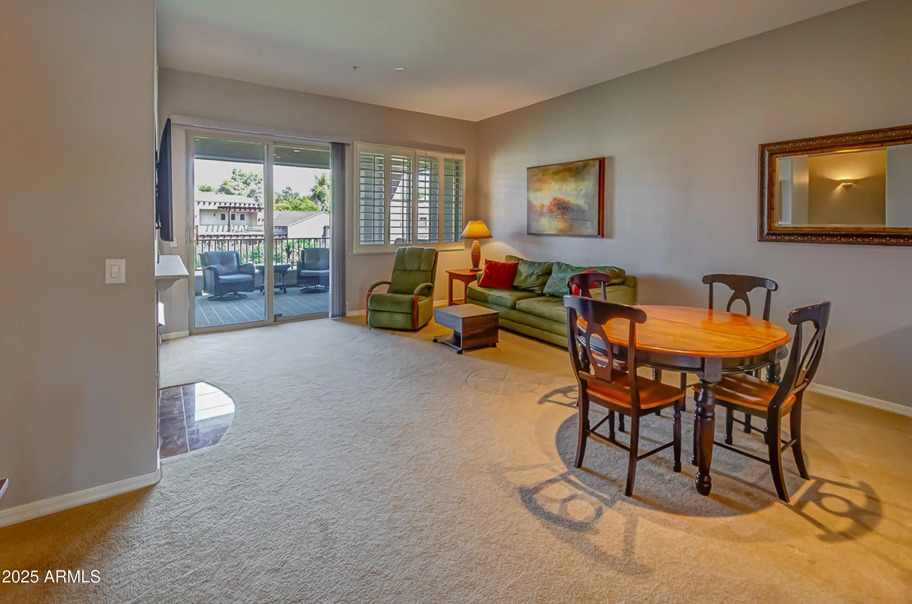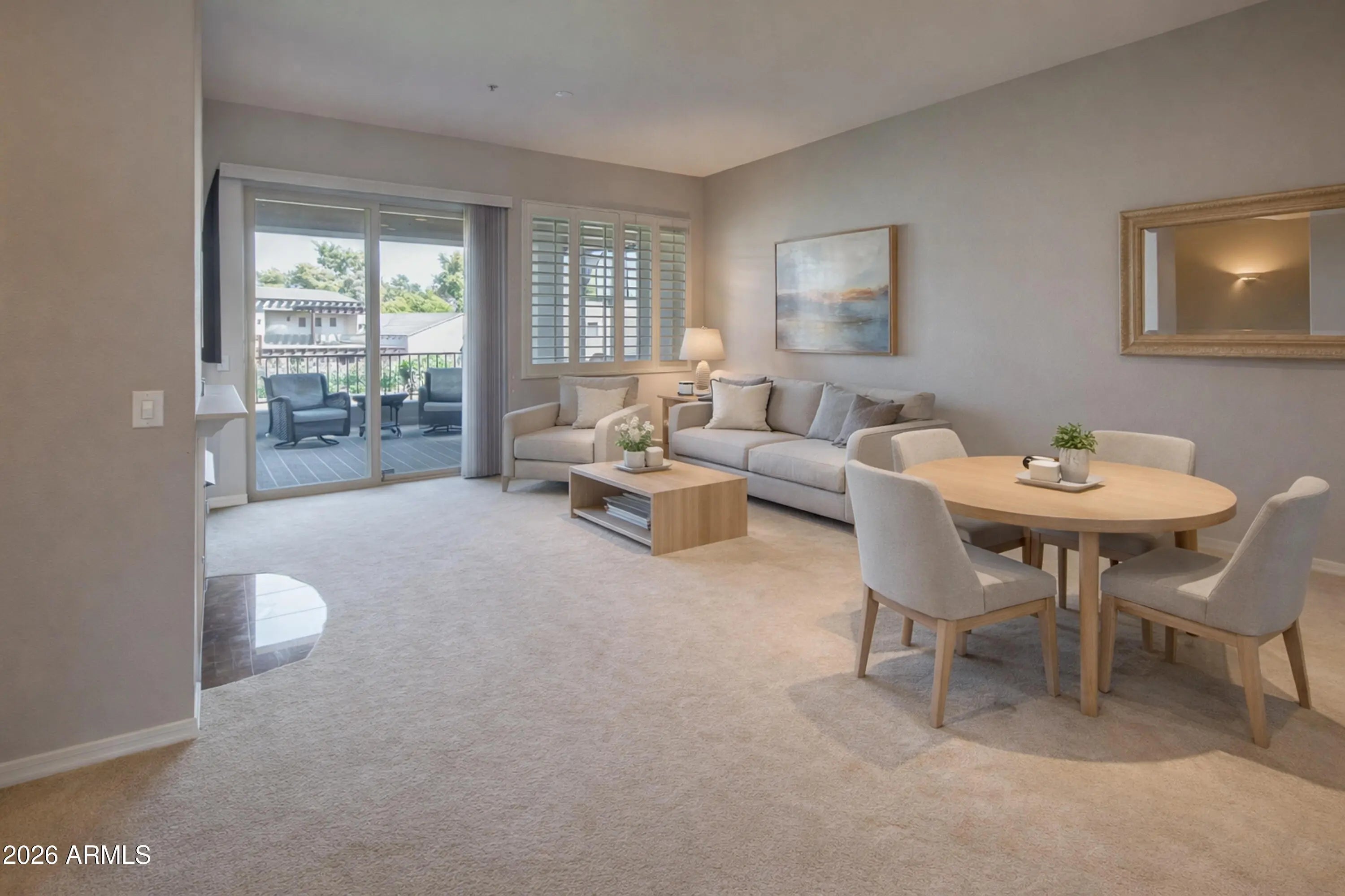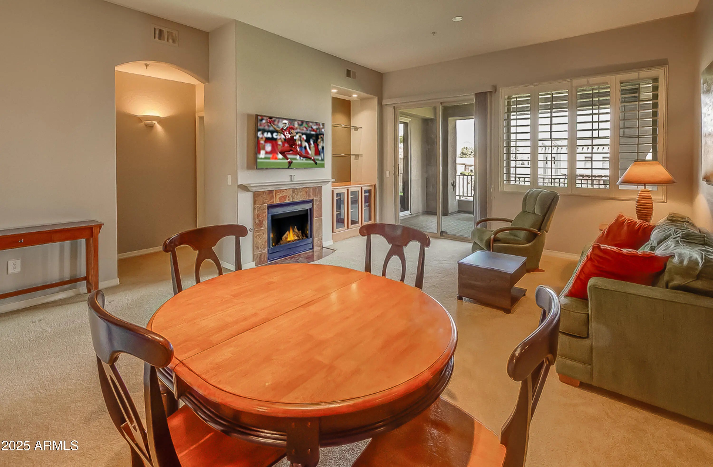 Resort-Style Living in the Heart of Scottsdale. Experience the best of Scottsdale in this beautifully maintained 2BD, 2BA condo with 1,463 sq ft of comfort and style. Enjoy stunning Starfire Golf Course views from the spacious East-facing covered balcony. The open layout features a large living room with a cozy gas fireplace, dedicated dining area, and a well-appointed kitchen with raised maple cabinetry, pantry, and breakfast bar. The expansive primary suite offers direct patio access, large walk-in closet and dual sinks. Located in a gated community with resort-style amenities including a fitness center, heated pool, and spa. Perfect for a year-round residence, winter getaway, or investment. Close to top restaurants, shopping, grocery stores, and the Loop 101.
