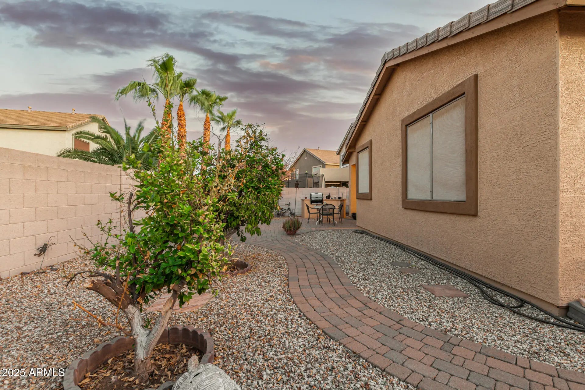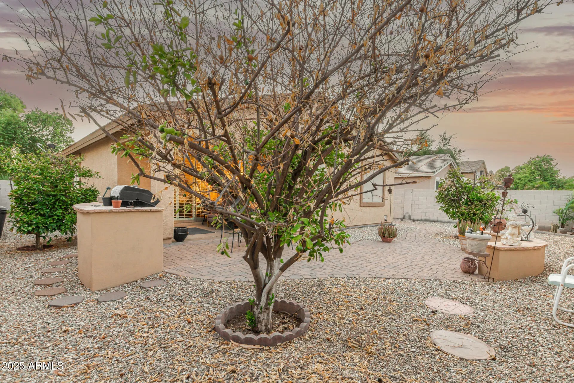 Delightful 4-bedroom home is now on the market! The inviting facade, cozy front porch, and mature landscape are just the beginning. Take a look inside, where you'll be greeted with spacious living areas showcasing tile flooring, carpet in all the right places, plantation shutters, arched passageways, and an earthy palette throughout. The bright kitchen displays oak cabinetry, granite counters, decorative tile backsplash, built-in essentials, and a center island. The serene main bedroom boasts a closet and an ensuite with double sinks and a separate shower & tub. Your private backyard is complete with a cozy covered patio, well-laid pavers, and a built-in BBQ, perfect for fun gatherings. What are you waiting for? Come see it before it's too late!