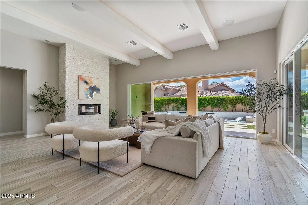The 2020 Energy Star Certified Semi Custom Award Winning Cachet home is stunning and ready to impress. Driftwood color porcelain through out, Control 4 inside and outside to create a superior living experience. Full Pool Chiller for cool days in the Summer, with pool heater for chilly nights, natural gas operated. LED lighting package in Main living area and Primary Suite, 550 bottle wine cellar, Sub Zero and Wolf appliances, Inline ice maker, second refrigerator in laundry room with exceptional double island. All bedrooms have En-Suite Bathrooms, Bonus room built out for quiet home office space. Attached Casita, and many more items to offer, including air conditioned garage and 200 AMP fast EV charger, 10 & 12 foot ceilings throughout. Last comparable sale 2.75M 5542 E Allan, Finance Av