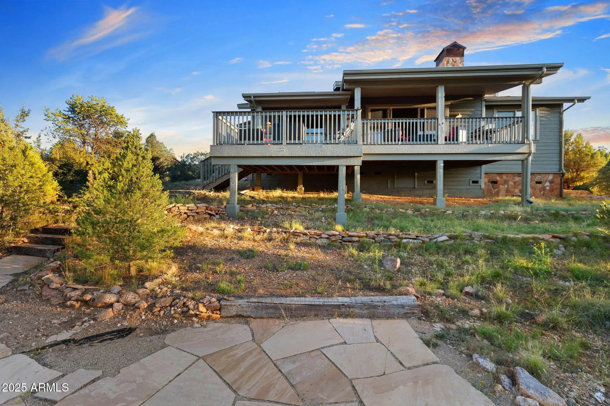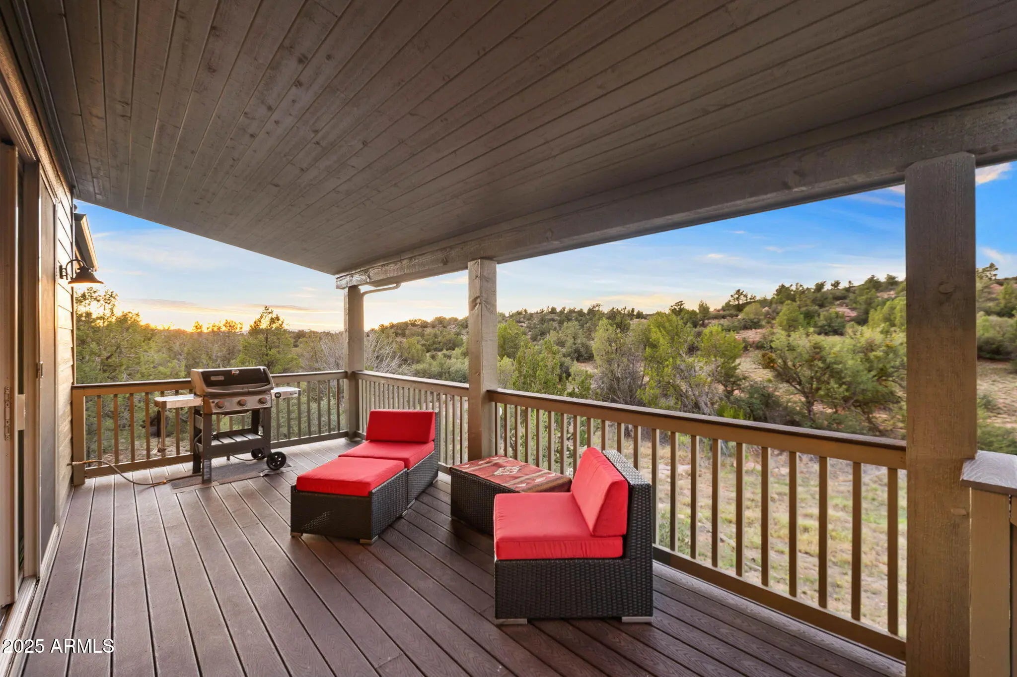 Tucked at the end of a quiet cul-de-sac, this charming home offers a tranquil retreat with privacy and stunning views. Backing to a hiking trail and HOA open land, you'll enjoy daily visits from wildlife and breathtaking North and Western sunset views right from your own backyard. Inside, the open floor plan is designed with both comfort and function in mind. Warm wood flooring flows throughout, accented by wood beams and a cozy gas fireplace in the great room. The kitchen provides abundant cabinet and storage space, along with a convenient dry bar just off the kitchen and dining area—perfect for entertaining. Step outside to the expansive back deck, featuring both covered and uncovered areas where you can relax, entertain, or simply take in the peaceful surroundings. Close to amenities yet set in nature, this home truly blends convenience with serenity.
