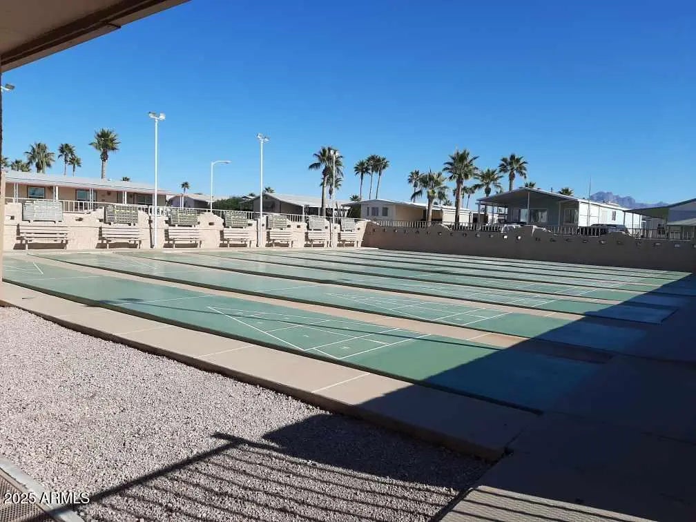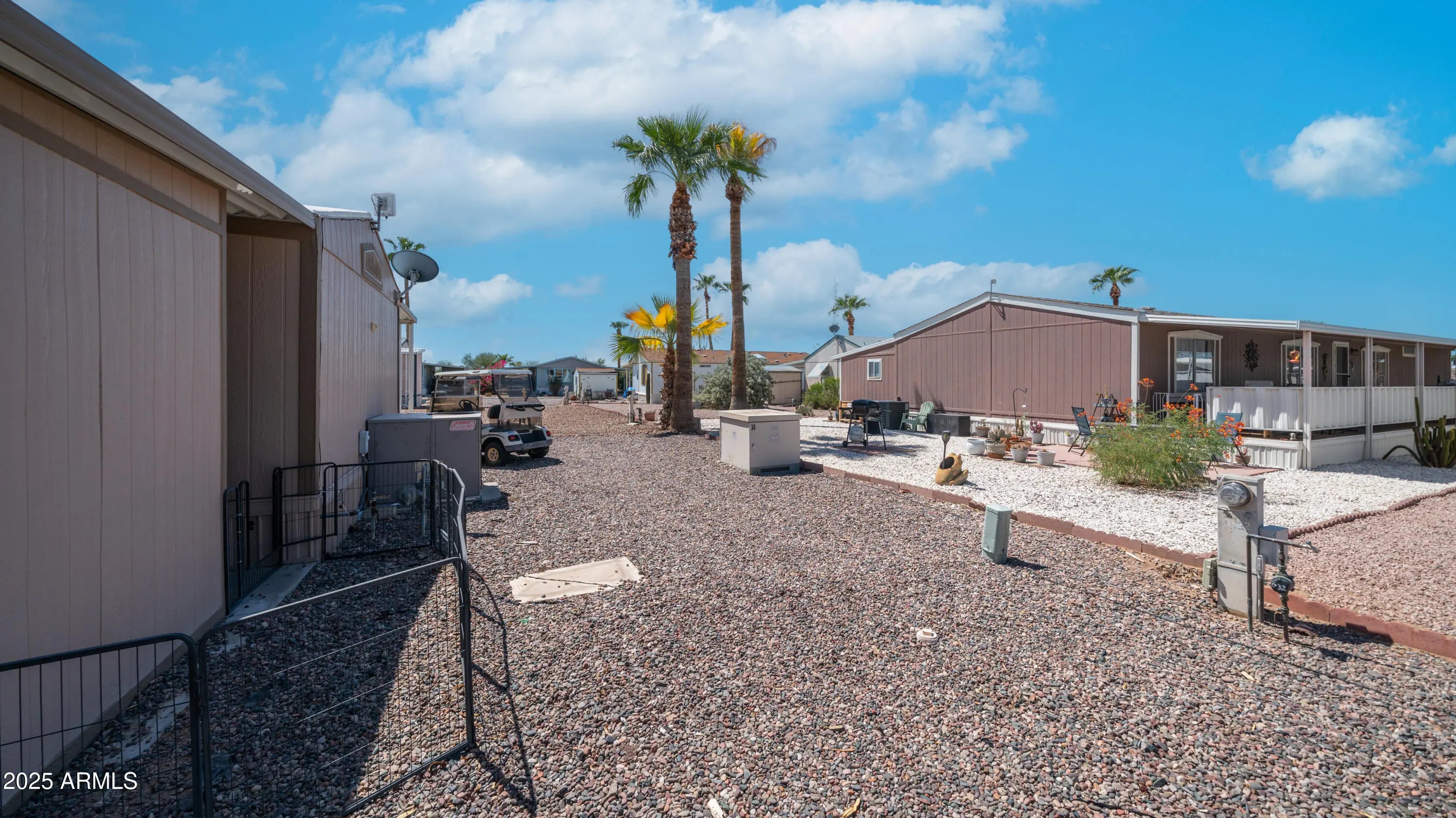 Welcome to your dream retreat in the heart of the highly sought-after Superstition Buttes 55+ community! This charming and beautifully maintained 3-bedroom, 2-bath split floorplan home offers the perfect blend of comfort, style, and functionality. From the moment you step inside, you'll be greeted by all solid-surface flooring and fresh interior paint, creating a bright and welcoming atmosphere throughout. The spacious, open kitchen has been thoughtfully updated with modern countertops, a sleek new faucet, a kitchen island for gathering or prepping, and a full-sized dishwasher—making it a joy to cook and entertain, whether you're hosting guests or enjoying a quiet meal at home. The generously sized master suite is your own private sanctuary, complete with a walk-in closet and a converted, easy-step tub that offers great accessibility. Two additional bedrooms provide plenty of flexibilityperfect for a guest room, home office, hobby room, or anything else your lifestyle requires. The cozy living room invites you to unwind with modern furnishings and your very own electric fireplace, creating the perfect ambiance for cool desert evenings or lazy afternoons. Step into the laundry room, fully equipped with a full-sized washer and dryer, plus added storage for all your essentials. Outside, the Arizona lifestyle truly comes to life on the spacious wooden deck, an ideal space to sip your morning coffee, watch the sunrise, or simply enjoy the tranquil surroundings. When temperatures rise, just turn on the built-in misting system and relax in your personal outdoor oasis. A detached storage shed offers extra space for tools, toys, or seasonal décor, while the covered carport easily accommodates two vehicles. But that's not allthis incredible home also comes with its very own golf cart, giving you easy and fun access to all the amenities Superstition Buttes has to offer, including the clubhouse, pool, golf course, pickleball courts, and so much more. Whether you're looking to stay active or simply enjoy a vibrant community, this home truly has it all.