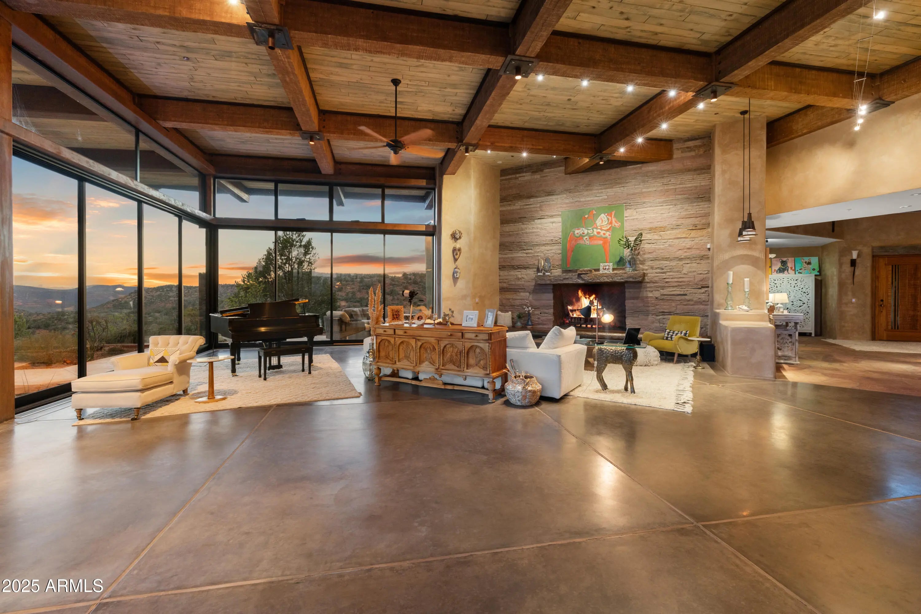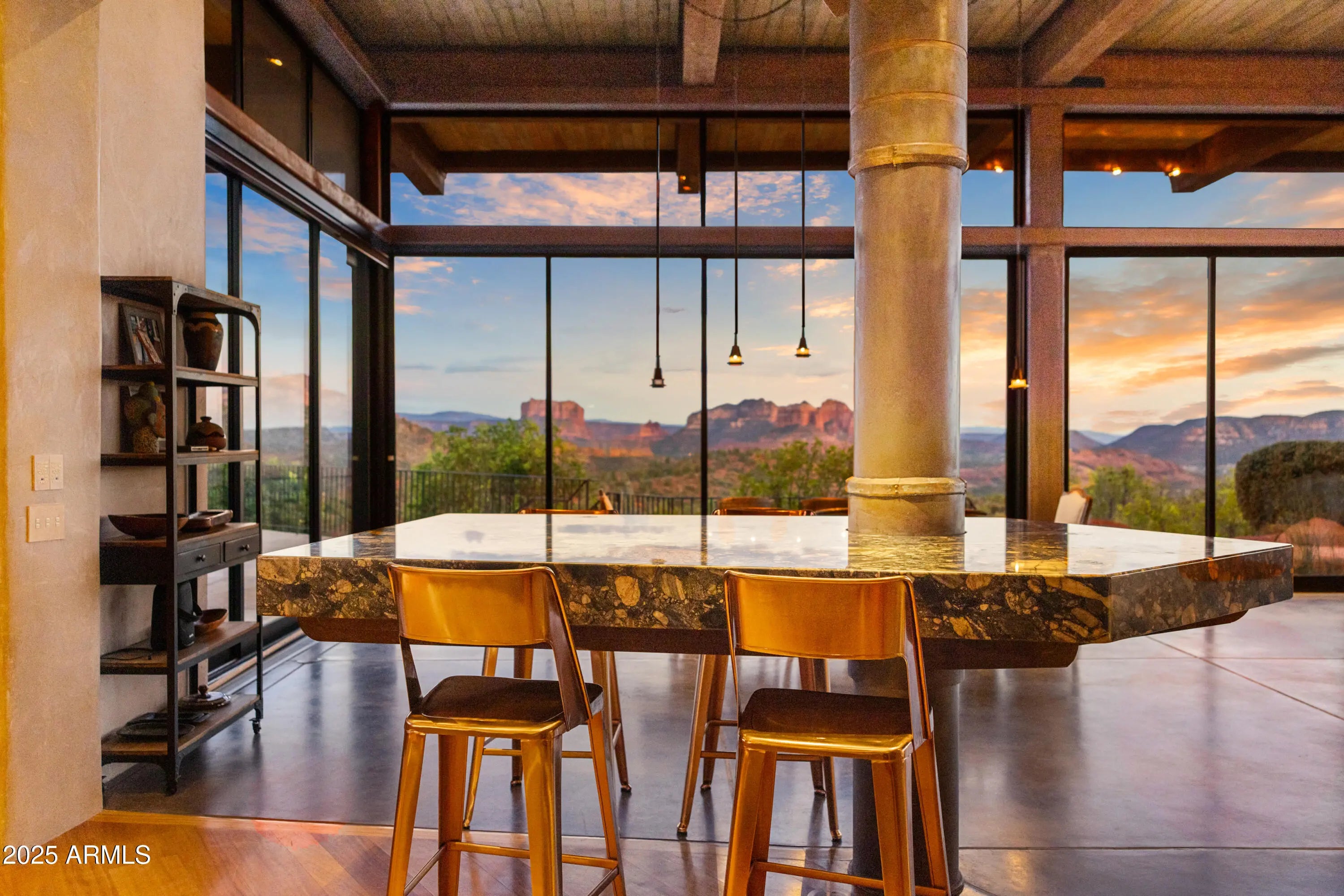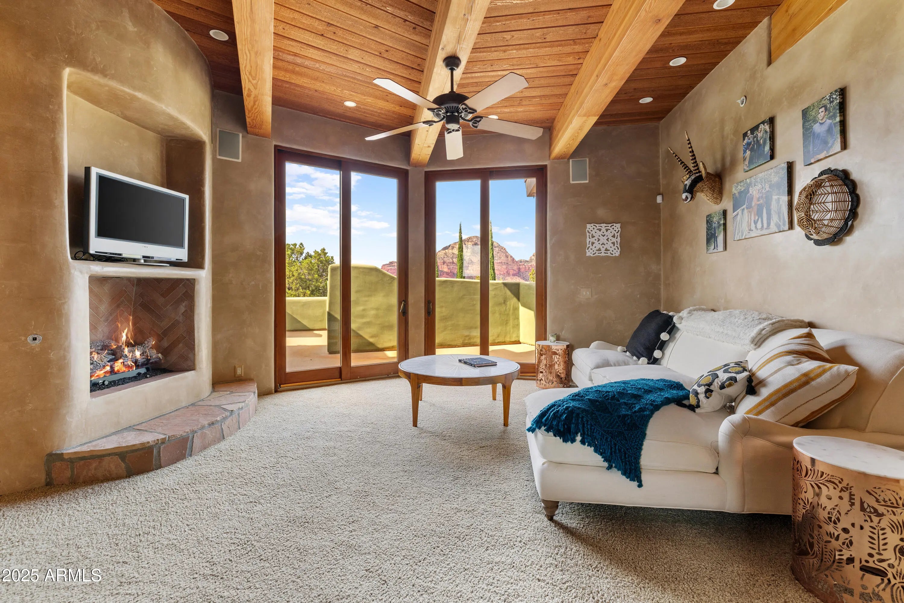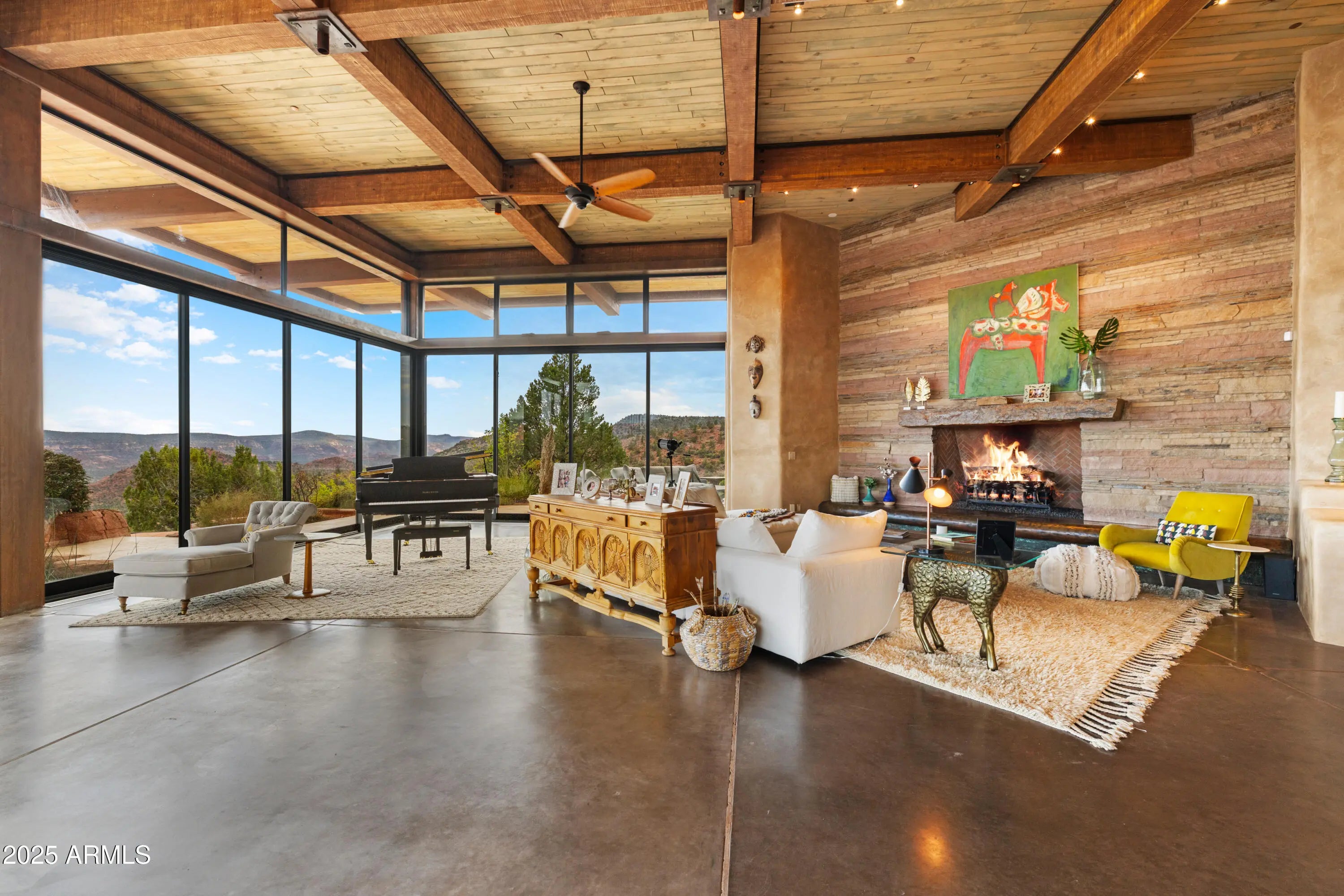 Sedona's Pinnacle of Privacy & Panoramic Beauty: Perched high in one of Sedona's most exclusive gated communities, this Santa Fe styled masterpiece is surrounded by acres of National Forest and offers a level of privacy often sought by those looking to escape. From sunrise to starlight, unobstructed red rock panoramas create a backdrop unlike anywhere else. Perfect for intimate living, yet designed for unforgettable entertaining, the home features a seamless indoor-outdoor flow with disappearing glass walls, multiple fireplaces, expansive view decks, and a resort-style pool with waterfall. The gourmet chef's kitchen, wet bar, and formal dining space make hosting effortless, while the main-level primary suite offers its own sanctuary with spa bath, gym, and private patio. Upstairs, two guest suites enjoy private elevator access and their own view terraces. Additional highlights include a dedicated office or fourth bedroom, an oversized steam shower, artisan details inspired by Native American pueblo architecture, and an extended 3-car garage for extra cars or room for your hobbies. In a location second to none, this is more than a home, it's a Sedona experience of unmatched beauty and tranquility.