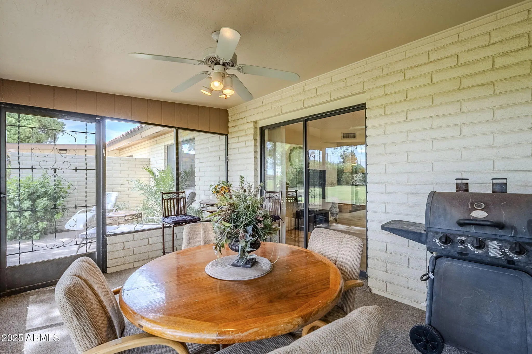 Enjoy condo living at its best in this fully furnished 2 bedroom, 2-bathroom end-unit condo, perfectly designed for those seeking sunshine, serenity, and an active lifestyle. Just bring your toothbrush and start enjoying the lifestyle. The condo offers multiple living areas, both front and back, allowing you to soak in views in every direction. The bright and inviting front living room with a dining area included provides mountain and pond views. The comfortable and spacious back family room opens to a screened patio overlooking the golf course with an additional uncovered patio area to extend your outdoor enjoyment. The split bedroom floor plan offers privacy, with a spacious primary suite overlooking the golf course, complete with a walk-in closet and a private ensuite bathroom. On the On the opposite side of the home, the generous guest bedroom is conveniently located near the guest bathroom, which includes a tub/shower combination. The interior laundry room is conveniently located off the kitchen and provides direct access to the single-car garage. This is low-maintenance, high-reward livingideal for seasonal residents who want to enjoy Arizona's best weather in comfort and style. This vibrant neighborhood is known for its lively, active lifestyle and offers something for everyone to enjoy. Centrally located in the heart of the community with easy access to all the fantastic amenities Sunland Village East has to offer!