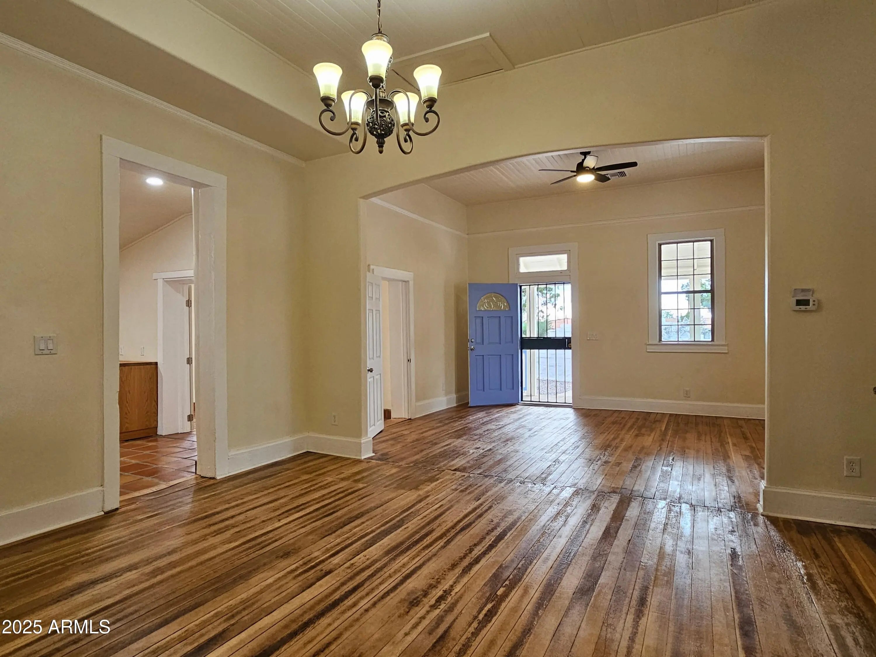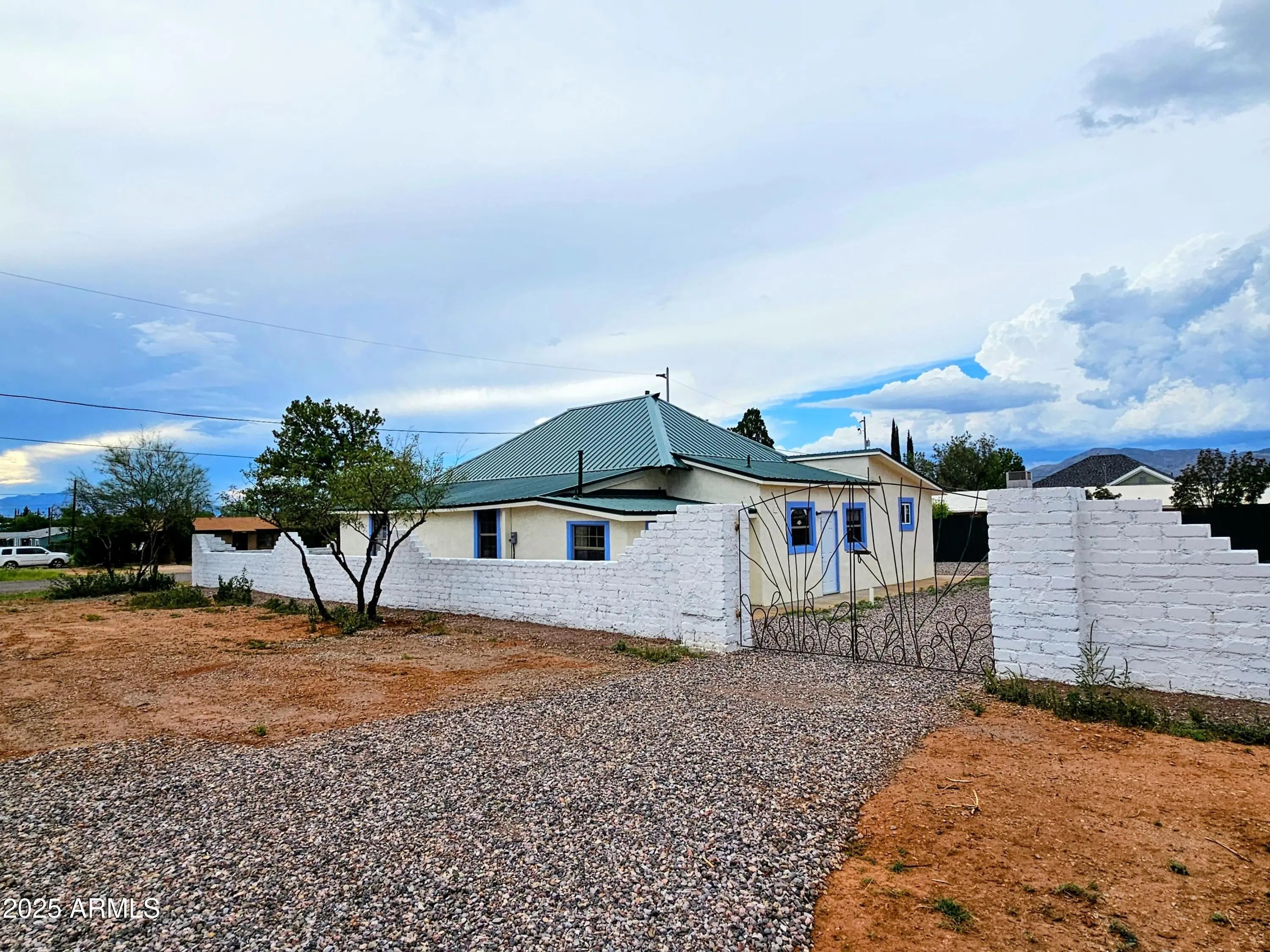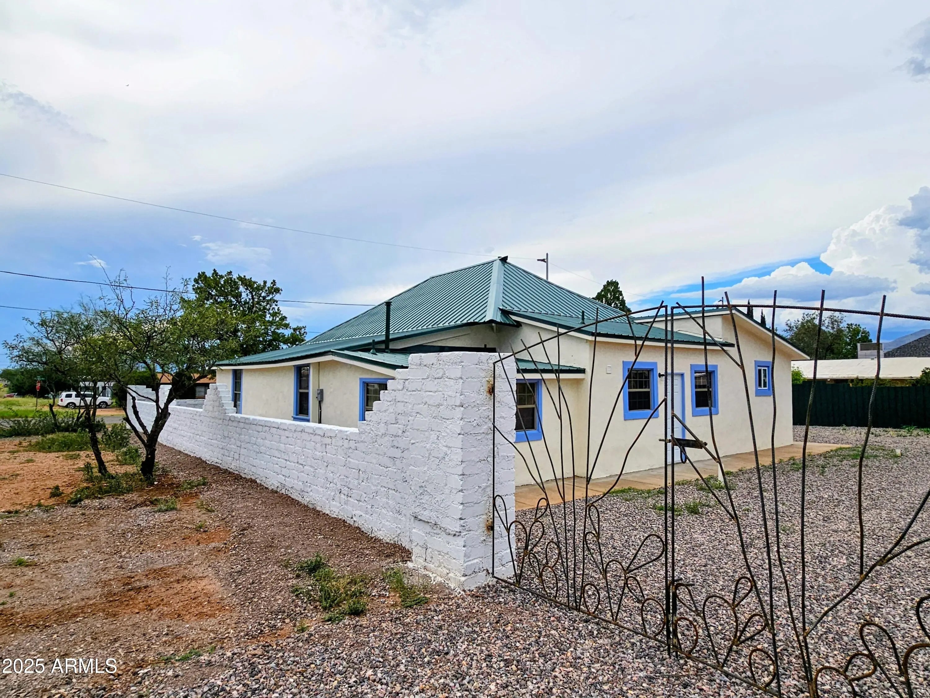 Historic Adobe 1,501 sq ft, Three Bedroom/Two Bath, Completely Renovated, Updated and Restored in 2025, on .27 Acre Corner Lot. With New Metal Roof, All New Appliances, Fixtures, Electrical, Plumbing, Central Heating and AC, Dual Pane Windows, Refinished Original Douglas Fir Flooring and Original Beadboard 11' Ceilings, Authentic Saltillo Tiling, and Completely Remodeled Kitchen and Bathrooms. New Over Height Carport and Custom RV Gates, Vast Back Yard, completely surrounded by Adobe Block Wall.