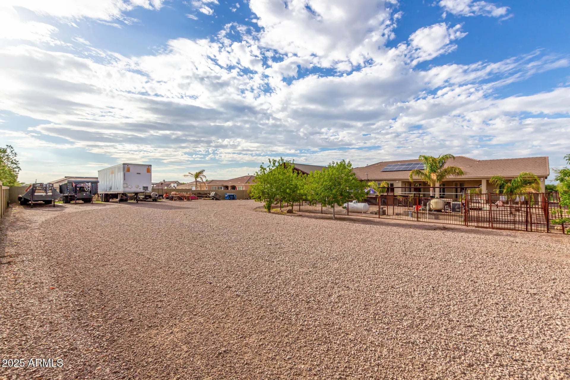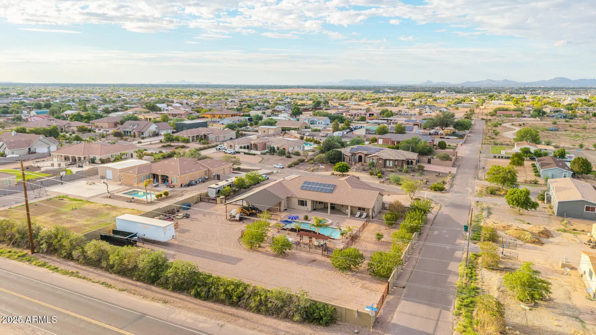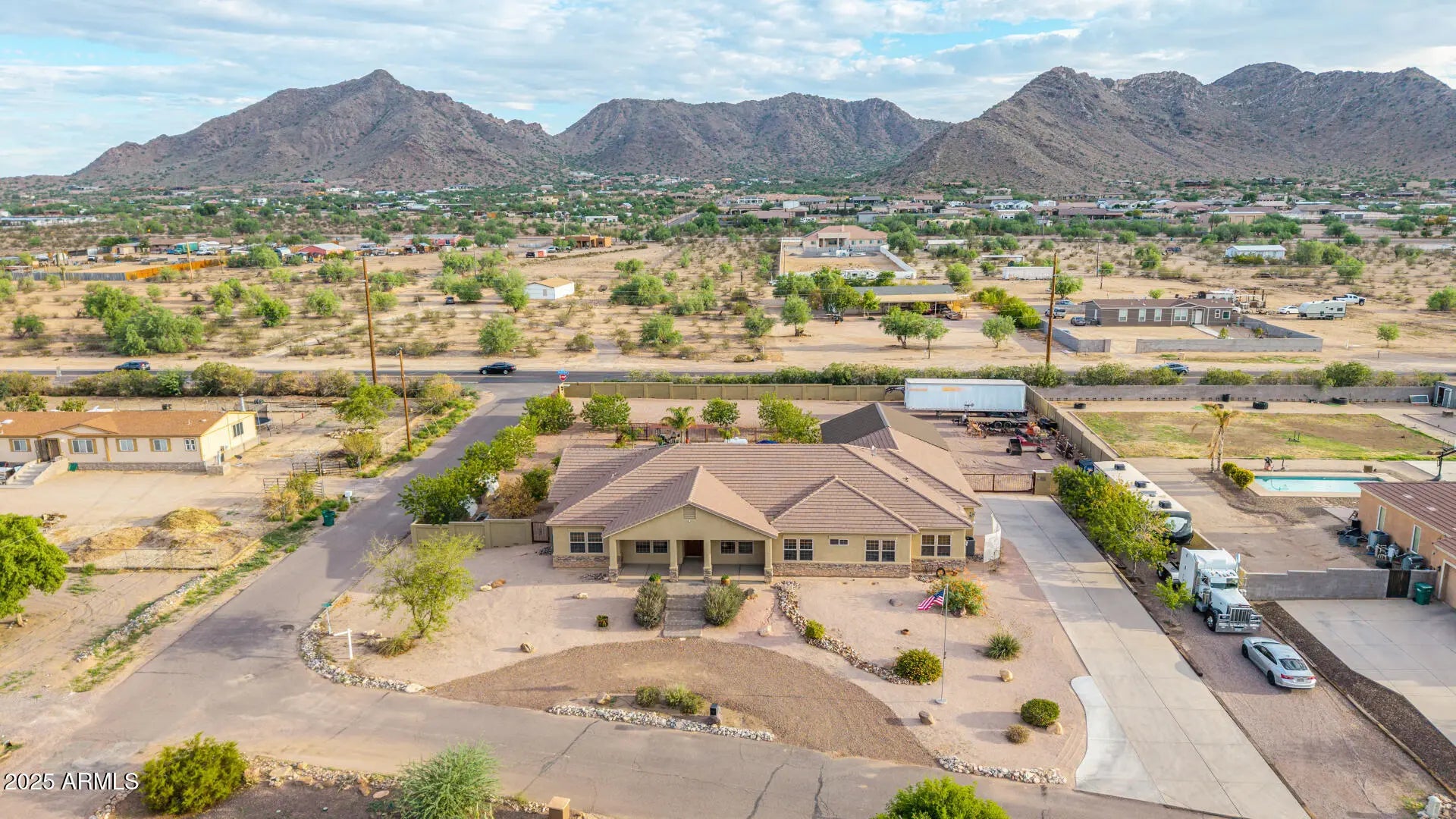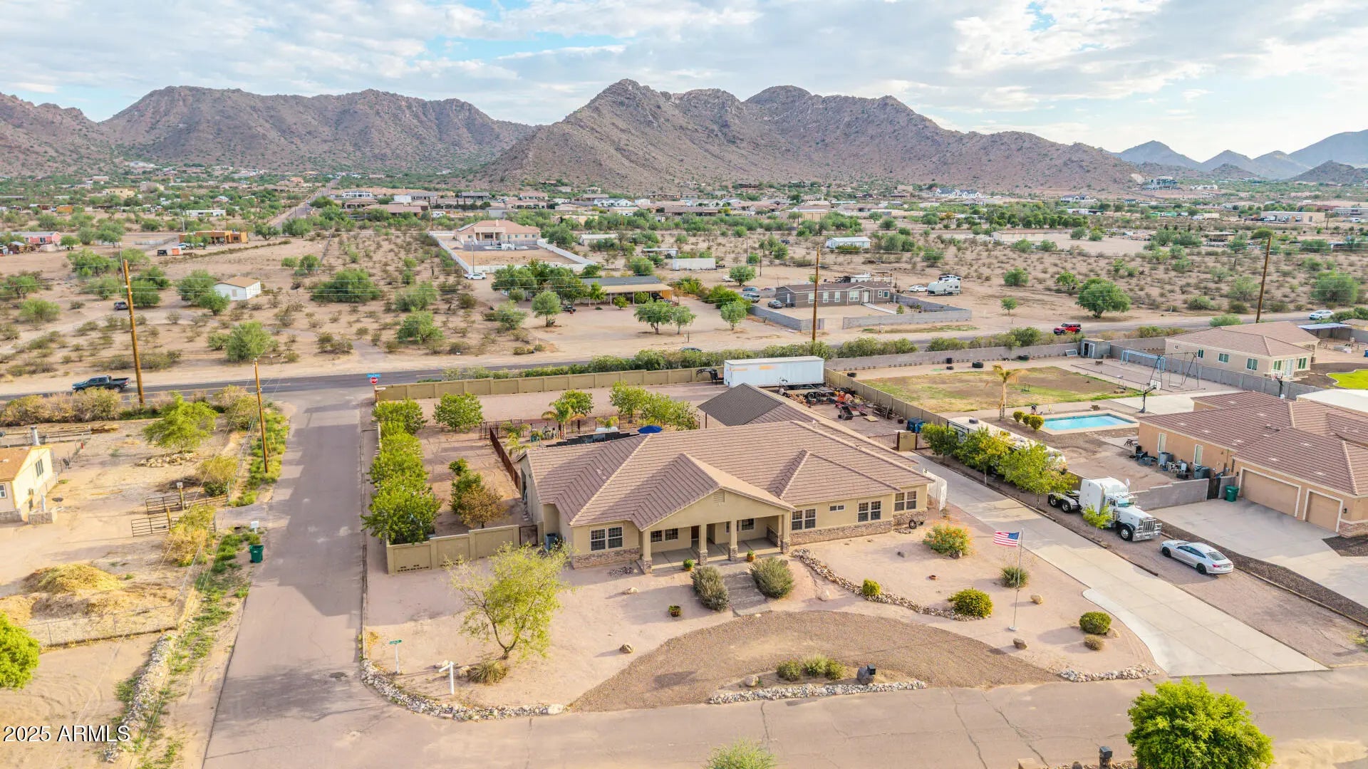 Stunning Single Story 5-Bedroom Queen Creek Home on just over an Acre, corner lot with pool, solar, NO HOA, & More! Welcome to your dream retreat at 20533 E Navajo Dr, where comfort meets functionality in this beautifully upgraded horse property located on a desirable corner lot in Queen Creek! This spacious 5-bedroom, 2.5-bathroom, 3 1/2 car garage, home offers the perfect blend of charm and modern amenities. Inside, you'll be greeted by an open, light-filled layout with tile and wood-look flooring, new carpet throughout, a floor-to-ceiling stone fireplace in the family room, and a warm, neutral color palette throughout, 2 new HVAC units installed in 2019, & new water heater in 2025. he chef's kitchen is a true highlightfeaturing granite countertops, ample cabinetry, a walk-in pantry, center island with breakfast bar, and built-in appliances for a seamless cooking experience. The primary suite is a peaceful retreat with double doors, his and her walk-in closets, and a spa-inspired bathroom with dual vanities. Looking for more space? A generous den provides the perfect spot for a home office, creative studio, or playroom. Step outside to your private backyard oasiscomplete with a covered patio, 20'x40' saltwater pool with built-in hot tub, a 30x30 shade structure, raised garden beds, and ample seating areas ideal for entertaining or enjoying the Arizona sunshine. With RV gates, there's plenty of room for your toys, trailers, or recreational vehicles with 2 separate entries/exit. This home truly has it all the space, privacy, energy efficiency, and luxury outdoor livingall nestled in a prime Queen Creek location. No HOA, RV Parking, Horse Property, and sitting on just over 1 full acre.