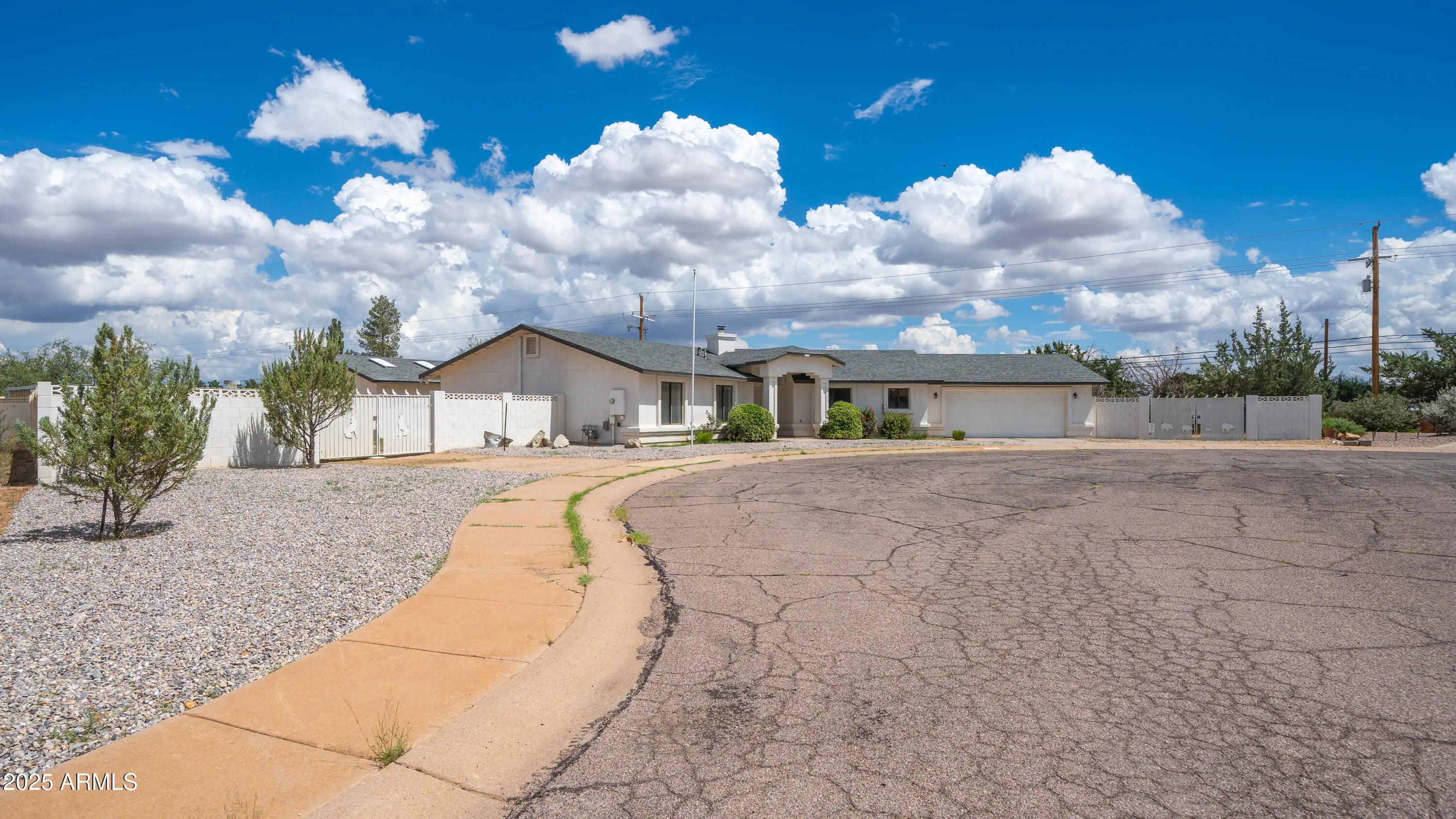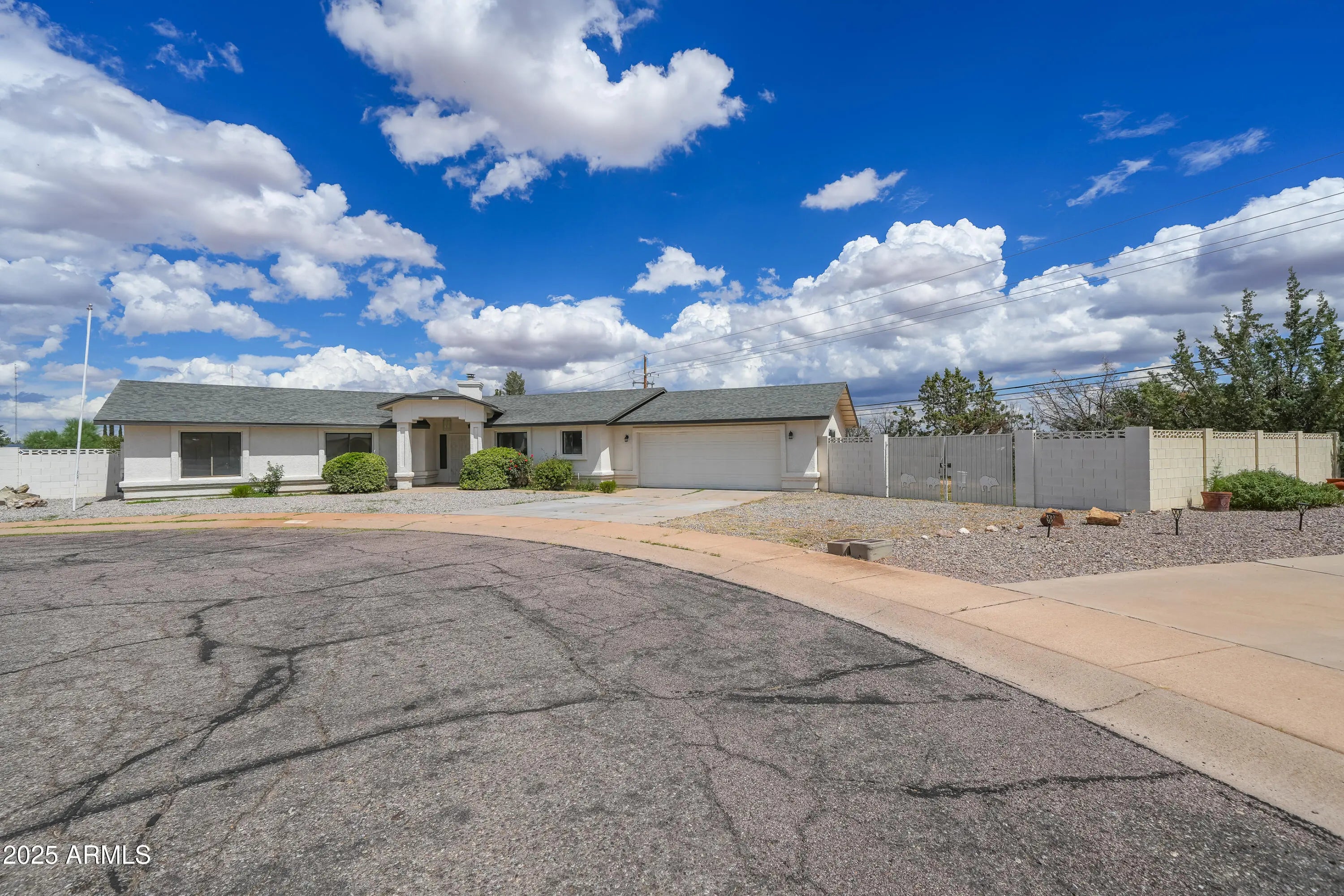 Discover this 3-bedroom home with a den and bonus room, freshly updated with new paint and flooring. The spacious layout offers bright living areas and room to grow. A large attached 2-car garage is complemented by an oversized detached shop with its own garage door—perfect for projects, storage, or a home gym. Two drive gates add flexibility for extra parking, including plenty of space for RV parking. Set on a generous lot in a quiet cul-de-sac, yet still close to shopping, dining, and amenities, this property blends comfort, function, and convenience in the heart of Sierra Vista.