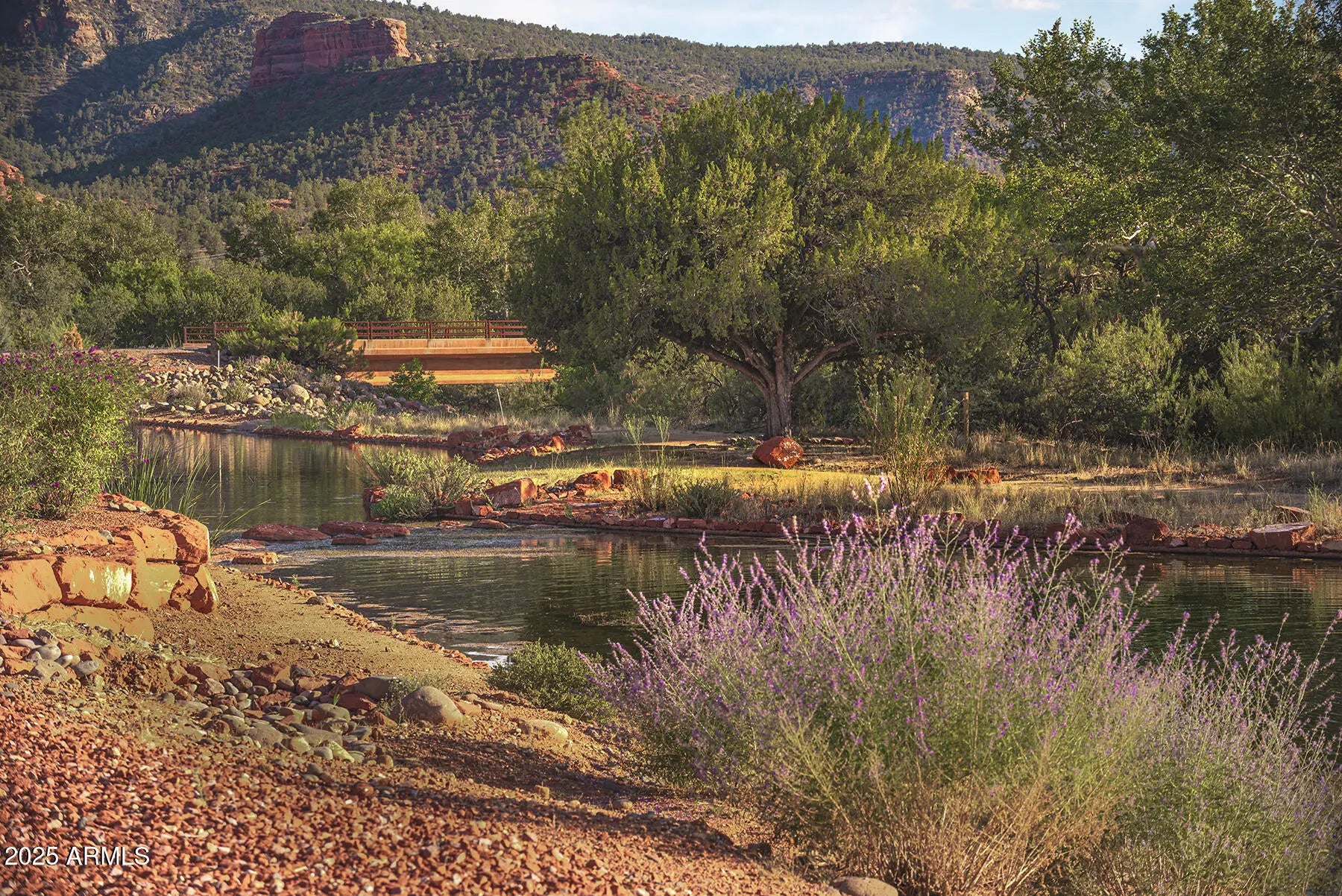 Tucked within a gated, upscale community, this rare Sedona Ranch Contemporary offers a one-of-a-kind setting on 1.5 acres, uniquely positioned for convenient access to both the Village of Oak Creek and West Sedona. Built in 2020 and gently lived in, the home feels like new while offering timeless modern design. The residence features 3 bedrooms plus a den (easily used as a 4th bedroom), along with a spacious 3-car garage. An open floor plan frames expansive views of the HOA-managed pond complete with irrigation rights and mature trees bordering Oak Creek. Inside, sleek contemporary finishes are paired with warm natural elements to create inviting yet sophisticated living spaces. The primary suite offers a spa-inspired bath and direct outdoor access, while the entertainer entertainer's kitchen is equipped with premium appliances, custom cabinetry, and a large island. Oversized windows and sliders seamlessly connect indoor and outdoor living, perfect for enjoying Sedona's red rock skies and tranquil water views. Custom interior designer furnishings are also available by separate agreement, allowing this home to be enjoyed fully turnkey. A rare combination of location, privacy, and design, this property offers Sedona living at its finest.