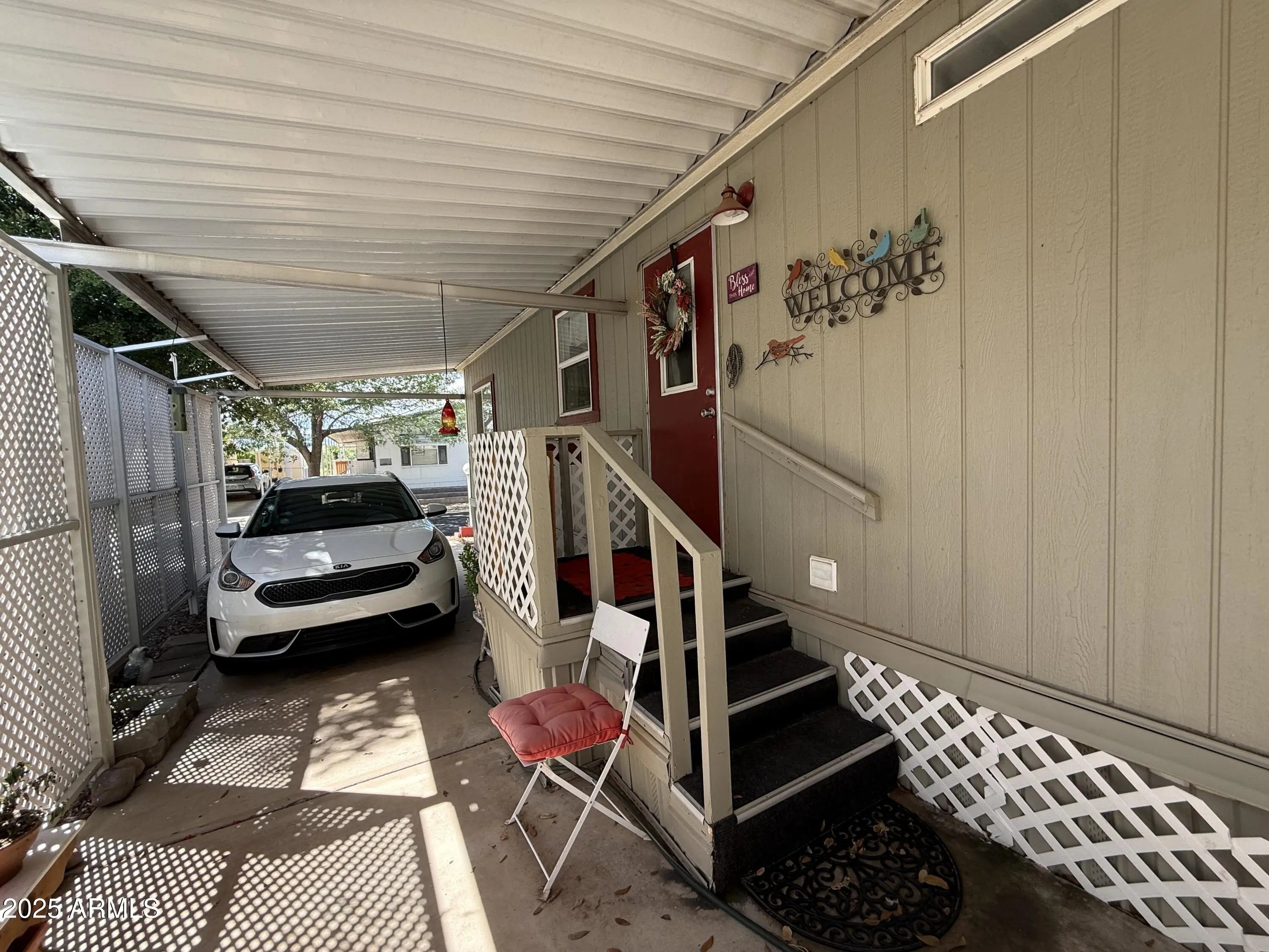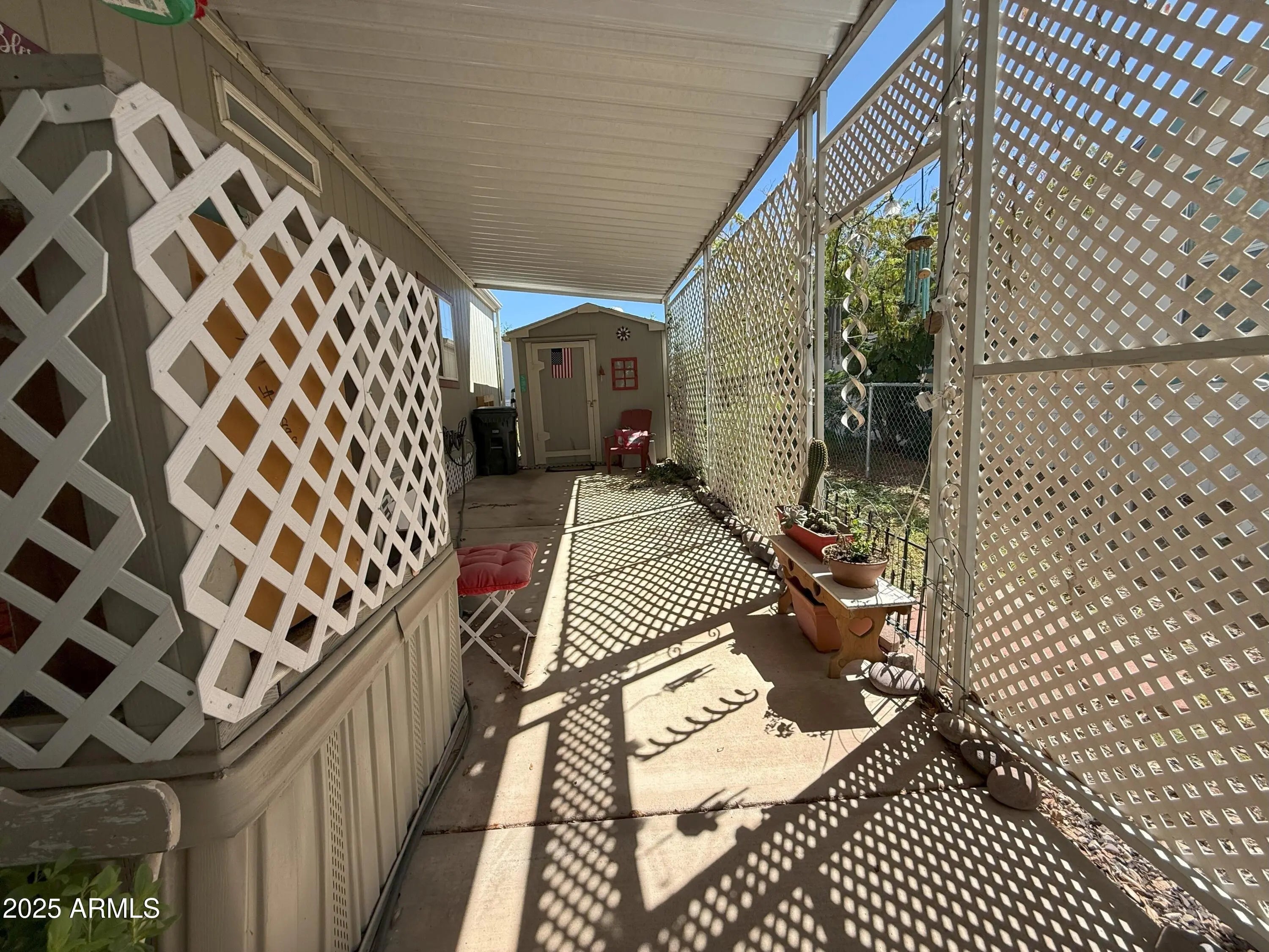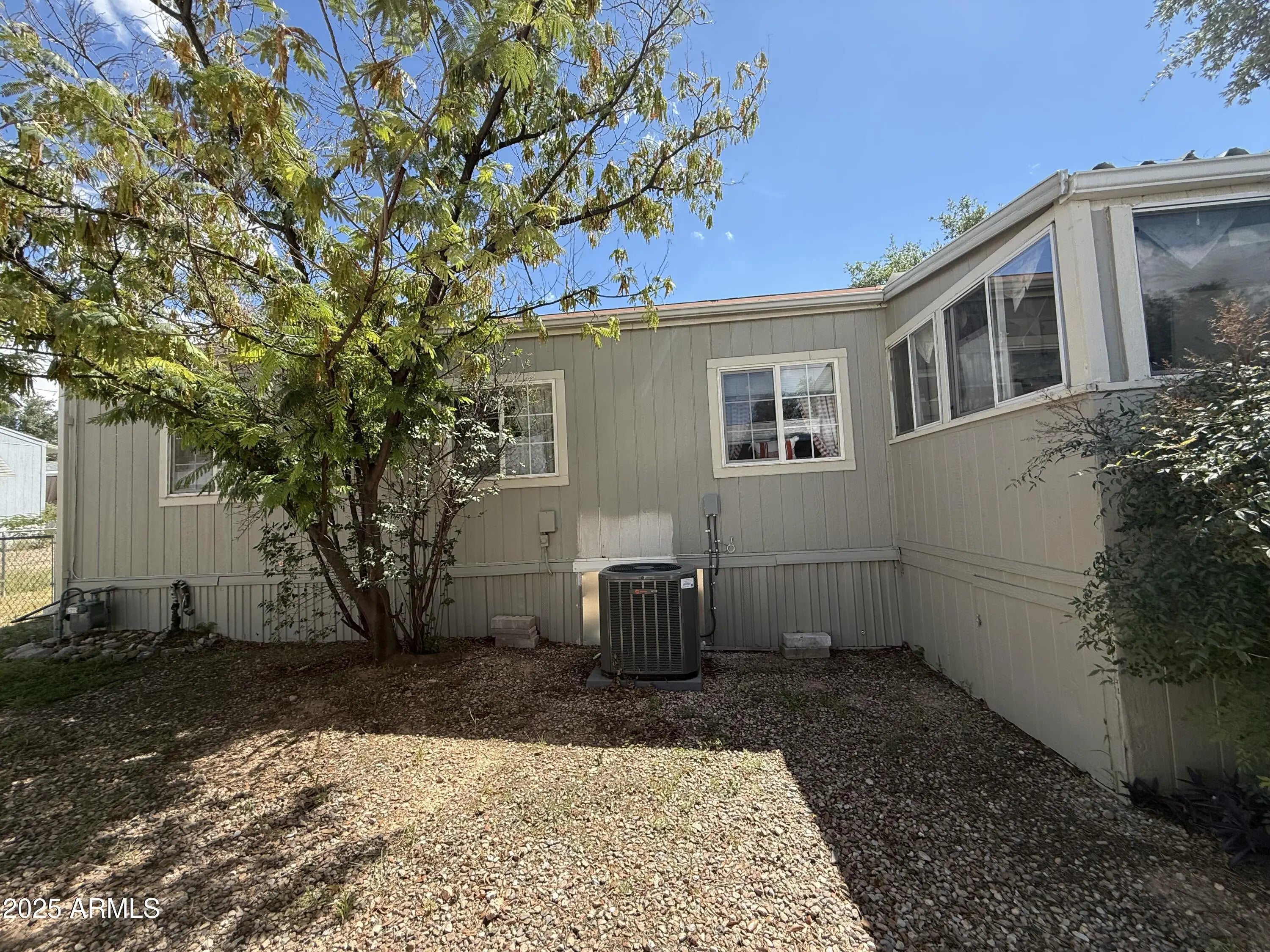 House is well maintained and decorated inside, 2 bedrooms, 2 bathrooms, plus a den, breakfast bar, Arizona room for extra space, dishwasher, garbage disposal, gas stove, new refrigerator, ceiling fans, large closet in primary bedroom, pleated blinds on most windows, garden tub in primary bathroom, lots of storage throughout home, fenced backyard with chain link fence, storage shed, 2 car carport, central a/c. See for yourself.