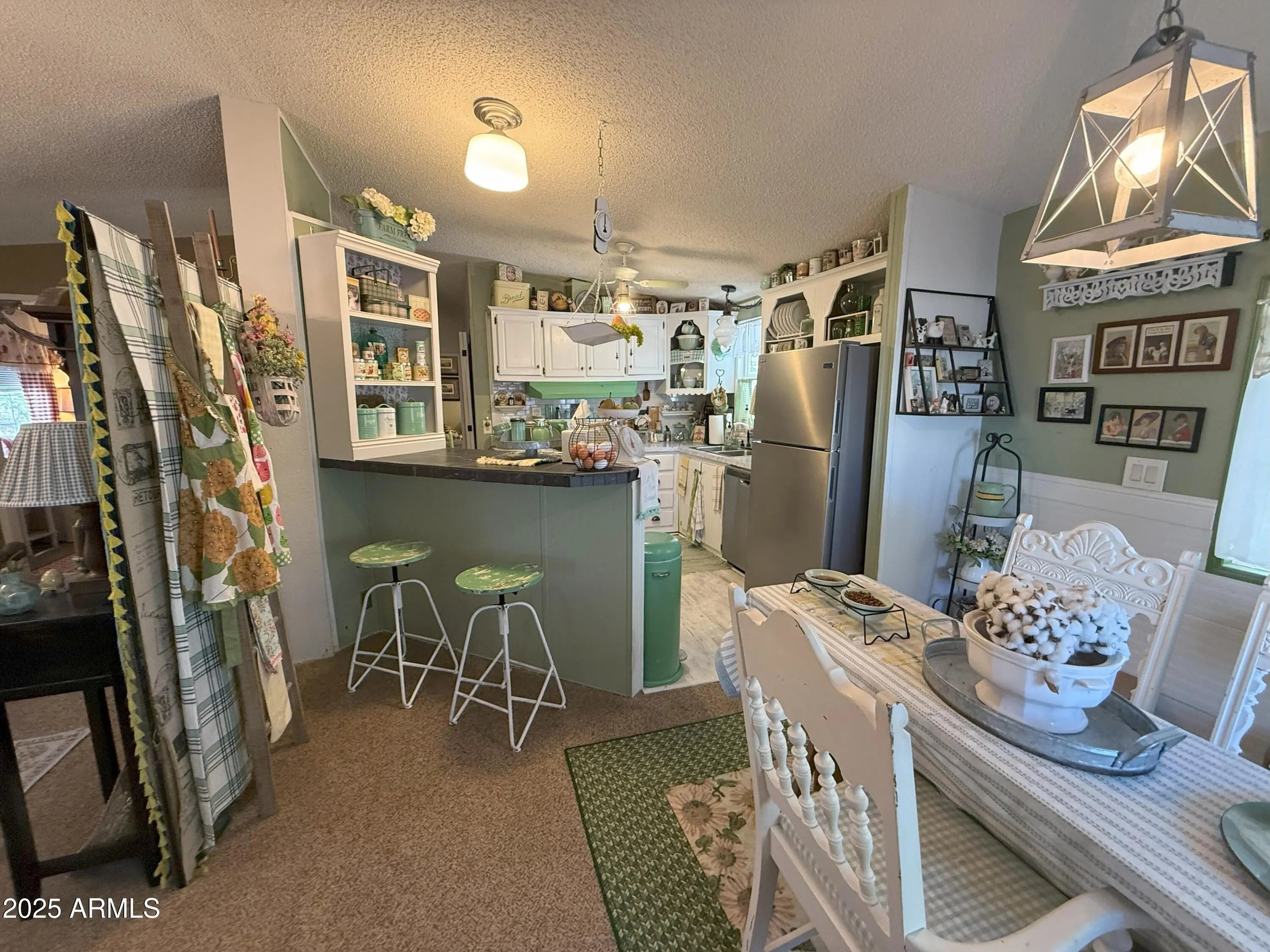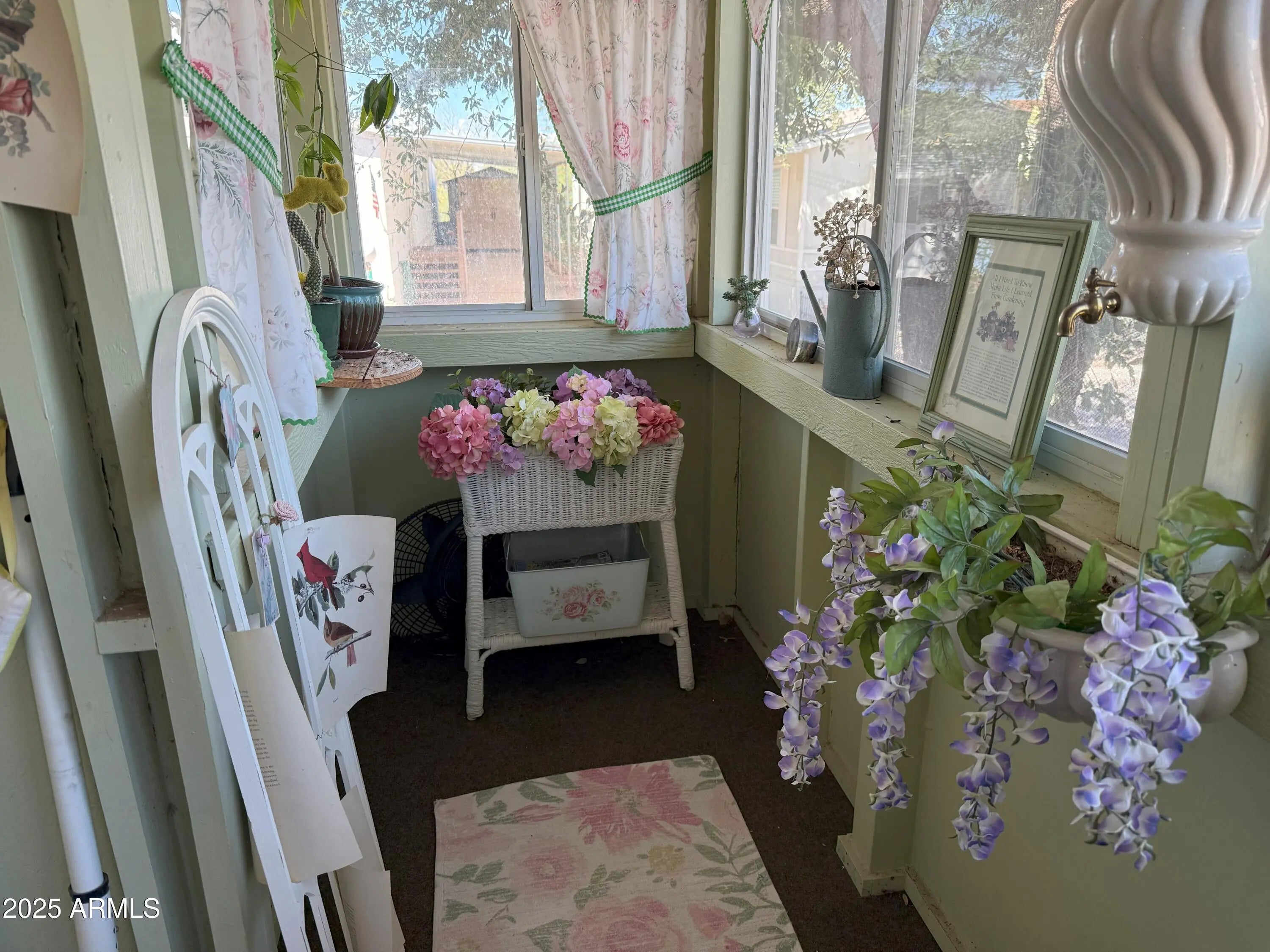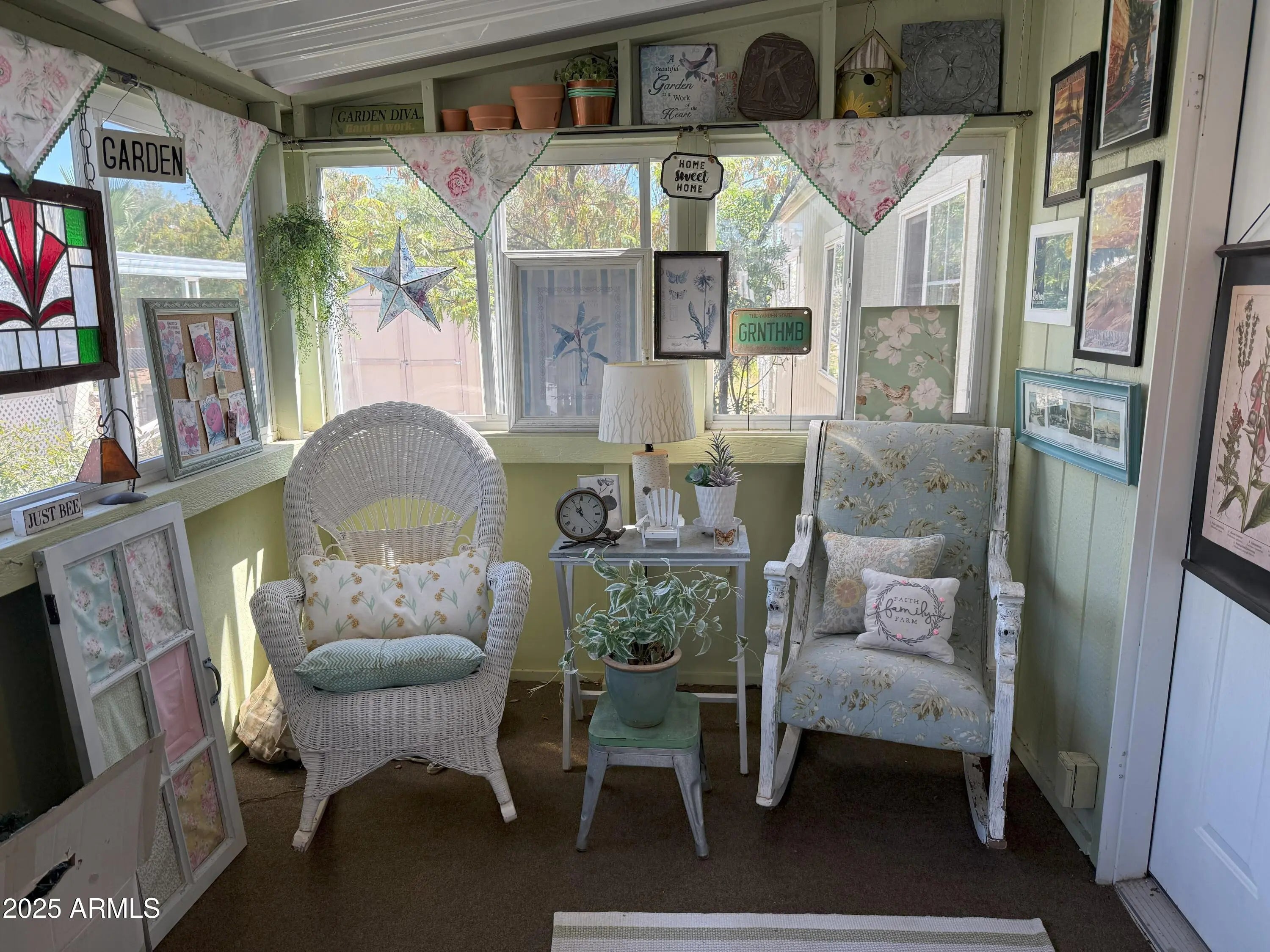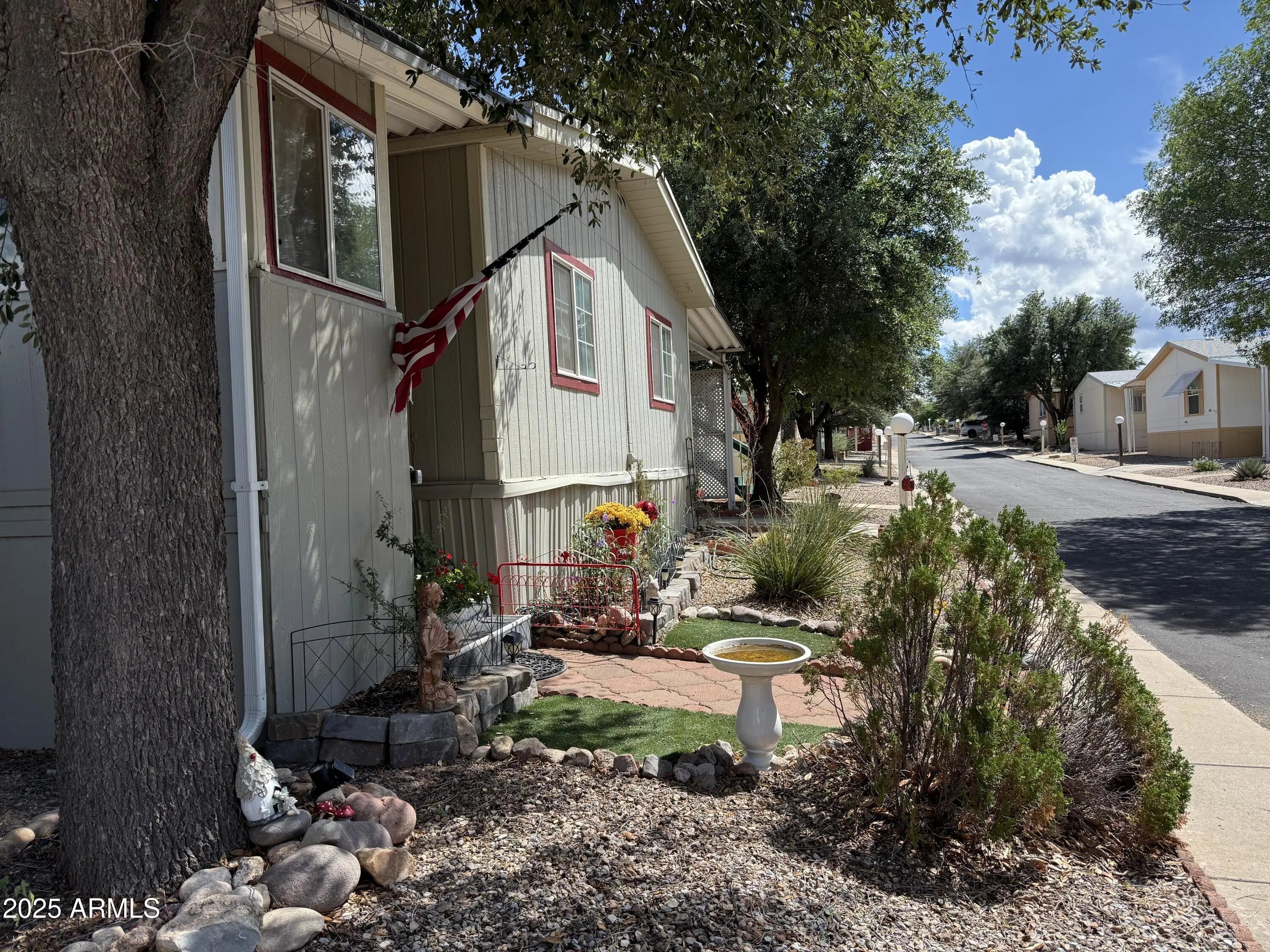 House is well maintained and decorated inside, 2 bedrooms, 2 bathrooms, plus a den, breakfast bar, Arizona room for extra space, dishwasher, garbage disposal, gas stove, new refrigerator, ceiling fans, large closet in primary bedroom, pleated blinds on most windows, garden tub in primary bathroom, lots of storage throughout home, fenced backyard with chain link fence, storage shed, 2 car carport, central a/c. See for yourself.