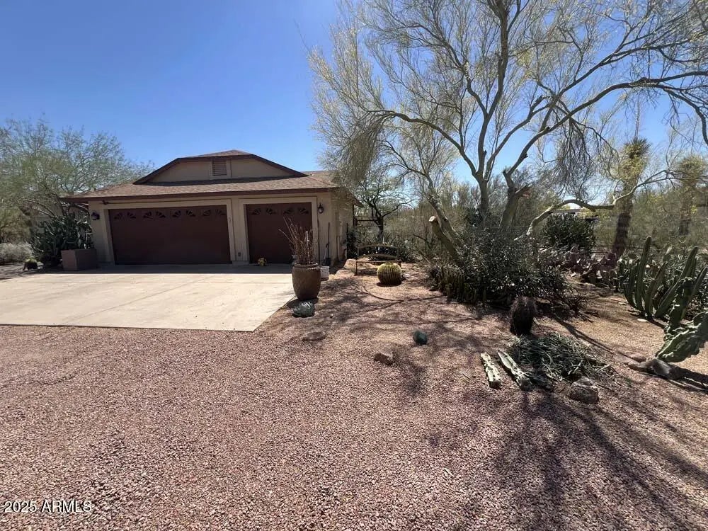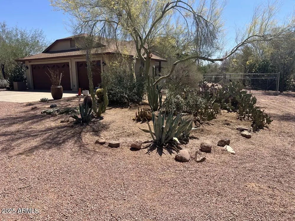 LOCATION, LOCATION and AMAZING POTENTIAL. [See semi-private remarks]. A great opportunity to put your own updates on this well-located 1 ACRE property in a custom home community. NO HOA. Buyer to verify all details relating to property. The home is a single story with a 3-car garage [ 220 volt circuit in garage.] Lots of parking. Professionally Appraised 2025 to determine price...thus is priced to allow for a remodeling costs. The huge rear gravel yard has an approximately 1100 sq. ft. multipurpose building measuring 38' x 29' with two access doors. Owner used it for a woodworking shop but uses are endless. Great opportunity to get into this community. NOTE: 4-ONE ACRE LOTS AT THE END OF THIS STREET ARE BEING BUILT/PRICES START AT $1.8 MILLION.