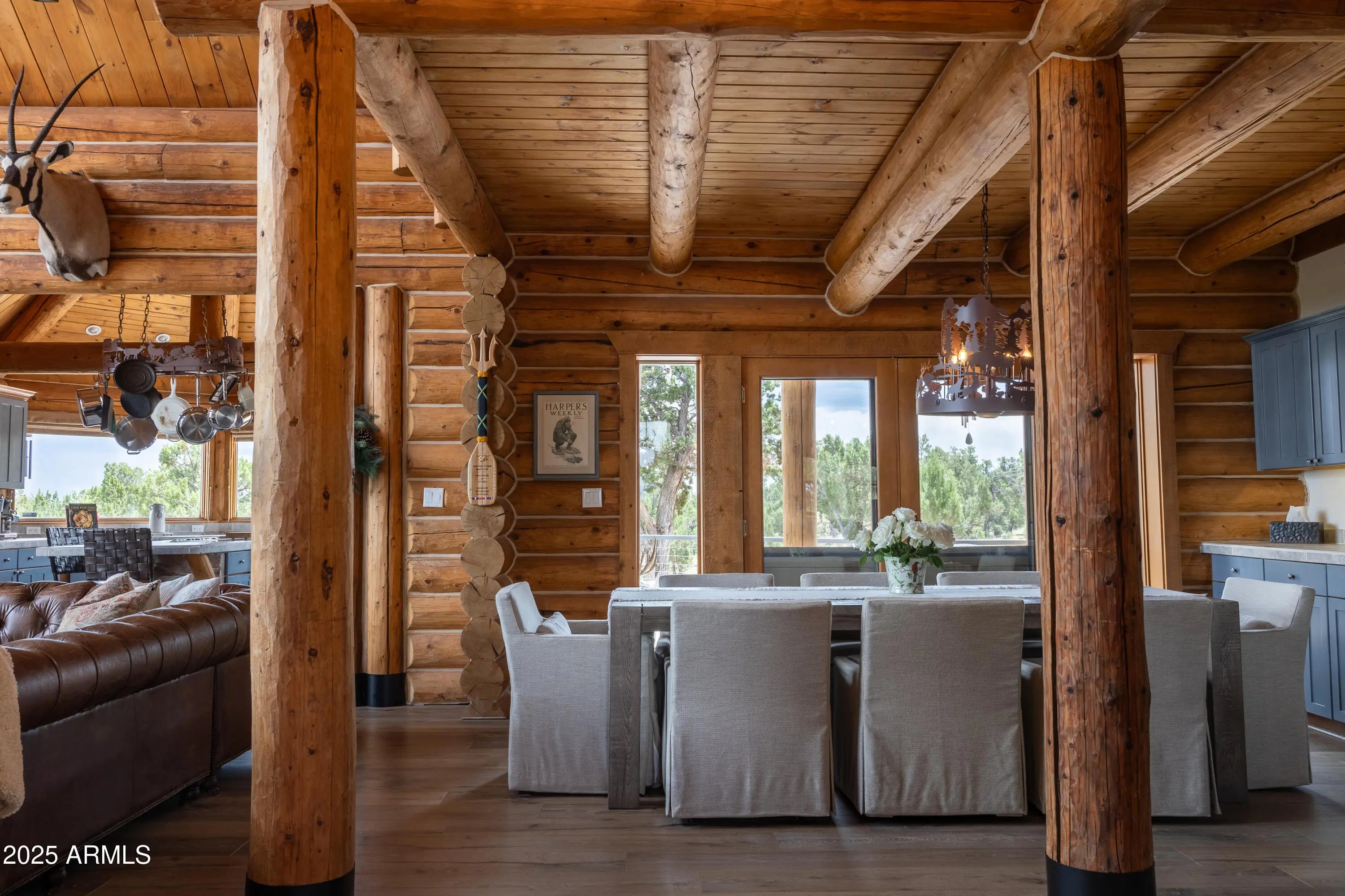 Discover this stunning custom wood log cabin, perfectly blending rustic charm with modern upgrades, set on 10 serene acres that back directly to national forest land. Ideal for outdoor lovers and hunters alike, this property borders a 5A premier elk draw—an exceptional and rare find. The 3-bedroom, 3-full-bath cabin has been beautifully updated with new wood flooring, premium Café appliances, and upgraded 220 electric service routed to the kitchen. Foam insulation has been added for enhanced energy efficiency and year-round comfortThe exterior has been thoughtfully upgraded with all-new decks rebuilt using new joists, glue-lam beams, and durable synthetic planking with a 20-year warranty. The cabin also features a new concrete driveway entrance pad and patio approach Professionally decorated with high-end Restoration Hardware and Pottery Barn furnishings, this custom log cabin offers a turn-key opportunity for luxurious mountain living. Every space has been thoughtfully curated to complement the rustic elegance of the home, and all furnishings convey with a few owner exclusions , making it easy to move right in and start enjoying your retreat in style.