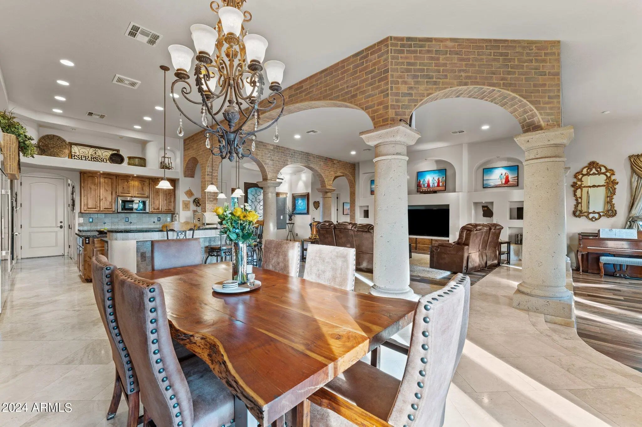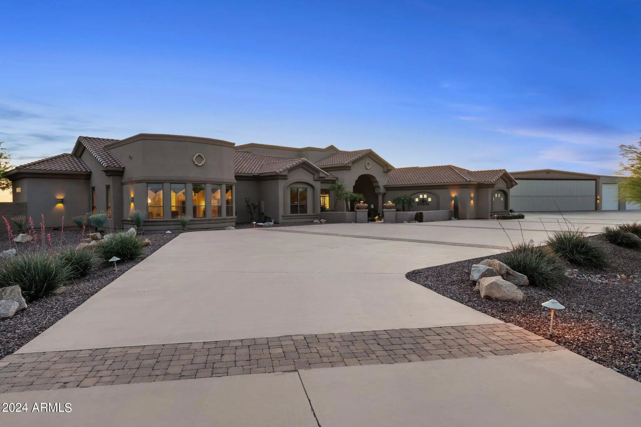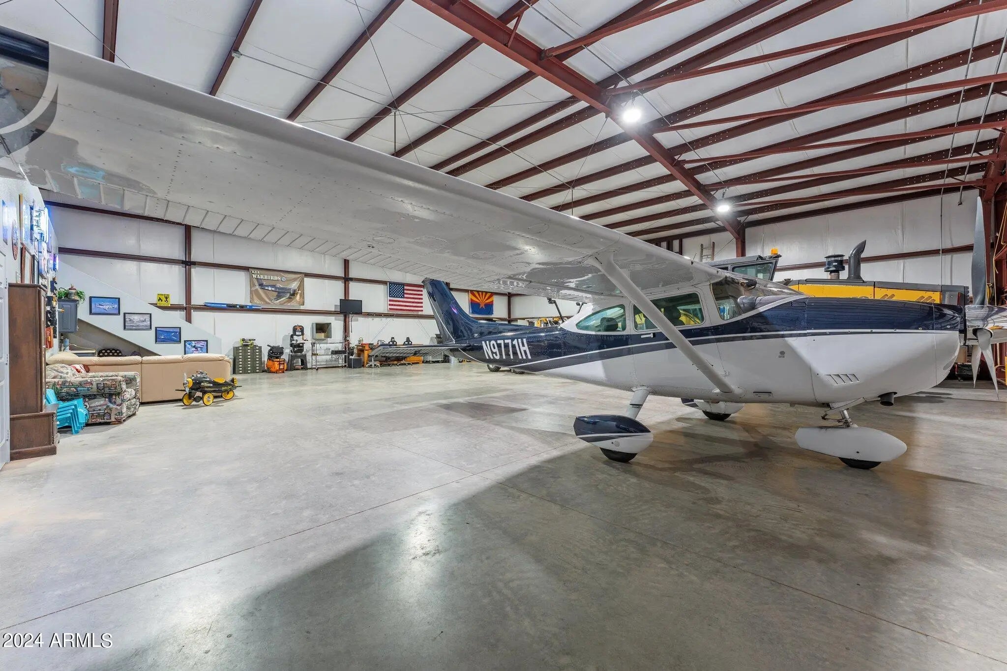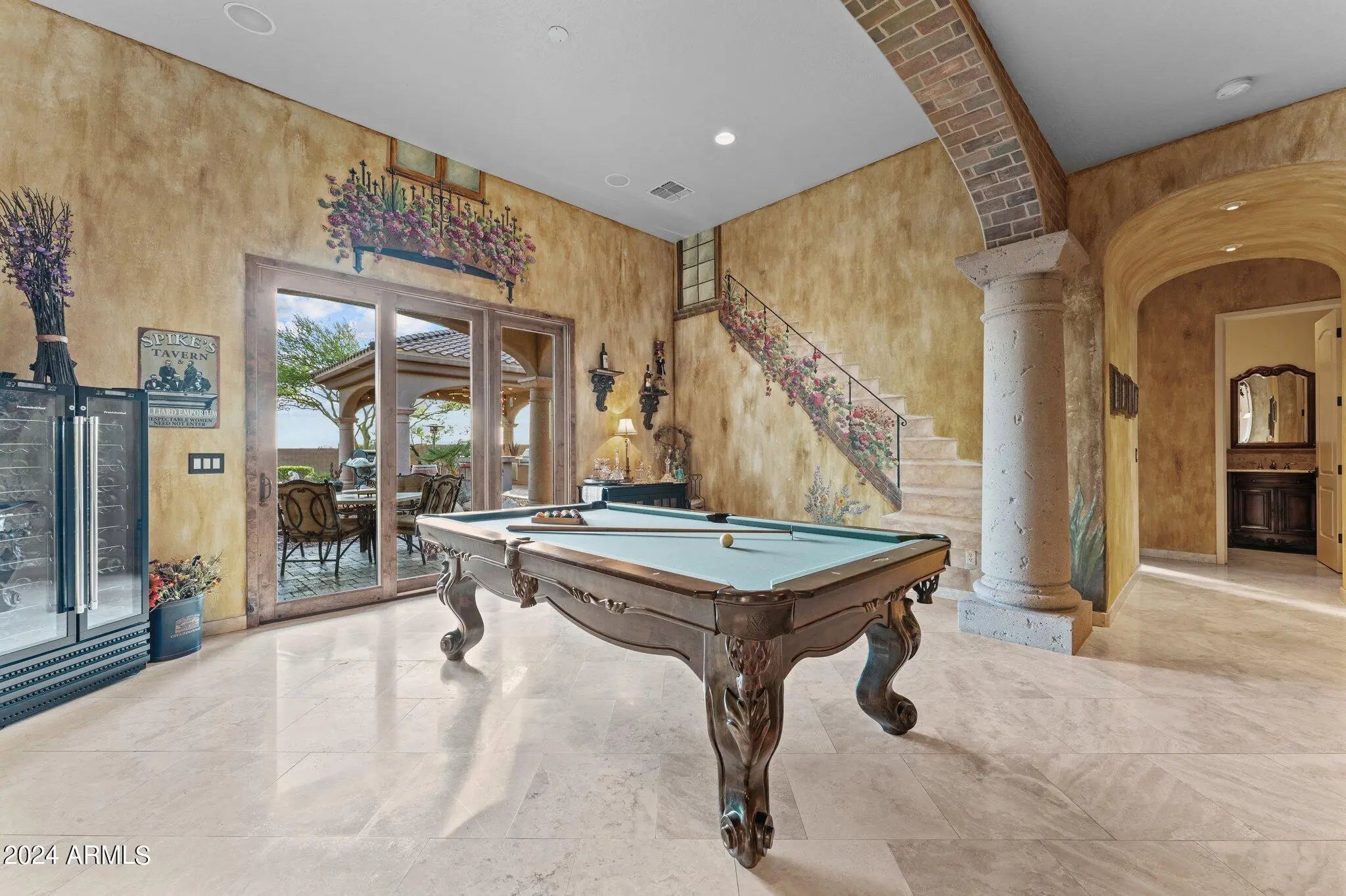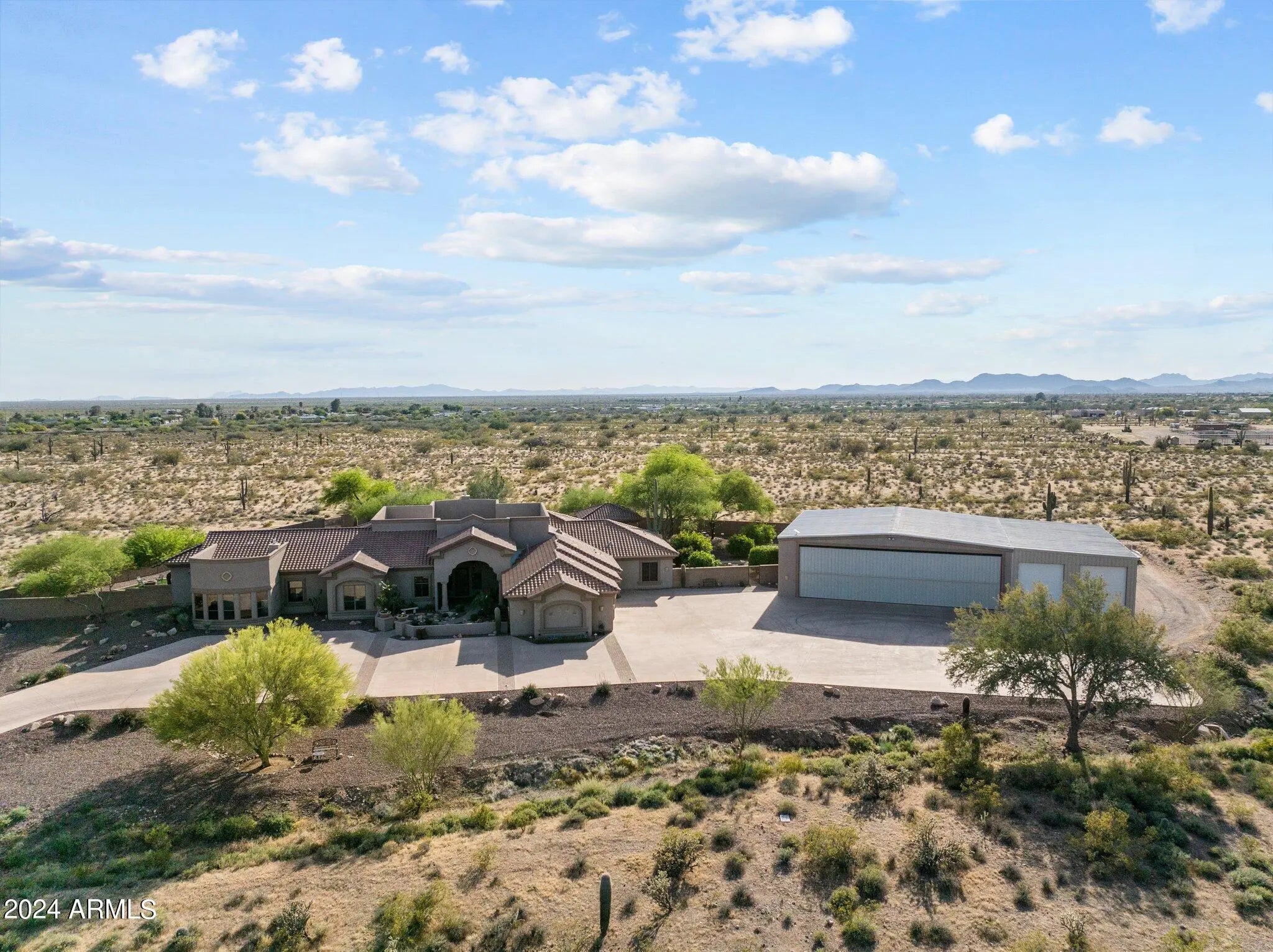 Set on 5 acres within a private airpark, this Tuscan-style estate blends timeless architecture with the kind of amenities most people only experience on vacation. With 5 bedrooms and 4.5 bathrooms, the home is designed for both elegance and ease. Sunlight pours into open living spaces, stone accents add warmth and texture, and the flow between rooms makes daily living feel effortless while still capturing the richness of Tuscan design. Step outside and the property transforms into your own private resort. A shimmering pool takes center stage, bordered by multiple lounge areas perfect for soaking in Arizona's endless skies. A full volleyball court invites spirited games with friends, while the outdoor kitchen turns meals into events, with space for everything from weekend barbecues to... sunset dinner parties. Shaded patios and breezeways extend the living experience outdoors, creating spaces where conversation lingers and evenings stretch long into the night. For aviators, the estate offers something truly rare - a private hangar with direct access to the airstrip. Imagine starting your day with the freedom to take off right from home. An oversized RV garage extends that same sense of possibility, with room for motorhomes, vehicles, collections, or creative pursuits. Just beyond the main estate, an additional 4.88-acre parcel is included. Separate from the airpark and free from HOA restrictions, it ensures privacy today and possibilities tomorrow. Whether envisioned as an equestrian setup, expansive workshops, or simply preserved as open land, it adds another layer of freedom to an already extraordinary property. This estate lives like a destination - a place where mornings begin with desert light, afternoons are spent in the pool, and evenings gather around the outdoor kitchen under a canopy of stars. It's not just a home, it's a lifestyle designed for those who expect every day to feel exceptional.