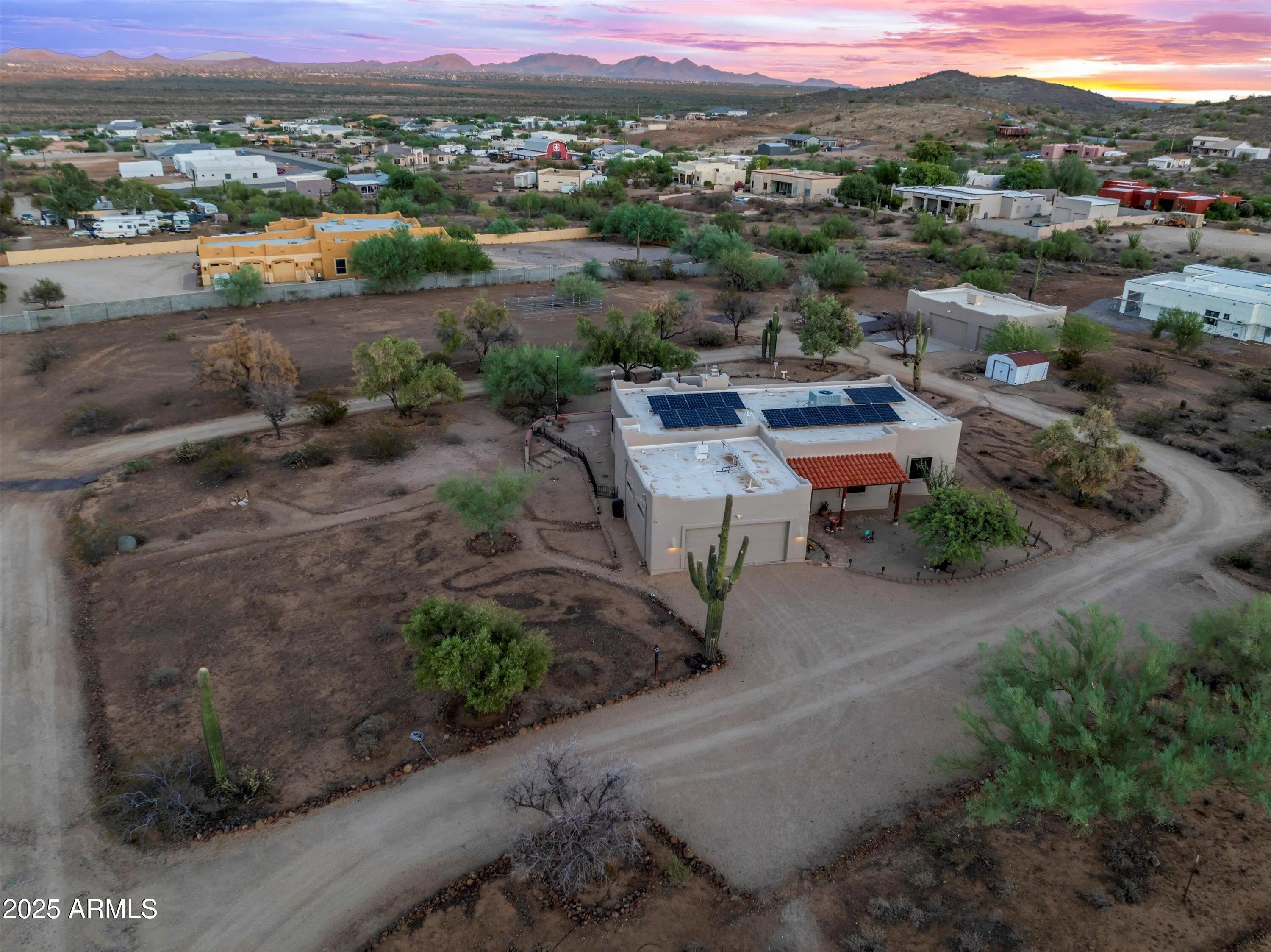 Bundled Home Sale Parcel MLS # 211-74-050B. Desert Hills home on city water with no HOA. This is the smaller of the two homes. This 3 bedroom 2 bath home has been recently replumbed, newer roof, water heater and water softener. Mountain & City views from the expansive patio. 2-car garage plus 3 car outbuilding with newer RV pad with electric & septic (2024). Located near the TSMC growth corridor, hiking trails & 11 miles from Lake Pleasant. This is a rare opportunity for multi-gen living, investment, or expansion. Bundle sale with 33449 N 10th additional 1.15 Acres w/4 bd 2 bath house, connected 2 car garage & separate 2 car workshop/garage with cabinets. Roof has a 50 year transferrable warranty. Property is zoned for horses.
