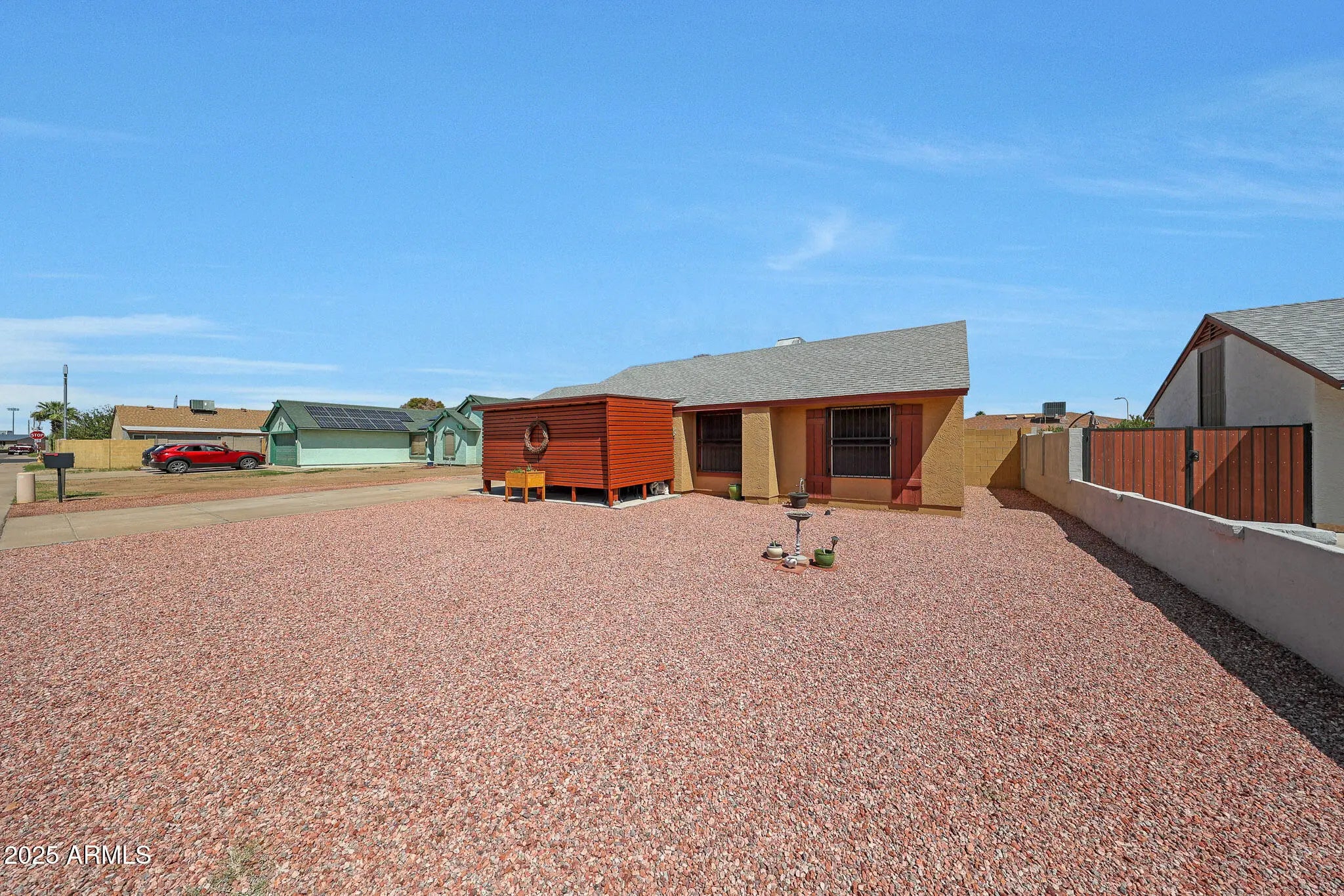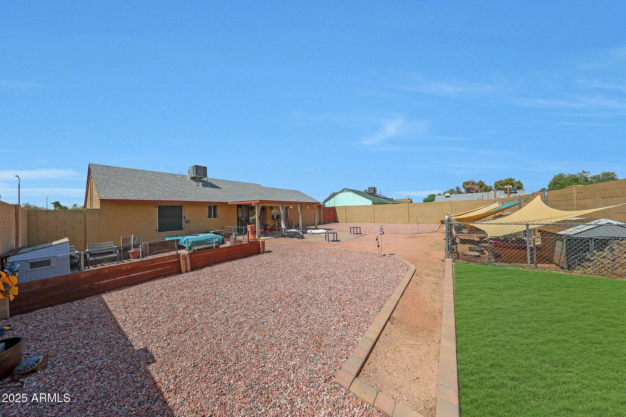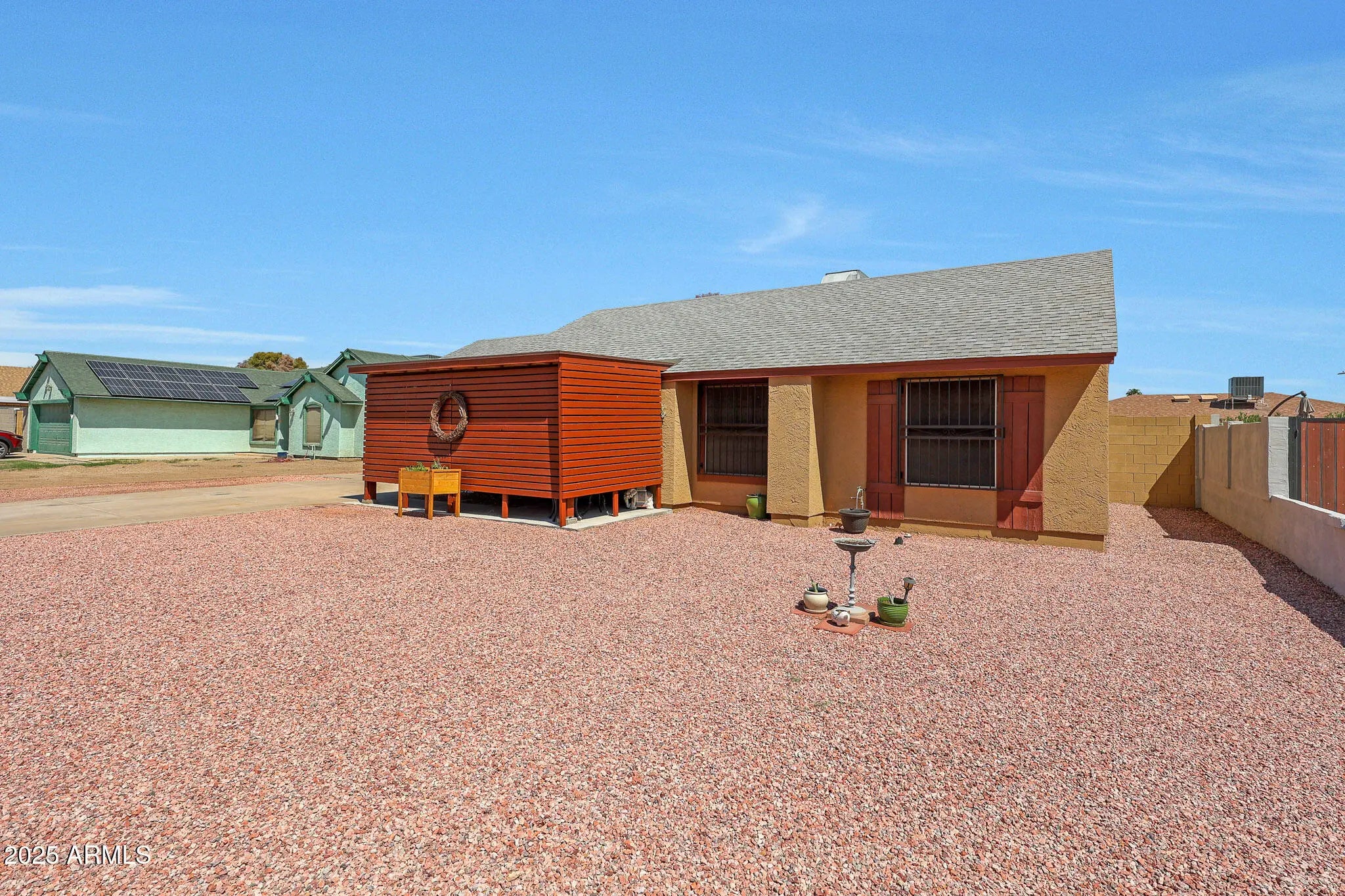 This 3-bedroom, 2-bath home stands out with a long list of thoughtful upgrades inside and out. Major improvements include a Trane HVAC system installed in 2021 and a roof replacement approximately seven years ago. With no HOA, plenty of room for RVs, trailers, and multiple vehicles, and a central Phoenix location, this home offers both value and flexibility. Inside, the home has been refreshed with new paint, updated appliances, matching ceiling fans, and modern hardware throughout. Vaulted ceilings in the main living areas create an open feel, while the formal dining space and updated kitchen with newer cabinets and coordinated finishes tie the home together. The three bedrooms include two with laminate flooring, and both bathrooms have been tastefully updated..... The exterior has been designed for easy maintenance and peace of mind. The front yard was converted to gravel, and a covered front porch adds shade and privacy. A double-wide RV gate allows for generous parking, while the block wall was raised to seven feet for additional privacy. Security bars were added to the windows and exterior doors, with emergency fire releases in the bedrooms, and a secure mailbox was installed. The large backyard was leveled and finished with gravel, there is a large, covered patio, a paver seating area, dedicated pet enclosures, and a shed for storage. An insulated garage door with motion-sensor lighting adds a practical touch, while biannual HVAC service and quarterly pest control show the consistent care given to the home. Located near I-17, this property offers quick access to shopping, dining, public transit, and everything central Phoenix has to offer. For buyers seeking a low-maintenance home with plenty of upgrades, this one should not be missed.