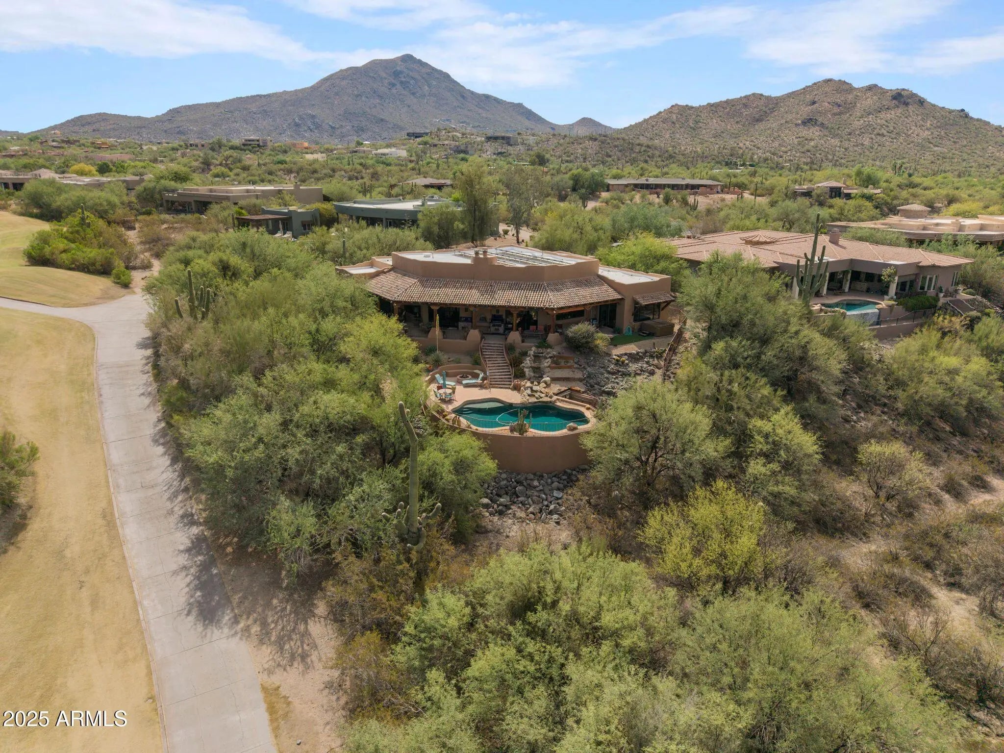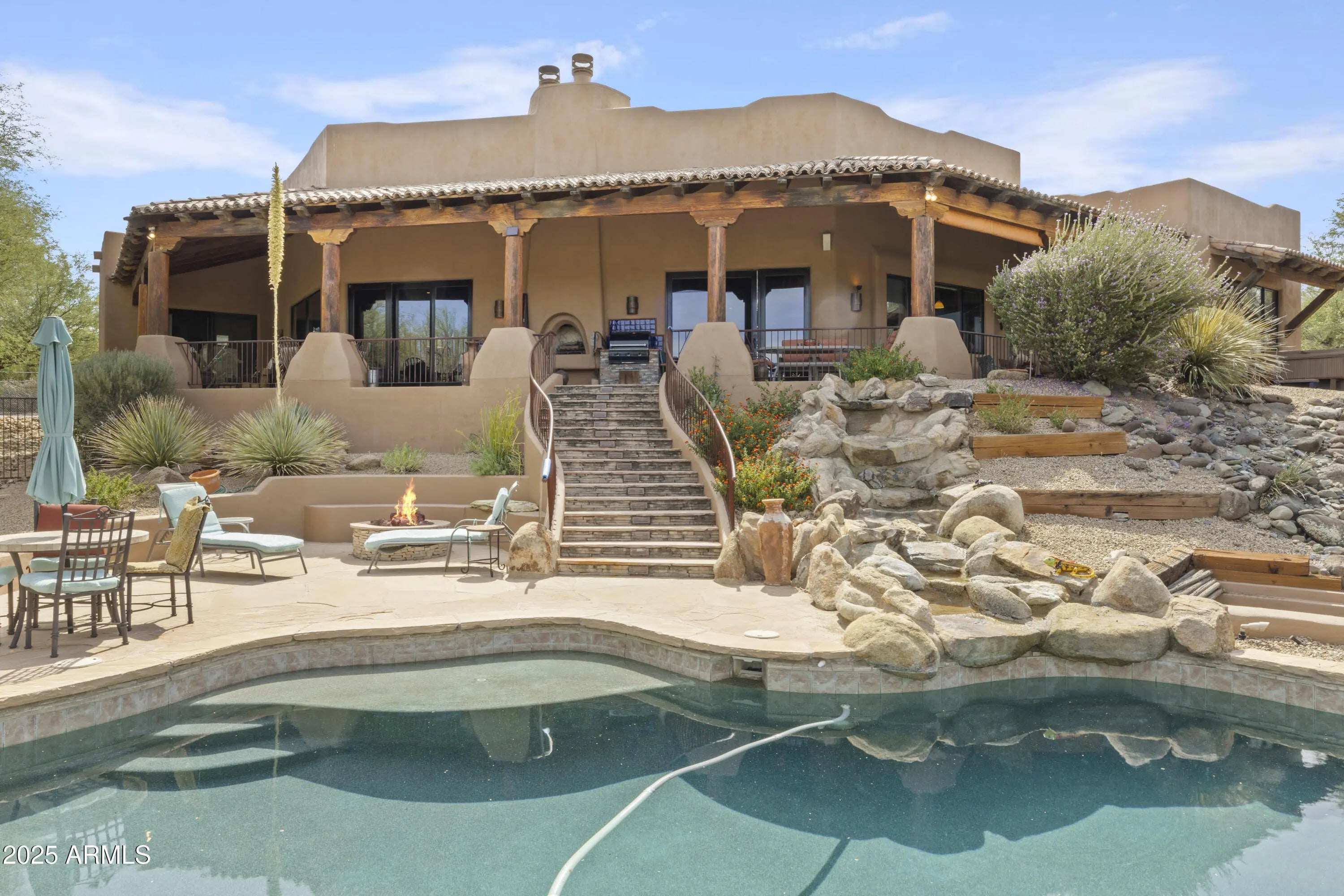Spectacular Custom Estate on Hole #2 at Rancho Mañana! Luxury, privacy, and panoramic beauty define this 3-bedroom + den, 3.5-bath custom home by LeBlonde Custom Homes on over 1 acre in the exclusive Rancho Mañana Golf Community. Nearly 4,000 sq ft of refined living features 16-ft ceilings, solid 8-ft knotty alder doors, and designer finishes throughout. The gourmet kitchen offers gas burners, warming oven, Sub-Zero refrigerator, granite counters, and abundant prep space. The great room with full bar and gas fireplace is perfect for entertaining or relaxed desert living. Three private suites plus den. Owned solar for energy efficiency and low utilities. Enjoy stunning views from the expansive 80-ft covered patio overlooking the golf course and mountains. Spectacular Custom Estate on Hole #2 at Rancho Mañana! Luxury, privacy, and panoramic beauty define this 3-bedroom + den, 3.5-bath custom home by LeBlonde Custom Homes on over 1 acre in the exclusive Rancho Mañana Golf Community. Nearly 4,000 sq ft of refined living features 16-ft ceilings, solid 8-ft knotty alder doors, and designer finishes throughout. The gourmet kitchen offers gas burners, warming oven, Sub-Zero refrigerator, granite counters, and abundant prep space. The great room with full bar and gas fireplace is perfect for entertaining or relaxed desert living. Three private suites plus den. Owned solar for energy efficiency and low utilities. Enjoy stunning views from the expansive 80-ft covered patio overlooking the golf course and mountains. A true Cave Creek gem built for those seeking quality, comfort, and timeless desert elegance.