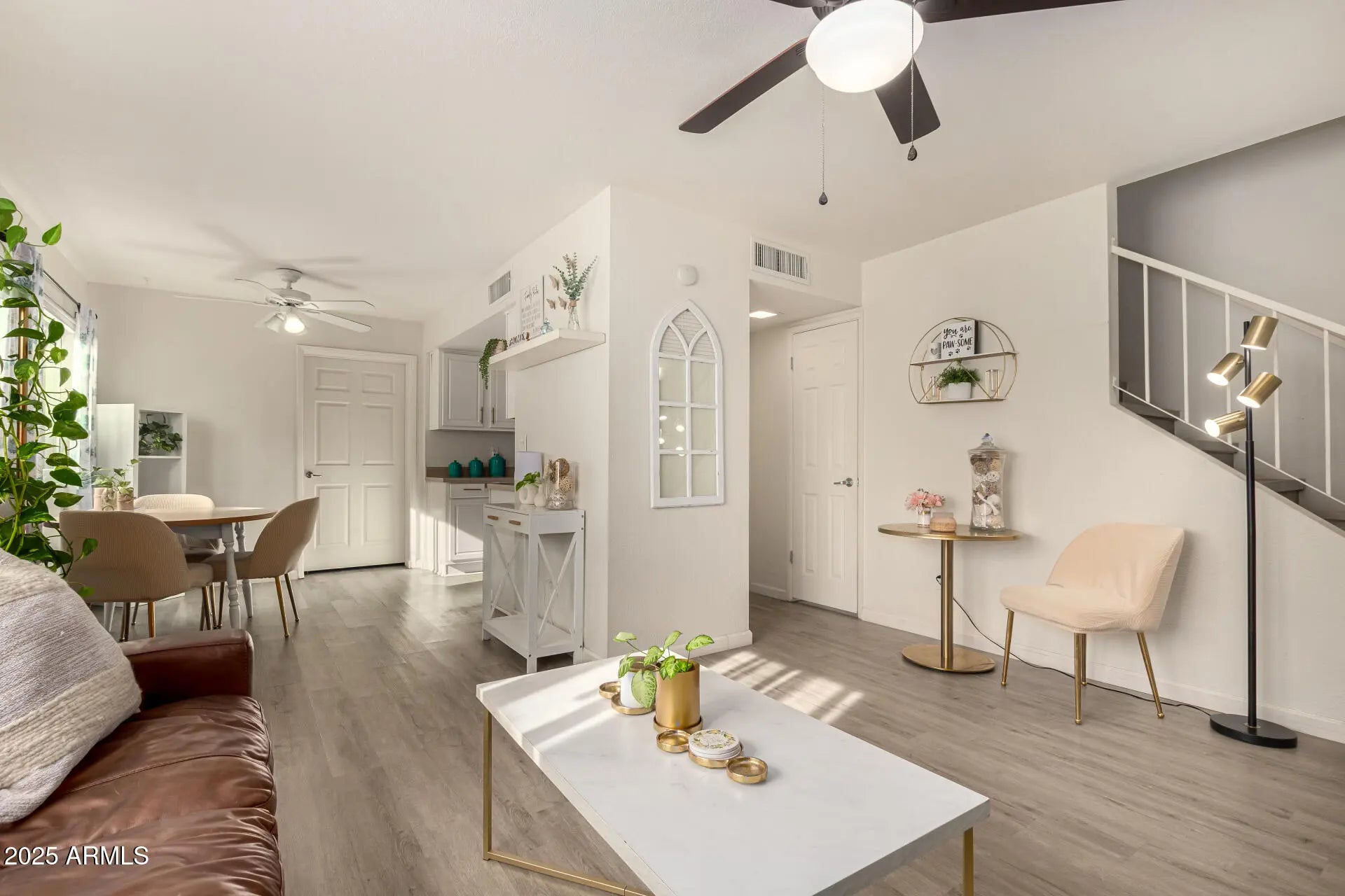 Super-cute 2-bed 1.5 bath Scottsale Townhome with 1-car garage. VINYL PLANK FLOORING & INTERIOR PAINT 2023, AC 2022, ROOF 2021, KITCHEN APPLIANCES & WATER HEATER 2020, & WINDOWS 2016. Open & bright with tasteful decor. Kitchen features SS appliances & crisp white wood cabinets with hardware. Spacious pantry/laundry area with cabinets & FULL-SIZE Washer/Dryer. All appliances stay. Both bedrooms offer comfort & versatility for a restful retreat or home office. Enjoy & relax in the private courtyard with pavers & turf. Take a short walk to refresh yourself in the sparkling community pool & heated spa. Conveniently located NEAR downtown Scottsdale, ASU, Sky Harbor Airport, Papago Park, General Dynamics, shopping, restaurants, hiking, Tempe, Mesa & the 101/2020 freeways. Don't miss it!
