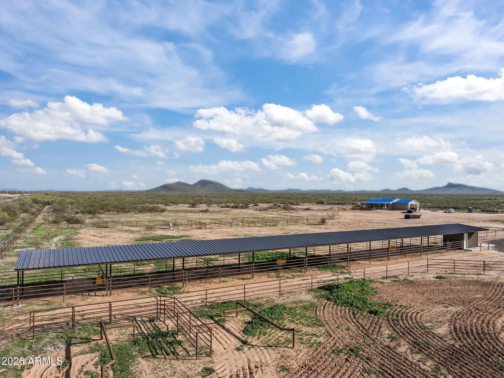 This 4.1-acre property showcases a brand-new 2025 custom home, fully furnished with custom furniture and complemented by beautifully landscaped front and back yards featuring decorative rock. Exterior improvements include pavers in both the front and back, a gravel driveway, and full perimeter fencing for privacy, security, and ease of use.Designed for functionality and quality horse use, the property features a NEW six-pen mare motel with automatic waterers and integrated shade, a full-size roping arena, a NEW hay shed, a NEW wash rack with tie rails, and a tack room with built-in saddle racks—creating a well-thought-out and efficient equestrian setup.Located in a desirable area with State Land nearby, this property offers a seamless blend of modern custom living and a turnkey equestrian
