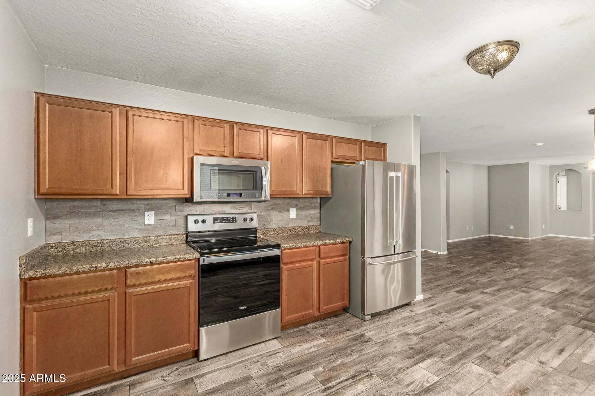 Become the proud new owner of this beautifully upgraded 4-bedroom home featuring a 2-car garage and a cozy front porch! Come inside to discover a large open floor plan filled with lots of natural light, boasting wood-look tile flooring, fresh paint throughout, and French doors that create a seamless indoor-outdoor living. Lovely kitchen displays plenty of cabinets and stainless steel appliances. Continue onto the sizable primary bedroom, which includes a private bathroom with dual sinks, a make-up desk, and a walk-in closet. As a bonus, a washer and dryer convey. Spacious backyard with a gazebo is perfect for unwinding or hosting fun gatherings. This gem is ready to move in and enjoy!