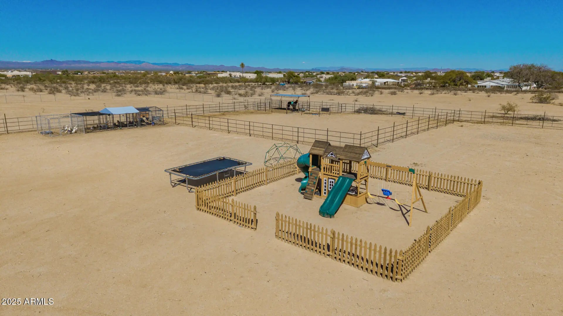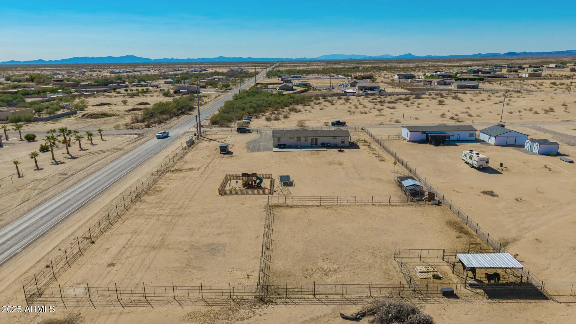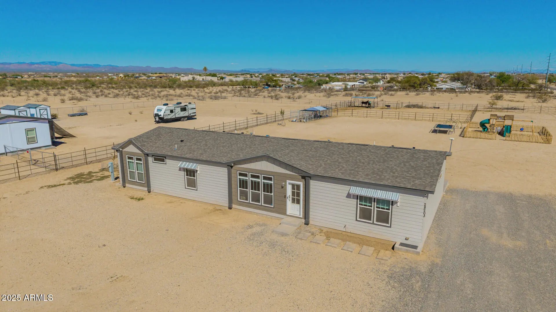 Welcome home to this amazing horse property in Wittmann! Move in ready!! The home is only 2 years old, has 4 bedrooms, 3 bathrooms, and is 2160 sq ft. As you walk in, you will notice the pride of ownership! This model is one of the most upgraded models in the area. The owners took great care in maintaining the inside to be like new! As you walk in, there is a spacious great room and kitchen! The kitchen has dark cabinets with upgraded hardware, stainless steel appliances, quartz countertops, backsplash, an island, and a large walk in pantry. The oversized laundry room has a sink and plenty of room for storage. The master bedroom is split from the rest of the rooms, has two walk in closets and a spa like bathroom with a soaker tub, tile shower, 2 sinks and a separate toilet room. The 3 other bedrooms have large closets. Two of the bedrooms have a jack and jill bathroom with one sink a shower. The hall bathroom has one sink and an oversized tub/shower. The home has a programmable thermostat and a dehumidifier! The HVAC is run through the ceiling - setting it apart from other manufactured homes that have vents in the floor. The property is surrounded by no climb fencing, has a large storage shed, and fenced off playground area (it can be removed or stay), and 4 covered chicken coops (chickens can convey)! The horses enjoy a large turnout with 1 covered stall and 1 uncovered stall. It is also within walking distance of 4D Arena! Come see this lovely unique property today!
