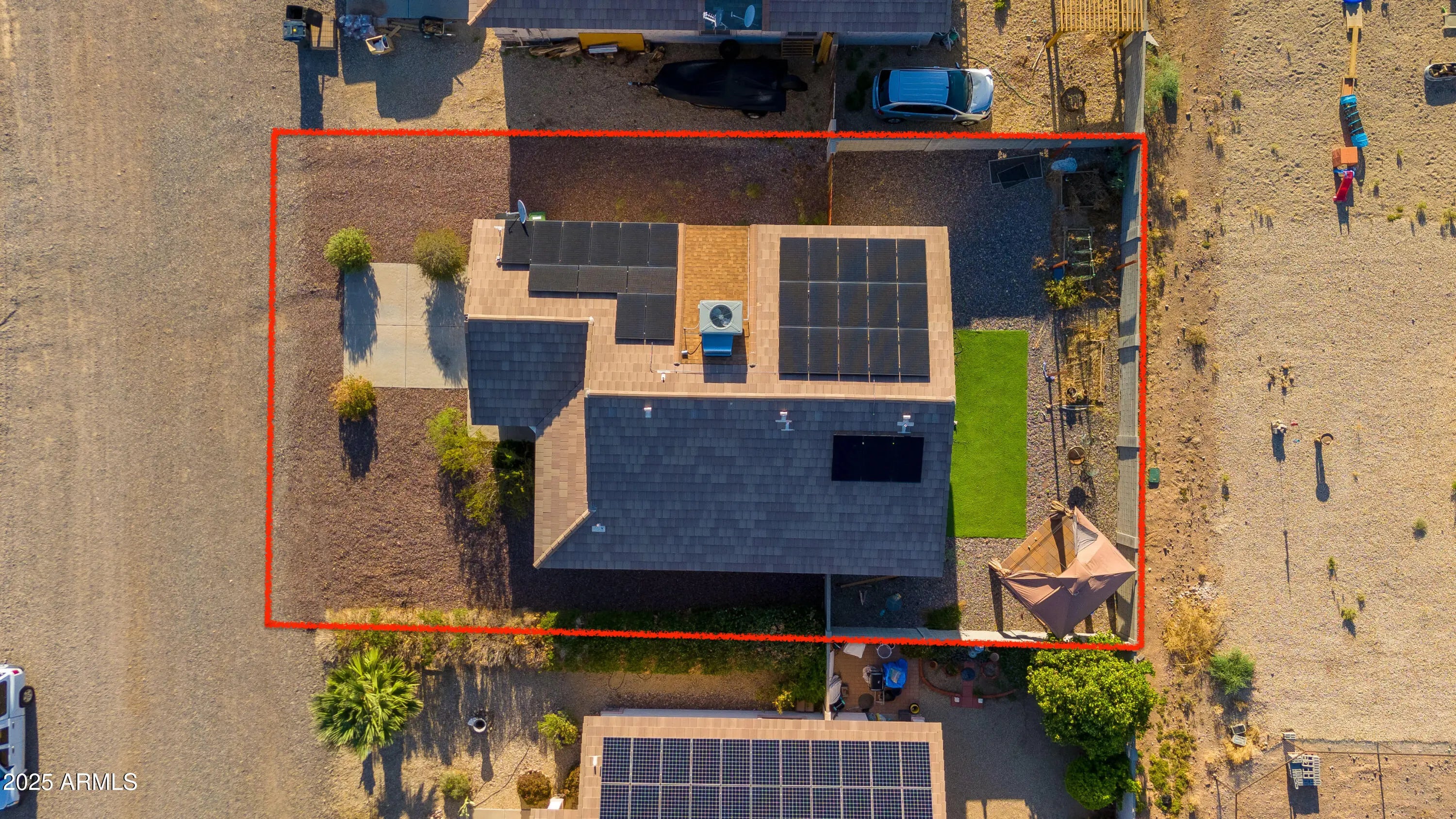 Perfectly situated for the ideal balance of work and play, this beautifully crafted home is built for effortless living inside and out. At the heart of it all, the dream kitchen shines with GRANITE countertops, a farmhouse sink, and a double oven. QUALITY UPGRADES throughout include an OWNED SOLAR system, custom shutters, a water filtration system, top-of-the-line appliances, a premium tile roof, and a privacy wall that adds comfort and peace of mind. Step outside to your own oasis: a low-maintenance, expertly designed zero-scape yard featuring lush turf, stylish pavers, charming patio and gazebo made for relaxing. And when you're ready to explore, miles of open desert trails await nearby. A welcoming COMMUNITY PARK that brings neighbors together turning a house into a home.