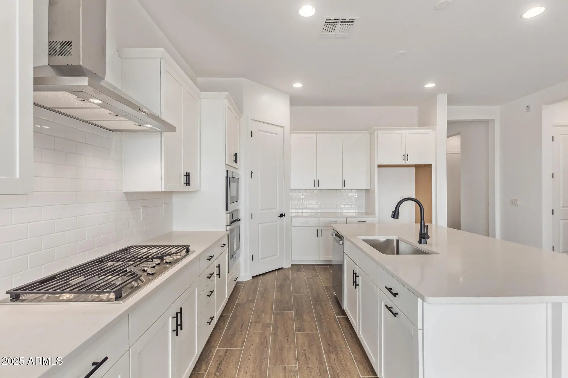 Welcome to the Alden, a home designed to inspire! Imagine gathering in the chef-inspired gourmet kitchen with 42'' cabinets, quartz countertops, GE stainless steel appliances with built-in oven, microwave, hood, dual-bin pull-out trash drawer, walk-in pantry, and a spacious island that brings everyone together. The family room opens with a beautiful door, creating seamless indoor-outdoor living. Elegant wood-look tile flows through the main areas, while plush carpet offers cozy retreats in the bedrooms. The primary suite is a true escape, featuring dual sinks, a soaking tub, and a walk-in shower. With soaring 10' ceilings, 8' doors, and smart features like a keyless lock, tankless water heater, soft water loop, and 8' garage door with opener, every detail blends comfort and style. Step onto the covered patio and picture evenings of pure relaxation.
