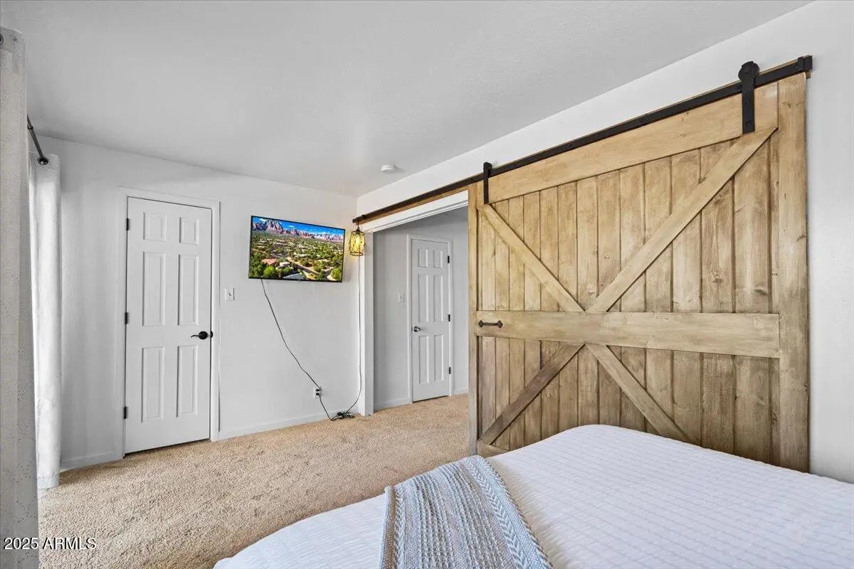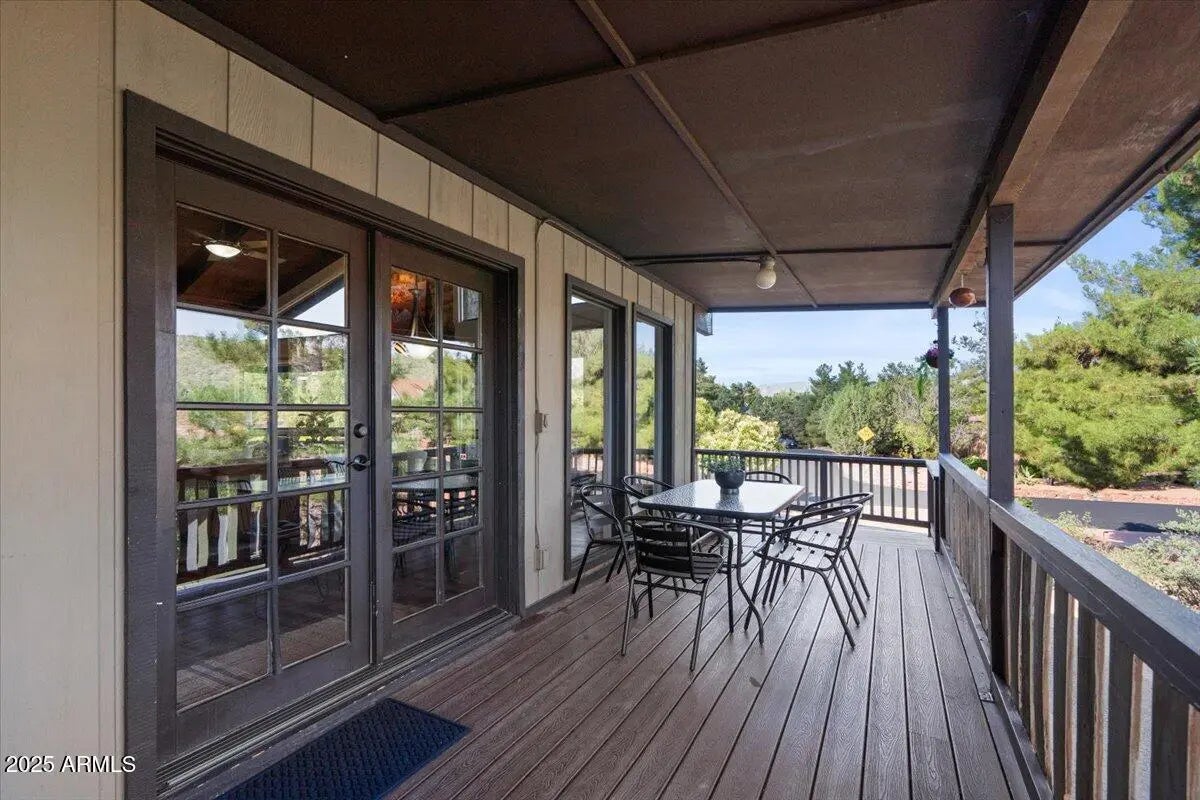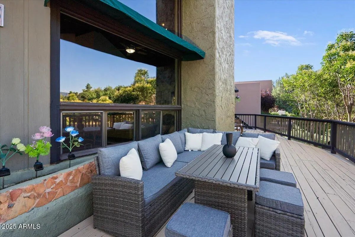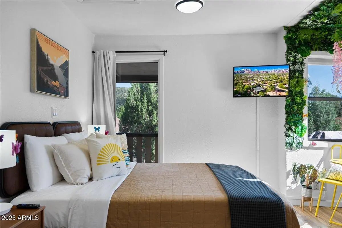 Welcome to 2305 Roadrunner, a wonderfully appointed, turn-key vacation rental with a successful track record. This 4 bed/2.5 bath home has a wonderful mid-century flare with over $40,000 in thoughtfully designed upgrades and improvements to make it a hyper-successful vacation rental. Step inside and be swept away by the soaring T&G ceilings, stone fireplace, clerestory windows, & wrap-around deck. Bring your suitcase or immediately begin renting this property as the furniture, games, & housewares all convey! Future bookings to convey as well (if desired), at no cost to the Buyer - instant cash flow! This home is situated in the quiet and peaceful neighborhood of Sedona Meadows and is only minutes away from Sedona's best restaurants, grocery stores, & hiking trails. See More... The upper floor features a kitchen with granite countertops and effortless flow between the kitchen, dining, and living room to create a great, connected entertaining space. Snap your photo next to a custom, floor to ceiling mural of Sedona's most iconic rock formation - Cathedral Rock. This entire portion of the home is encased with a large wrap-around deck that grants you ample views and supports outdoor dining. This home truly makes outdoor/indoor living seamless. The primary bedroom is exceptionally spacious and features soaring T&G ceilings and an en-suite bathroom. Guest bedroom 2 enjoys abundant light from windows on all sides, and has a darling reading nook tucked under a large picture window. A half bath adjacent to the foyer serves guest bedroom 2. Downstairs, a tricked-out Pixar Cars-themed living room with a bespoke mural, additional racecar beds, and a fireplace will surely ignite the kids' imagination! Continuing on this floor, there are two additional guest bedrooms, a full bath, a laundry room, and a 2 car garage that is currently being utilized as a game room. Amenities in the game room such as a ping pong table, darts, foosball, and an additional TV lounge will certainly attract vacation guests! Guest bedroom 3 features modern farmhouse decor and a sliding glass door that leads out to its own private patio. Guest bedroom 4 offers ample privacy and easy access to the downstairs living room and game room. With two stories of endless entertainment space and privacy, this home promises to appease anyone who steps in. Tour this home and experience why it's a show-stopping vacation rental!