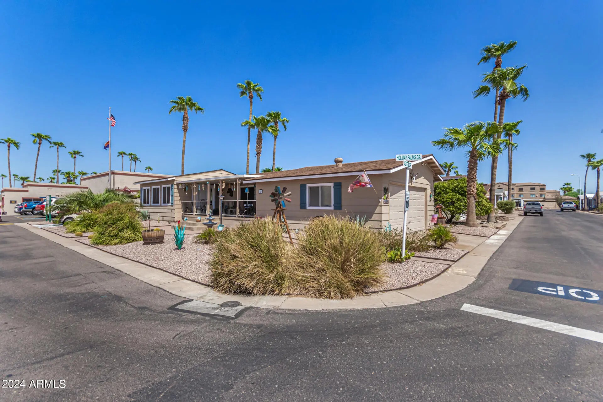 Start living in this charming corner lot home with a 2-car garage, nestled in a desirable 55+ community. Step inside to discover an inviting open floor plan featuring newer vinyl plank floors, vaulted ceilings, and a spacious great room perfect for entertaining. The delightful kitchen is equipped with stainless steel appliances, wall ovens, mahogany cabinets, tile counters, track lighting, and a peninsula with a breakfast bar. The main bedroom offers a walk-in closet and a private bathroom with dual sinks. A versatile den can serve as an office or extra bedroom. AC and side slider door replaced in 2023 ! Relax on the large front farmer's porch.Enjoy community amenities like a pool, spa, and more! Don't miss this opportunity! Within walking distance to food, store, pharmacy and bowling !