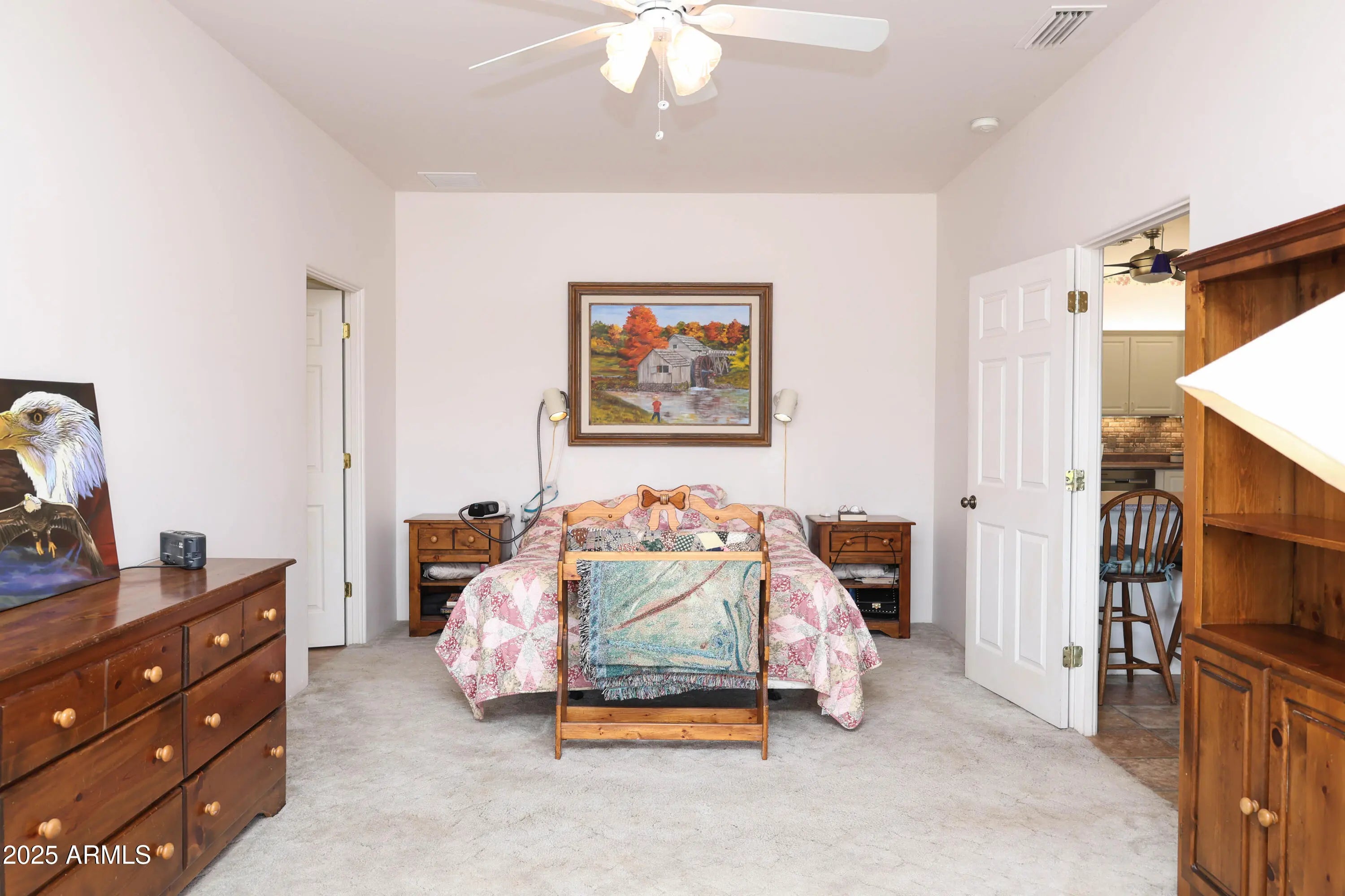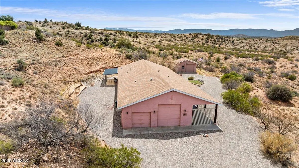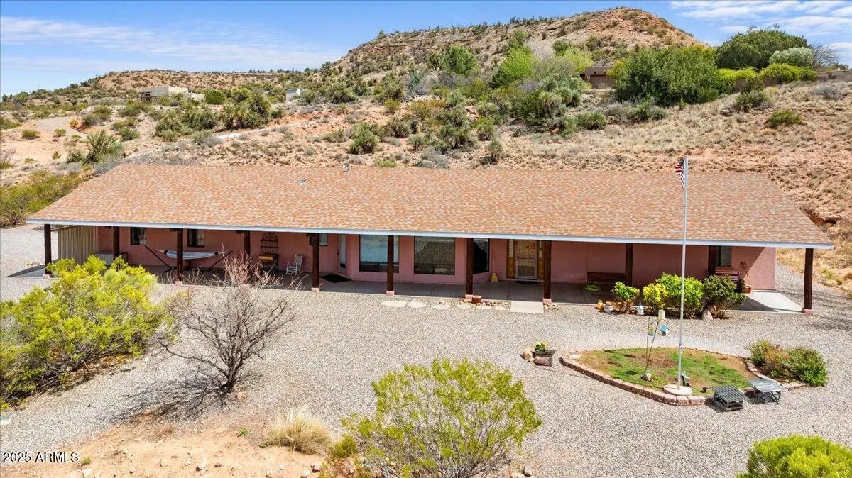 Offering 2k towards buyer's closing costs or buydown points w reasonable offer! Form meets function in this custom-built home at the end of Koch Ranch Rd in Cornville. On 2.6+ acres, and bordering forest service land, discover the epic beauty of AZ sunsets with your expansive panoramic views. Experience the glittering lights of Jerome in the distance, horseback riding trails practically in your backyard, and the quiet seclusion of the high desert you've been dreaming of. This is being sold for the first time by the original owners. Every detail was thought of; 3-ft wide doors allow for accessibility, and get this - there is a library, with a secret door in the shelves! Just like the movies! Used as an office currently, but could be 3rd bedroom, family, or workout room, the list goes on. Step into the brightly lit living room, & there is even a ''Christmas tree nook'; with potential for whatever hidden storage you need. Large windows all along the west side of the home were thoughtfully put in to feature the views, and each bedroom has an exit to the outdoors. The tasteful kitchen features cabinet lighting, 2 lazy susan corner cabinets, a compactor, and a newer dishwasher, and leads off into an organizer's dream; the oversized laundry room offers ample pantry space for food and appliances, while on the other side a laundry station with sink, a place for folding and hanging, and even a spot to hang a small tv. The oversized garage (with 3/4 bath) features knotty pine finishes, to match the style of the detached 400sq ft garage/workshop! There is a 1/2 bath inside, and permitted electricity, plumbing, and heating has been routed to the outbuilding for endless potential. I can't mention storage enough; the primary suite has a glorious walk-in closet, and the bathroom has a separate tub and shower with wheelchair accessibility. The second bedroom even has a walk-in to rival most walk-in closets. Take advantage of the best of both worlds; seclusion and natural beauty, but near Sedona and the major cities of central AZ. With extra insulation, practical touches, style, and years of care (carpeted areas recently cleaned), this house was built to be home.