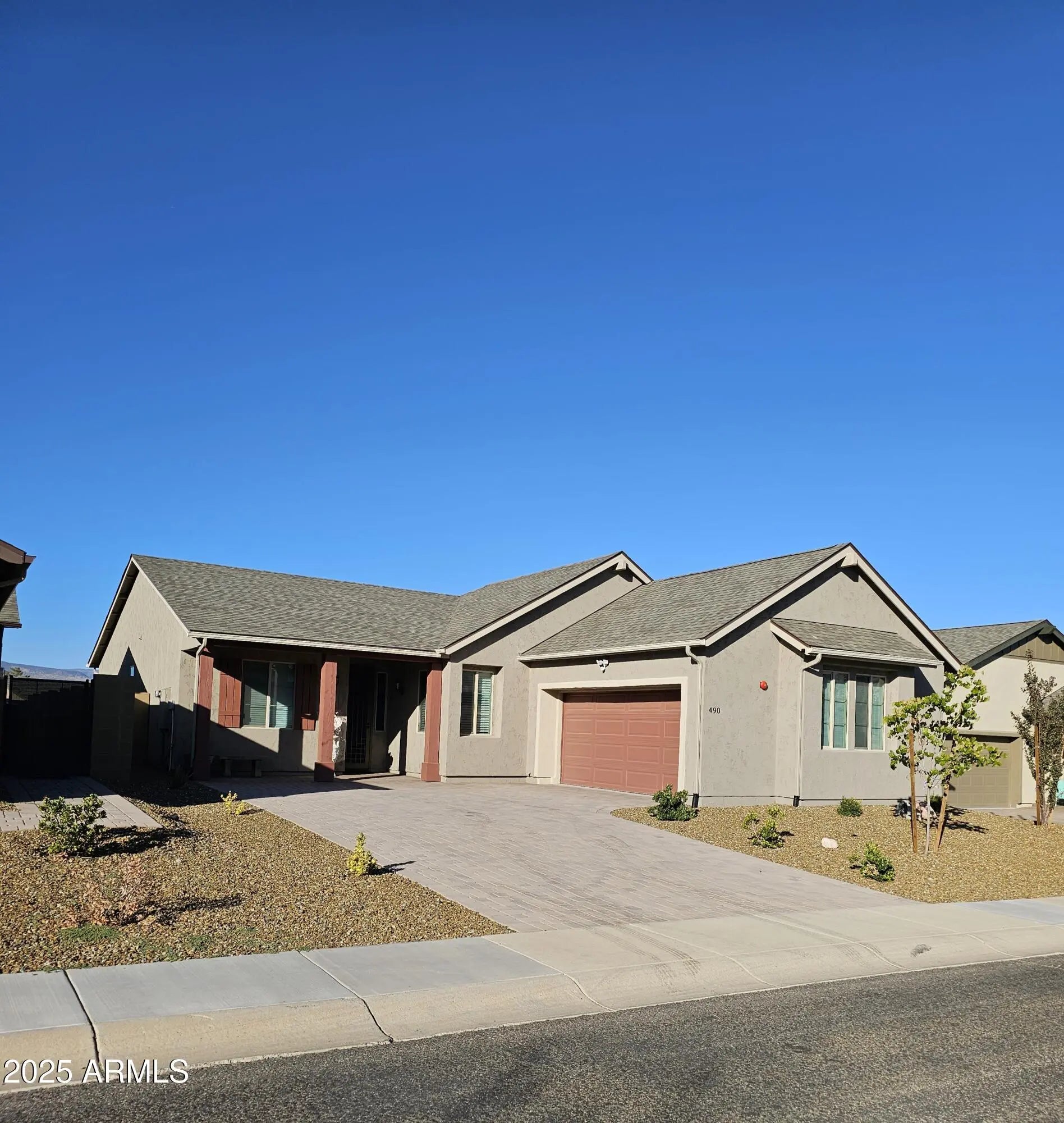 This beautiful 2021 home is ready to move in and better than new! Planked flooring throughout and upgraded appliances typically not included in new construction complete this gorgeous 3 bed, 2 bath Mountain Gate home! The spacious great room is perfect for entertaining and opens to the covered patio with splendid red rock views. This home has the perfect blend of style and functionality. The luxury primary bath with tiled shower glass doors provides the ultimate showering experience. The Vista Floor Plan is beautifully designed for energy efficiency, comfort, and easy access to the garage side entrance. Aero barrier and whole-house air filtration system INCLUDED and built with low or no VOC materials for excellent indoor air quality! Call agent to show.