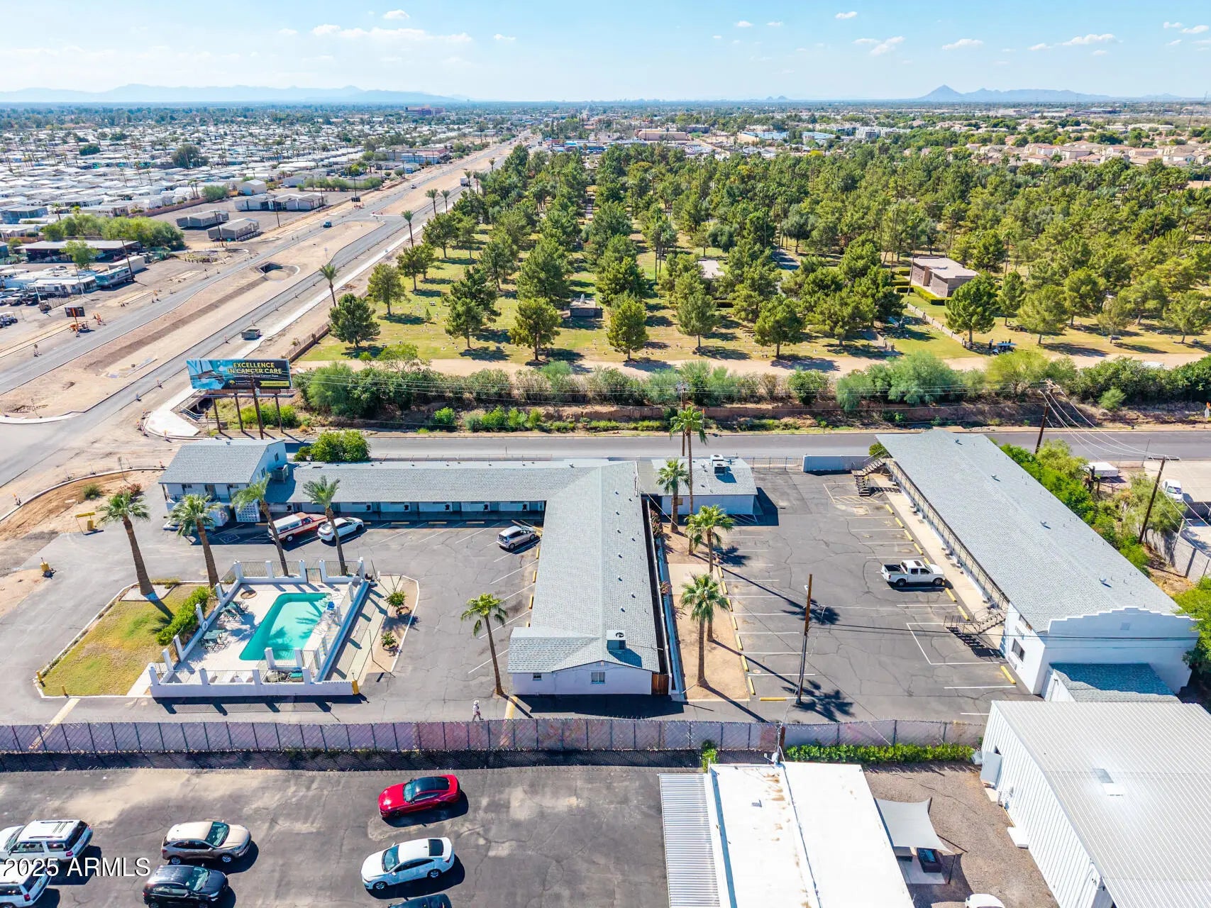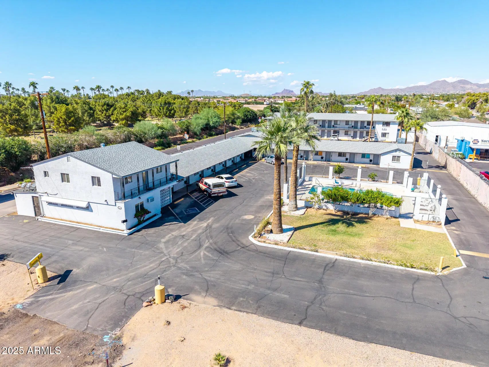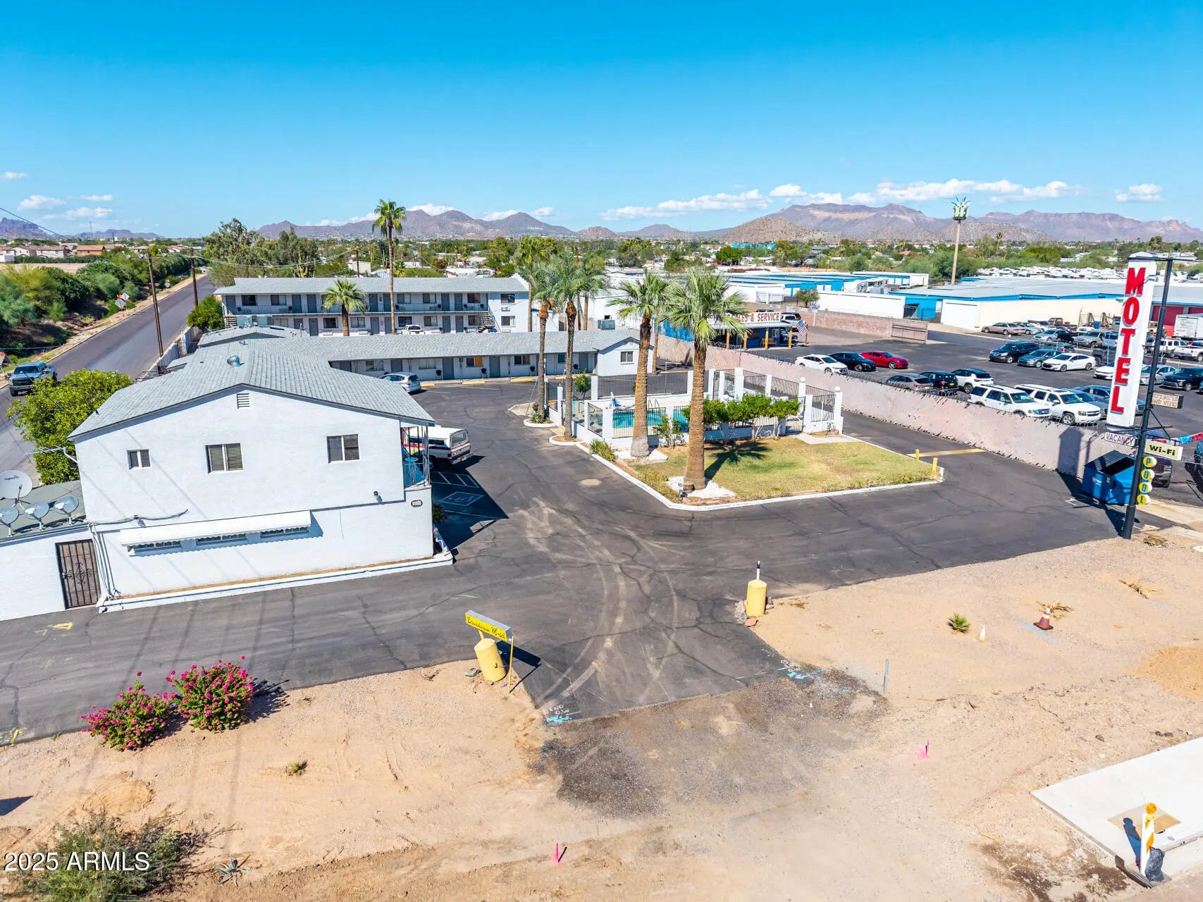 Welcome to the Broadview Motel, a well-maintained hospitality property situated on the NE corner of Main Street and 80th Street with excellent dual street frontage. This property is located within a Maricopa County island (not City of Mesa jurisdiction), offering flexibility and strong upside potential. Property Highlights: Lot Size: Approx. .94 acres (326' x 124') Buildings: 2 total — North building (2-story), South building (single-story) Guest Rooms: 32 total: Mix of studio units, studios with kitchenettes, and one-bedroom units with kitchenettes Manager's Quarters: Spacious 2-story residence featuring 3 bedrooms, 2.5 baths, a great room, full electric kitchen, in-kitchen dining, and large outdoor gas kitchenRecent Recent Upgrades & Condition $65,000 pool renovations 2024 Roof replaced approx. 7 years ago Interior & exterior paint within the last 5 years Flooring: All guest rooms updated with luxury vinyl plank or tile Mechanical: Mix of rooftop and wall/window HVAC units; all units have heat & A/C Water Heaters: Gas, housed outside in secure enclosures Laundry: On-site guest laundry room + 3 housekeeping closets Operations & Opportunity: Ownership: Same family for over 30 years Staffing: Experienced maintenance team interested in staying on; current managers will depart with owners Access: 2 entrances/exits on 80th St. and 1 entrance/exit on Main St. Strong Seasonality: High demand from snowbirds October-April Surrounding Development: Major roadway improvements nearly complete on Main St./Apache Trail, including new pavement, drainage, sidewalks, and gutters enhancing curb appeal and accessibility Investment Potential: This is an occupied motel with stable performance and clear value-add upside. Future owners can reposition as a boutique hotel by adding modern, tech-forward amenities such as: Self-check-in kiosks, Digital room keys, Mobile app integration for guest convenience and security.