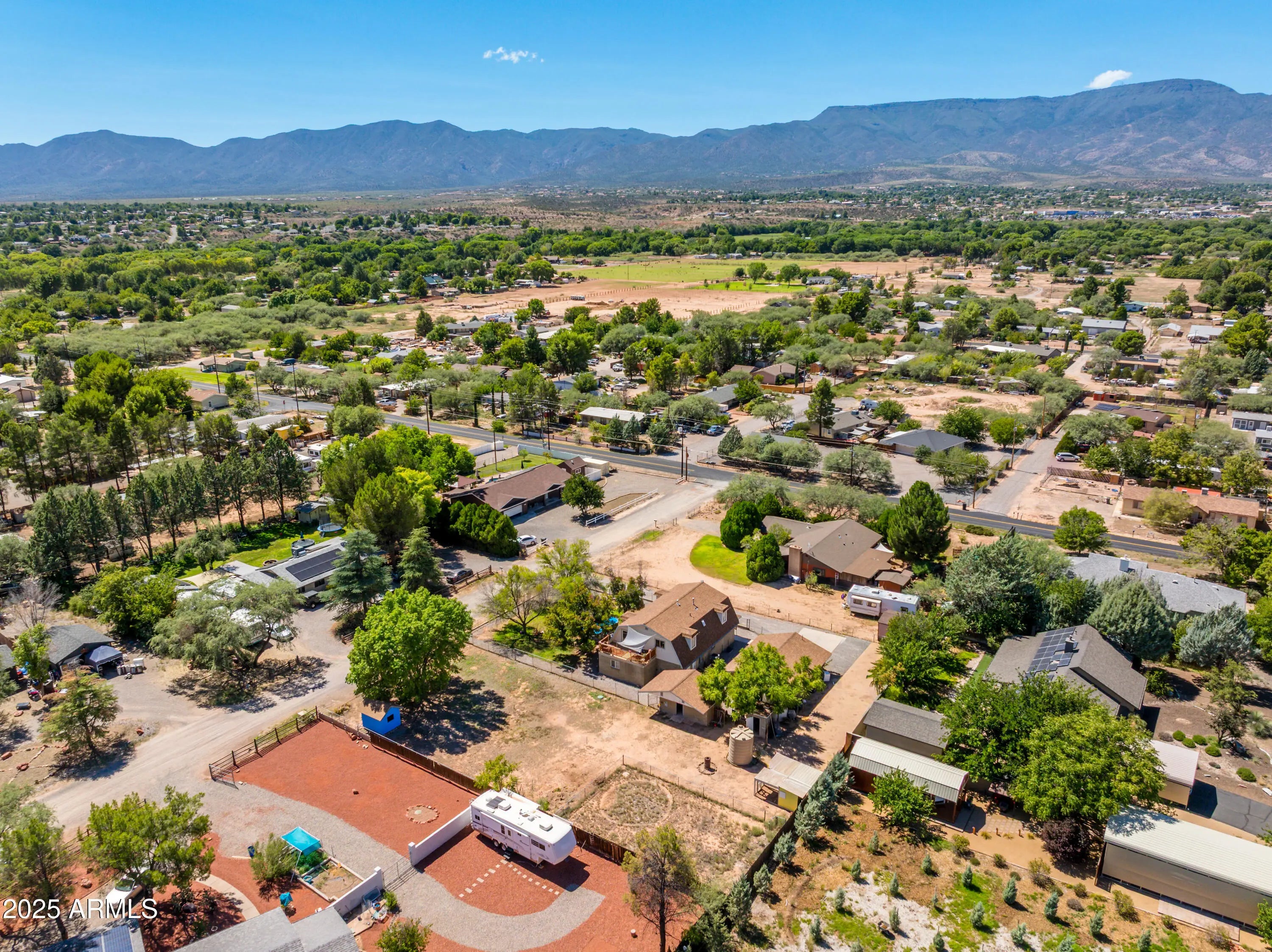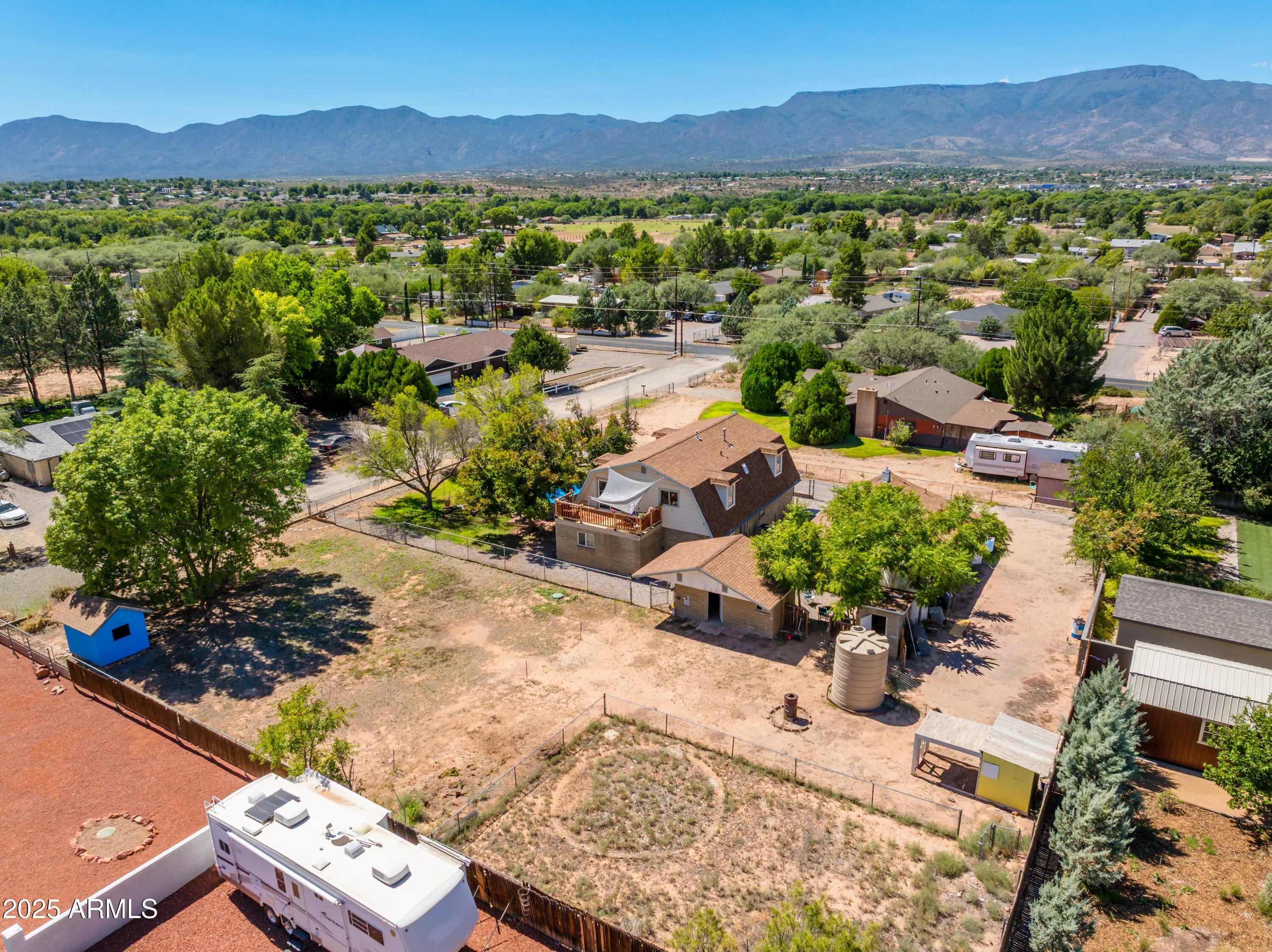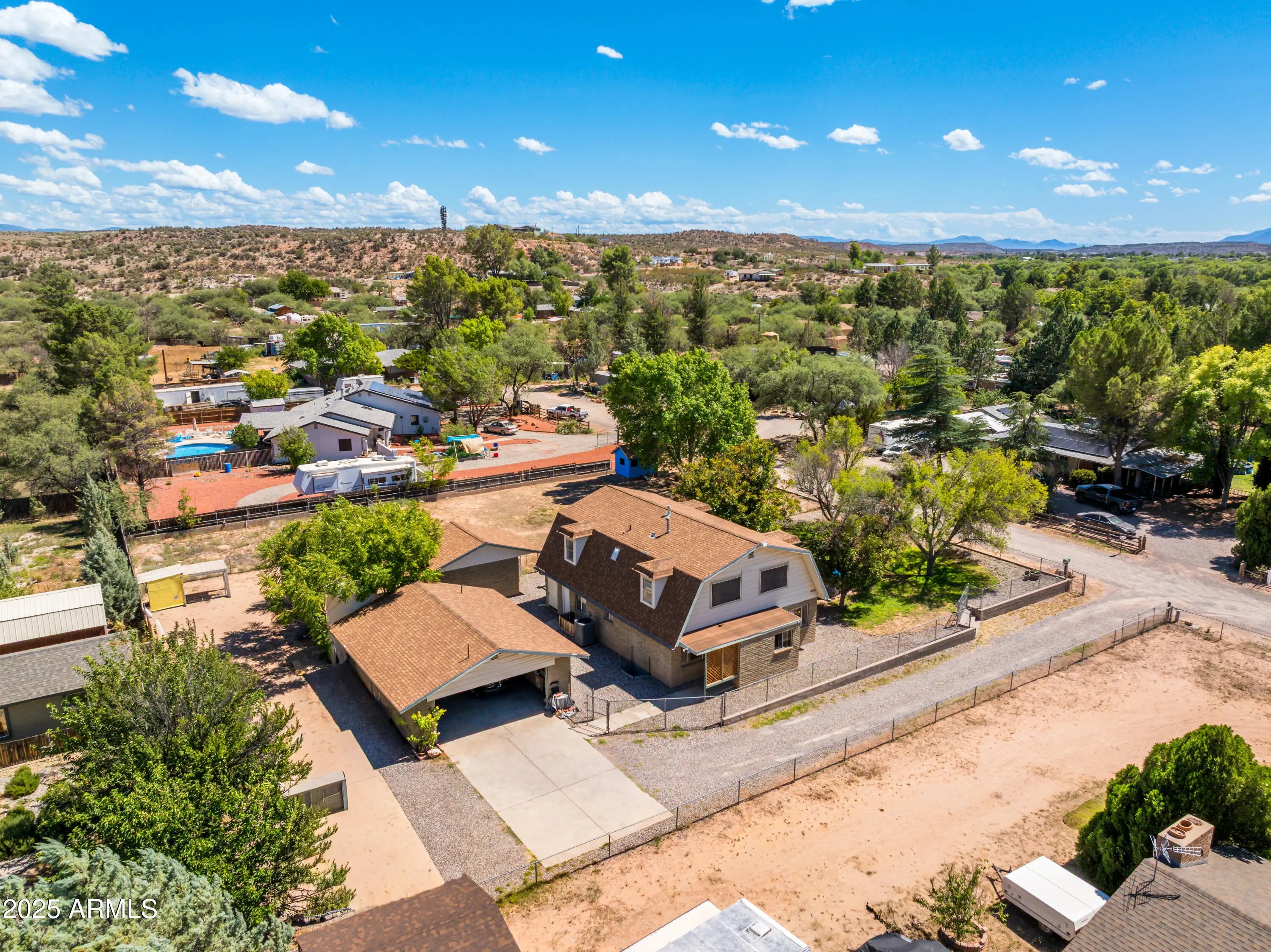 Discover your dream home in the charming community of Bridgeport, Cottonwood, Arizona, where this unique barn-style residence offers a perfect blend of rustic charm and modern convenience. Situated on a generous 0.67-acre lot with no HOA, this spacious 3,354 sq.ft. home provides ample room for family and guests across three well-appointed levels. Boasting six bedrooms and four bathrooms, this home is designed for comfortable living. The heart of the home is a nice-sized kitchen, ideal for family gatherings and culinary adventures, offering plenty of space for cooking and dining. Head outside to your private oasis and take a dip in the above-ground pool while soaking in breathtaking mountain views. The expansive grounds also feature a detached two-car garage with a work area, providing abundant space for hobbies and storage. There is a separate workshop for special projects. With plenty of additional parking available, this property is perfect for those with multiple vehicles, RV's (with hook-ups), or other toys. In addition, the property features poultry coops, and a garden area ready for planting your favorite veggies, ideal for those looking to live a self-sufficient lifestyle. Enjoy the tranquility of this serene location, just a short distance from the Verde River, offering endless opportunities for outdoor recreation. Don't miss the opportunity to own this unique property in the heart of Cottonwood. Make arrangements to take a private tour today and experience the possibilities!