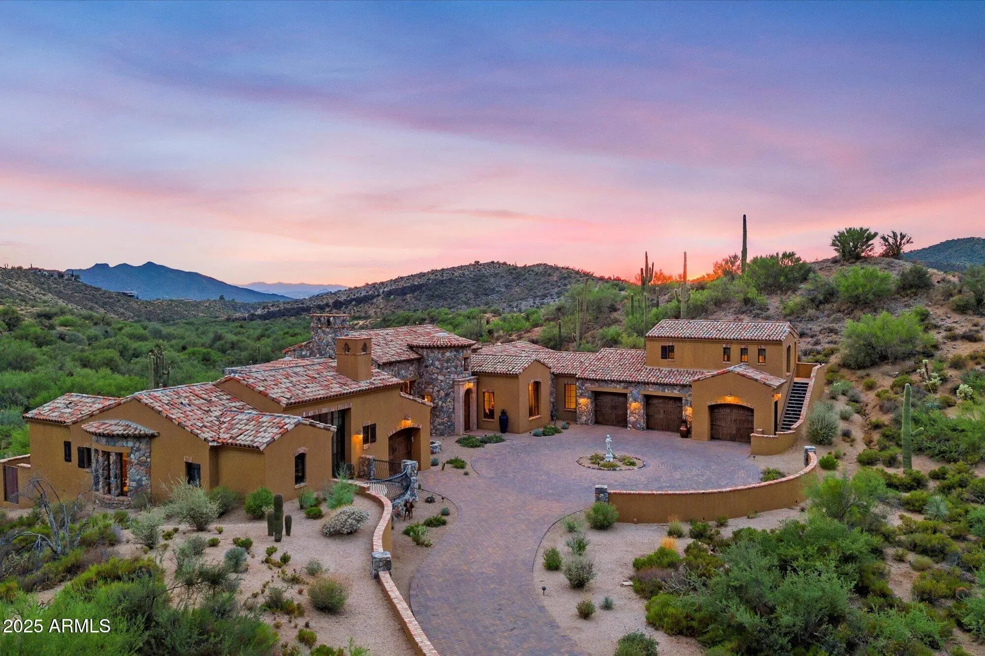 LIFESTYLE MEMBERSHIP AVAILABLE. Exquisite 2.2 acre Desert Mountain estate welcomes you with its brick lined circular driveway, old world feel and panoramic mountain views that do not stop! Elegance abounds with the extensive use of marble and stone finishes throughout, granite countertops, gorgeous tile flooring and well appointed bathrooms! The kitchen is an absolute DREAM and features a gas cooktop, double wall ovens and a wet bar with a pass through to one of the FIVE outdoor patios (one is screened in)! There are 3 bedrooms with ensuite baths in the main home, with a bedroom, bath and kitchen in the private 545 sq. ft. casita with separate entrance! Let the views of the Sonoran desert and stunning sunsets melt away your stress while soaking in the sparkling pool or spa!