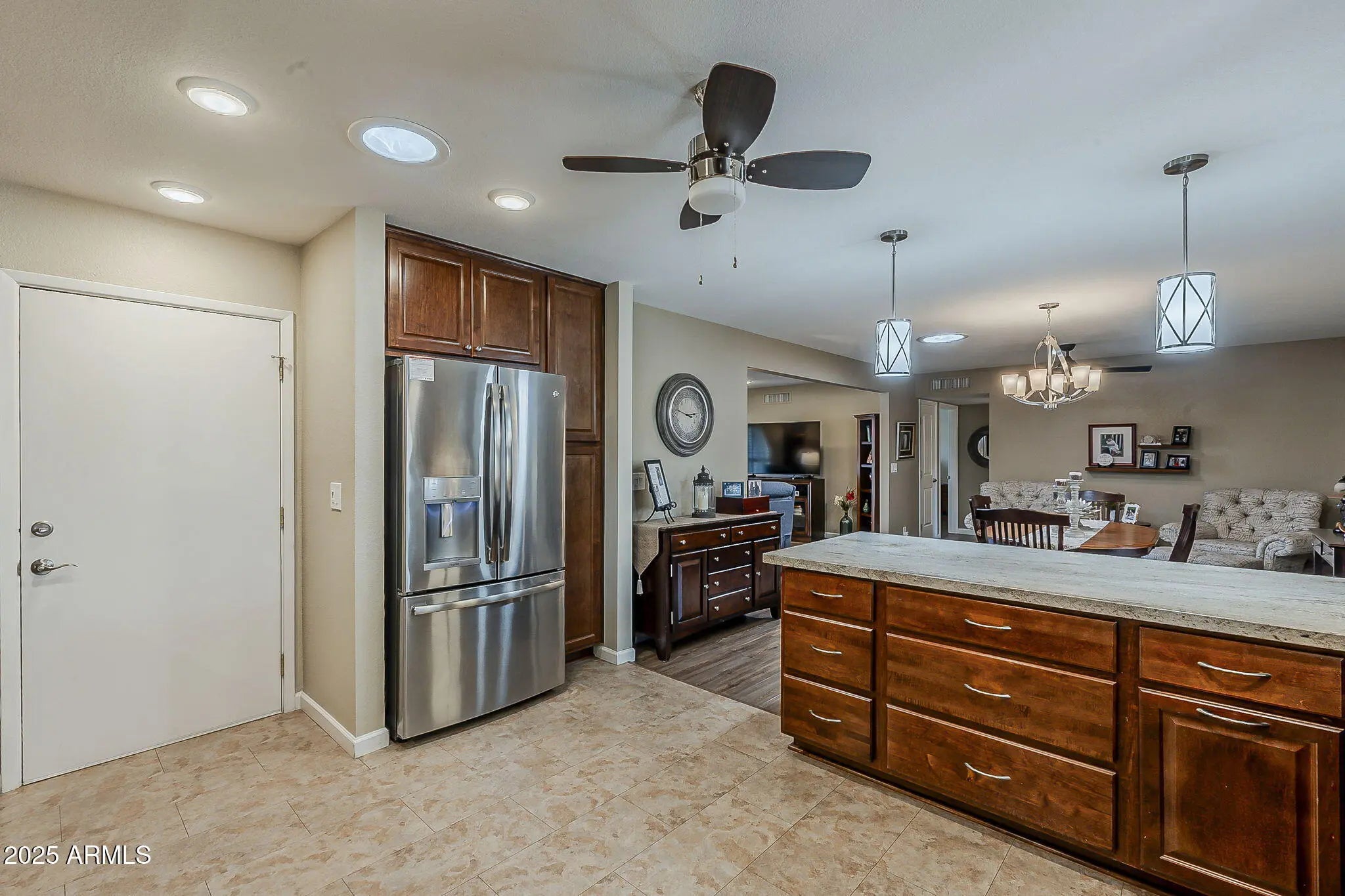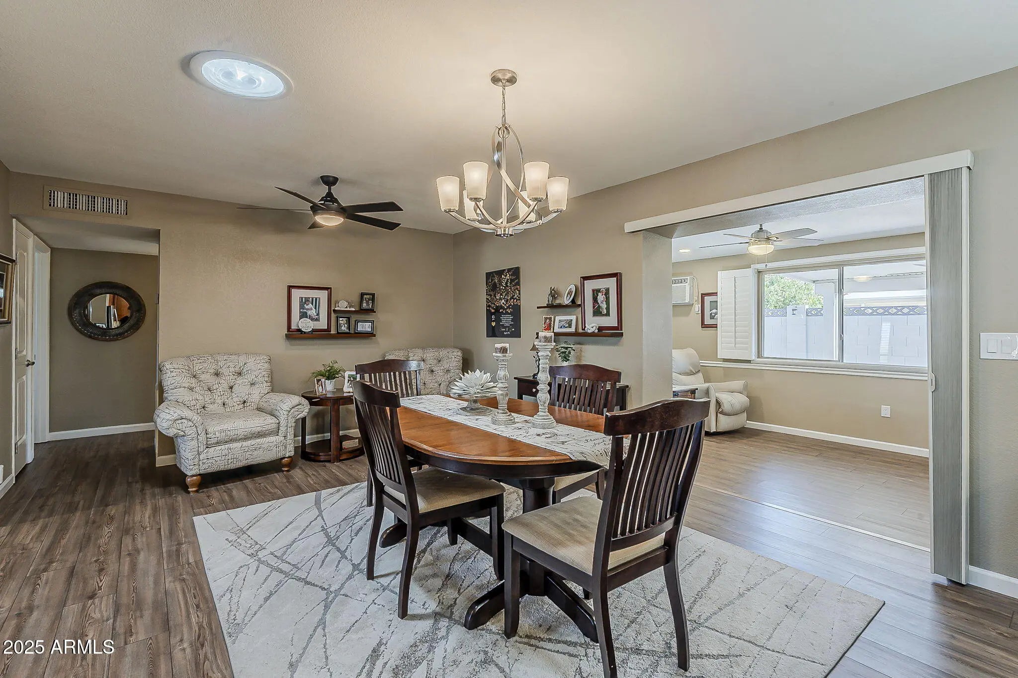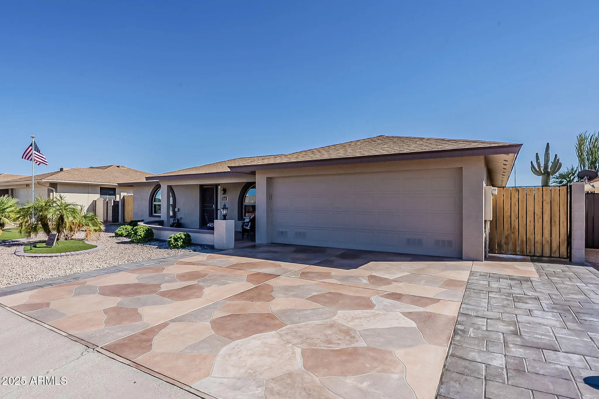 A rare gem in Sunland Village East — completely and thoughtfully remodeled and expanded. For buyers seeking zero projects, this home checks all the boxes; with over $100,000 invested in renovations and upgrades already completed. In 2023, the home was expanded with a beautifully integrated addition that includes its own heating and cooling, natural light, dual closets, and a privacy partition—creating a third bedroom option. With a dedicated office space already in the home, this addition could also offer added flexibility for use as a hobby, craft, or sewing room. The kitchen is a showstopper, taken down to the studs and rebuilt to boast custom Maple cabinetry, granite countertops, soft-close drawers, pull-out shelves, stainless steel appliances, and many other carefully crafted upgrades The spacious counter seating is the perfect spot for family and friends to gather and chat while meals are being prepared. The expanded multi-use room off the kitchen combines laundry and office space, featuring Maple cabinetry, a his-and-her desk with granite countertops, plus a large closet for storage. It also provides direct access to the south-facing patio. The backyard has been beautifully relandscaped with a significant investment, creating a stunning and inviting outdoor space. It features an extensive paver project covering most of the area, complemented by a maximum-height block wall owned by the homeowner for added privacy and security. Enjoy relaxing or entertaining under the covered patio and a fully covered pergola equipped with roll-down sun shadesperfect for controlling sunlight throughout the day. This backyard is truly designed to be a proud and comfortable space for gatherings and outdoor living. The paver work continues seamlessly from the backyard all the way to the expanded driveway and out to the street, with wide side gates on both sides of the homespacious enough for golf cart access. The front yard has also been professionally re-landscaped with decorative rock and accented turf grass, adding to the home's clean, low-maintenance curb appeal. Pride of ownership shines throughout this home, with so many upgrades that words can't do it justiceyou'll need to see it to truly appreciate. Don't miss your chance to own a beautifully upgraded home and start enjoying the Sunland Village East lifestyle.