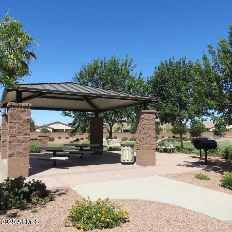 Looking for a home that is move-in ready? Welcome to this beautifully maintained 3-bedroom, 2-bath home with a versatile den, offering both comfort and style. Step inside to find a bright, open layout featuring a spacious kitchen with maple cabinetry, granite countertops, and plenty of storage, perfect for everyday living and entertaining. Fresh new carpet in the bedrooms and recently painted interior mean you can move right in without doing a thing. The primary suite is a true retreat with a walk-in closet and an en-suite bathroom complete with double sinks and an oversized walk-in shower. Enjoy Arizona living at its best in the private backyard oasis with low-maintenance desert landscaping, an extended covered patio pergola, and a swim spa for year-round relaxation. Located in a vibrant community of Ironwood Crossing, you'll have access to a heated pool, splash pad, multiple parks, walking paths, sand volleyball court,a soccer field, a. bocce ball court, and pickleball courts,something for everyone to enjoy. This home is located in incorporated Queen Creek which allows you to join the Queen Creek Recreation and Aquatic Center which is close by. This home combines modern updates with resort-style amenities, don't miss your chance to make it yours! Note, the HOA fees includes sewer fees which is a pass through from the twon of Queen Creek.