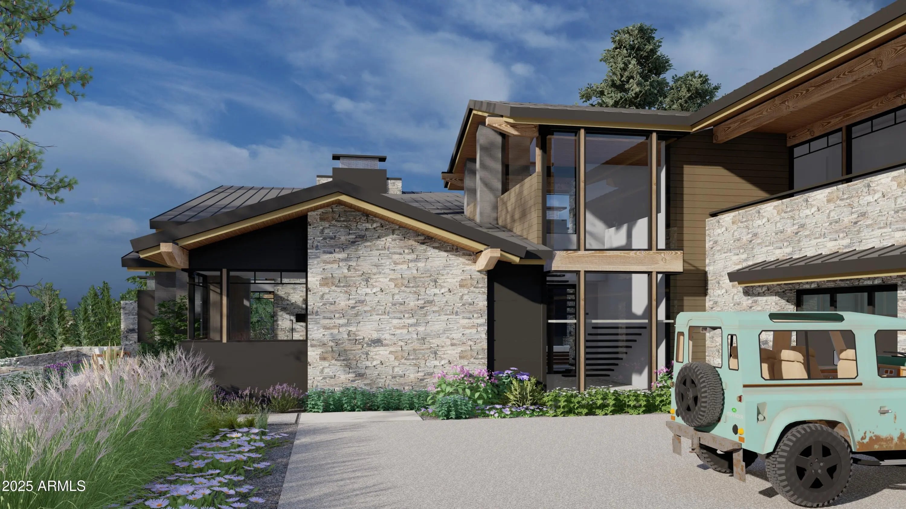 Scheduled to be completed early Summer of 2026. This striking spec home, designed by Tate Studio Architects, is currently under construction and perfectly positioned to capture views of Pine Canyon's 5th green. Offering a total of 5,082 square feet, the residence blends modern contemporary lines with warm mountain finishes and an effortless indoor-outdoor flow. The main level, 3,227 square feet, showcases a spacious primary suite, a chef's kitchen and dining area, a soaring great room, and an additional en-suite bedroom, all opening to an expansive patio for year-round entertaining. Upstairs, the 1,855-square-foot second level provides two more en-suite bedrooms, a versatile flex room, and a generous family room with its own kitchenette and balconyperfect for guests or multi-generational living. A three-car garage completes this modern mountain retreat, designed to embrace its golf-course setting and deliver both luxury and livability.