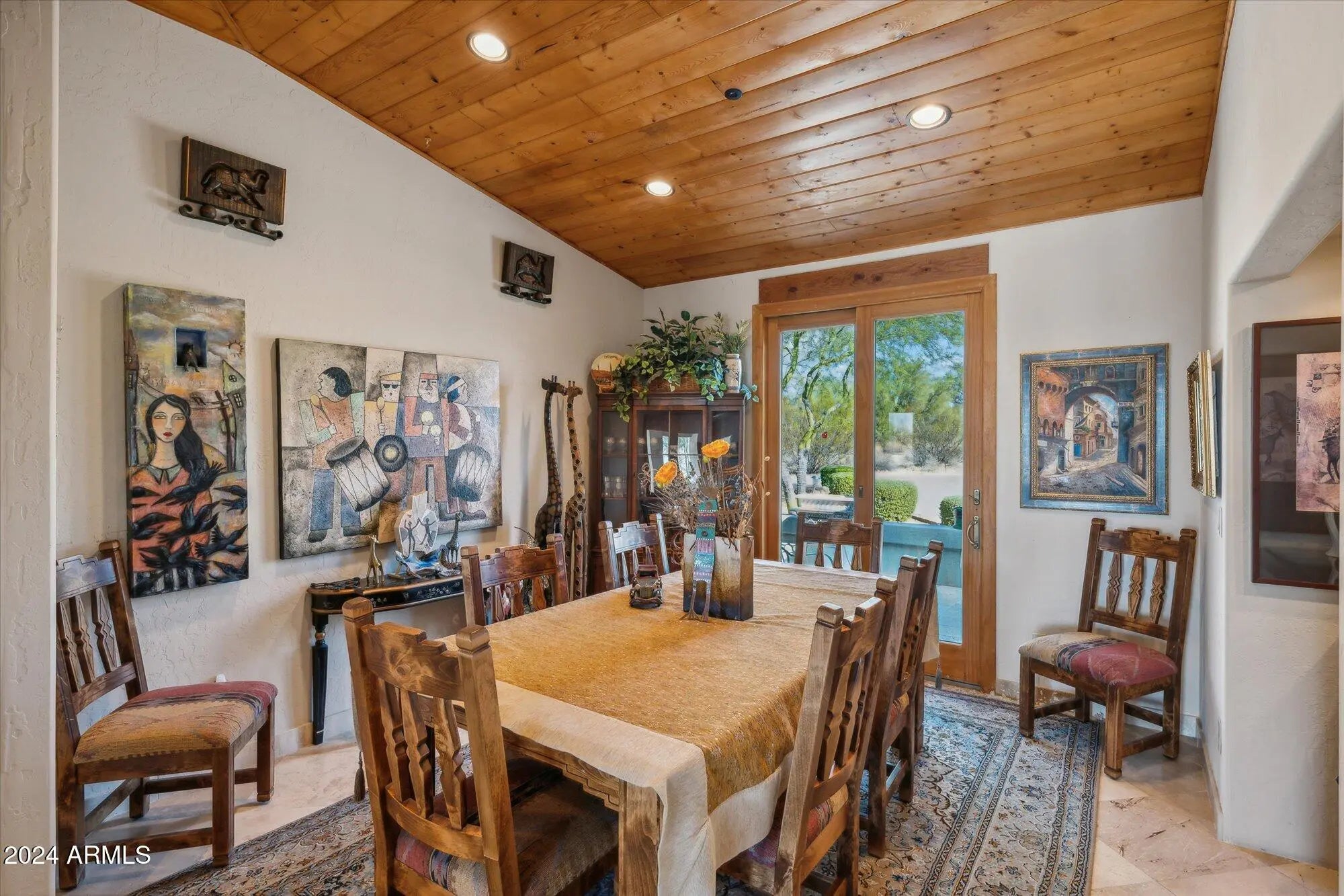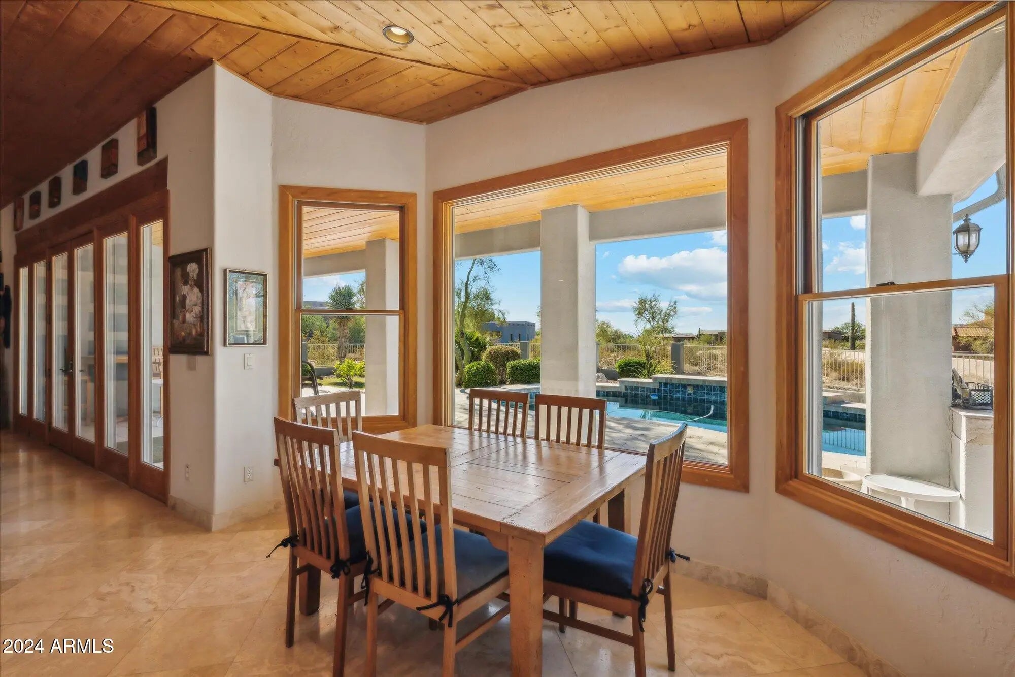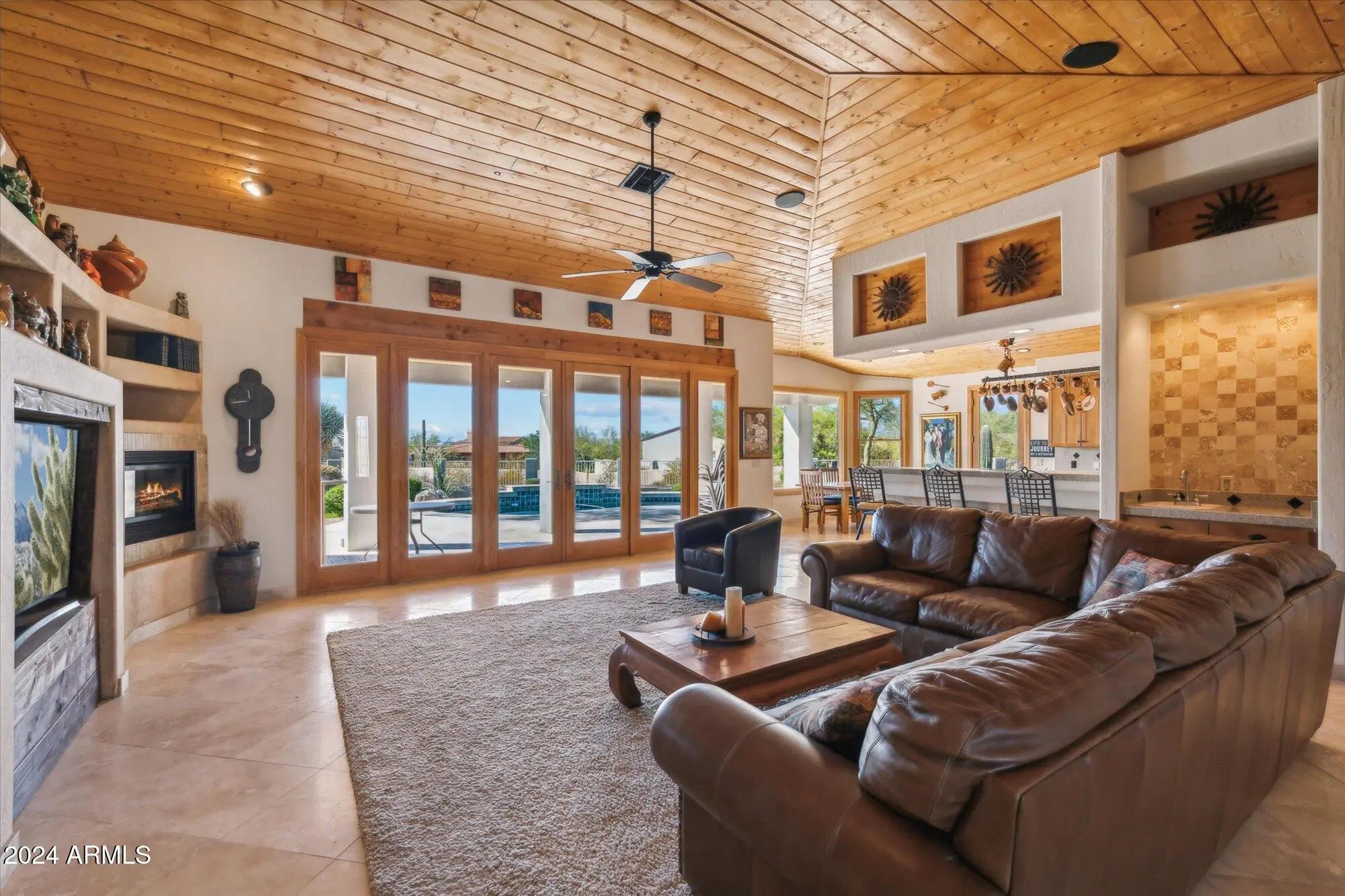 Rare offering in sought after Desert Skyline Estates, a gated enclave of 44 custom home lots in North Scottsdale. Owner Financing available! This custom residence is set on a 1.5 acre lot that would support a separate guest house.The possibilities are endless. As you enter the home you will be welcomed by the soaring vaulted ceilings featuring tongue and groove pine that open to the great room and out to the back where your pool awaits for enjoying the amazing Arizona sunsets. Features include 18-inch diagonal travertine throughout including hand laid borders, new GE Profile kitchen appliances, new roof and Rhino Shield stucco coating. All windows and doors are top quality Anderson. The fourth bedroom includes, wood floors a custom built in desk and cabinets.